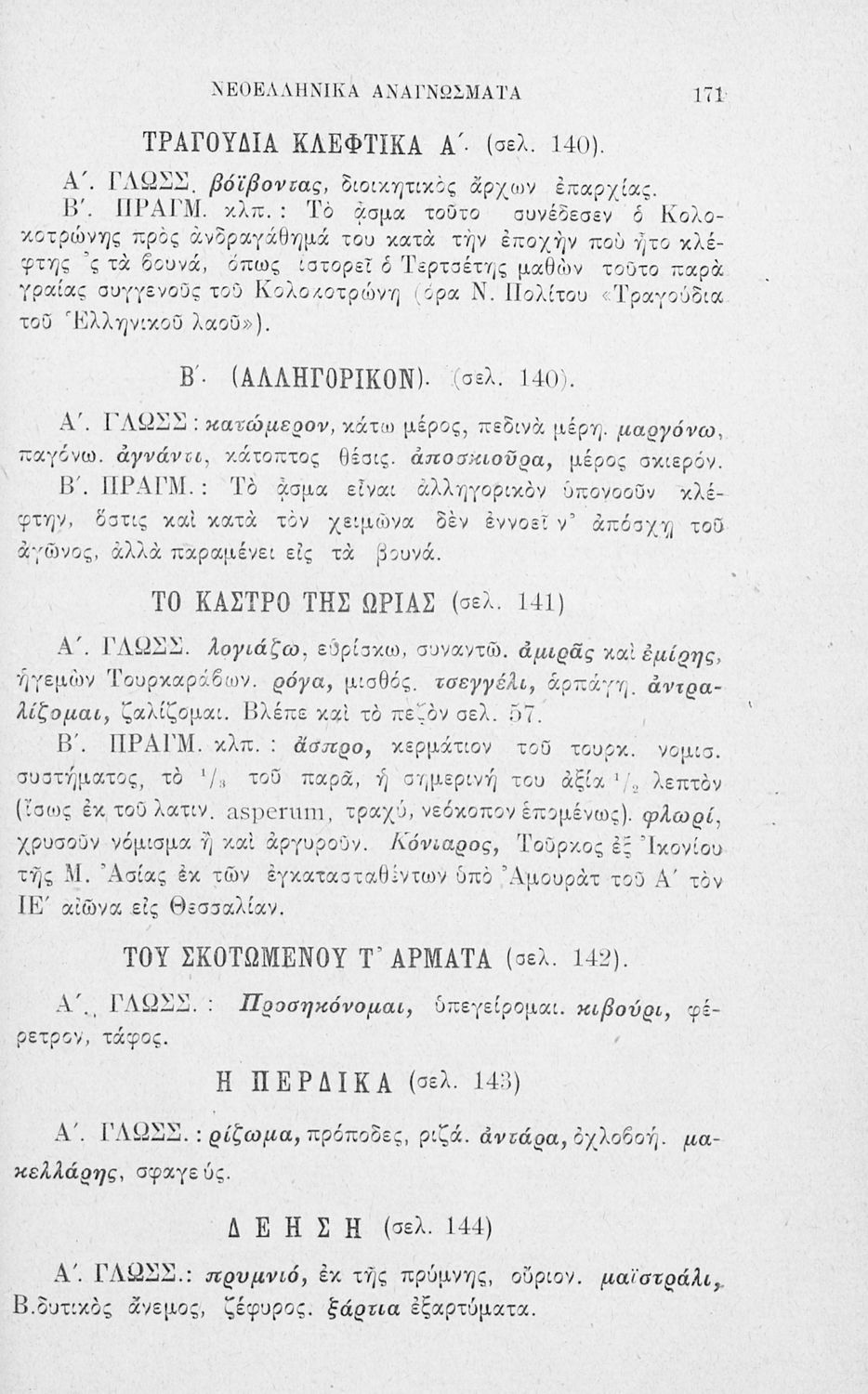 Σχολικό εγχειρίδιο Νέων Ελληνικών Γ' Ελληνικού Σχολείου που περιέχει πεζά και ποιήματα Ελλήνων συγγραφέων και δημοτικά τραγούδια εμπνευσμένα από τη βυζαντινή και σύγχρονη ελληνική ιστορία, και την οικογενειακή
