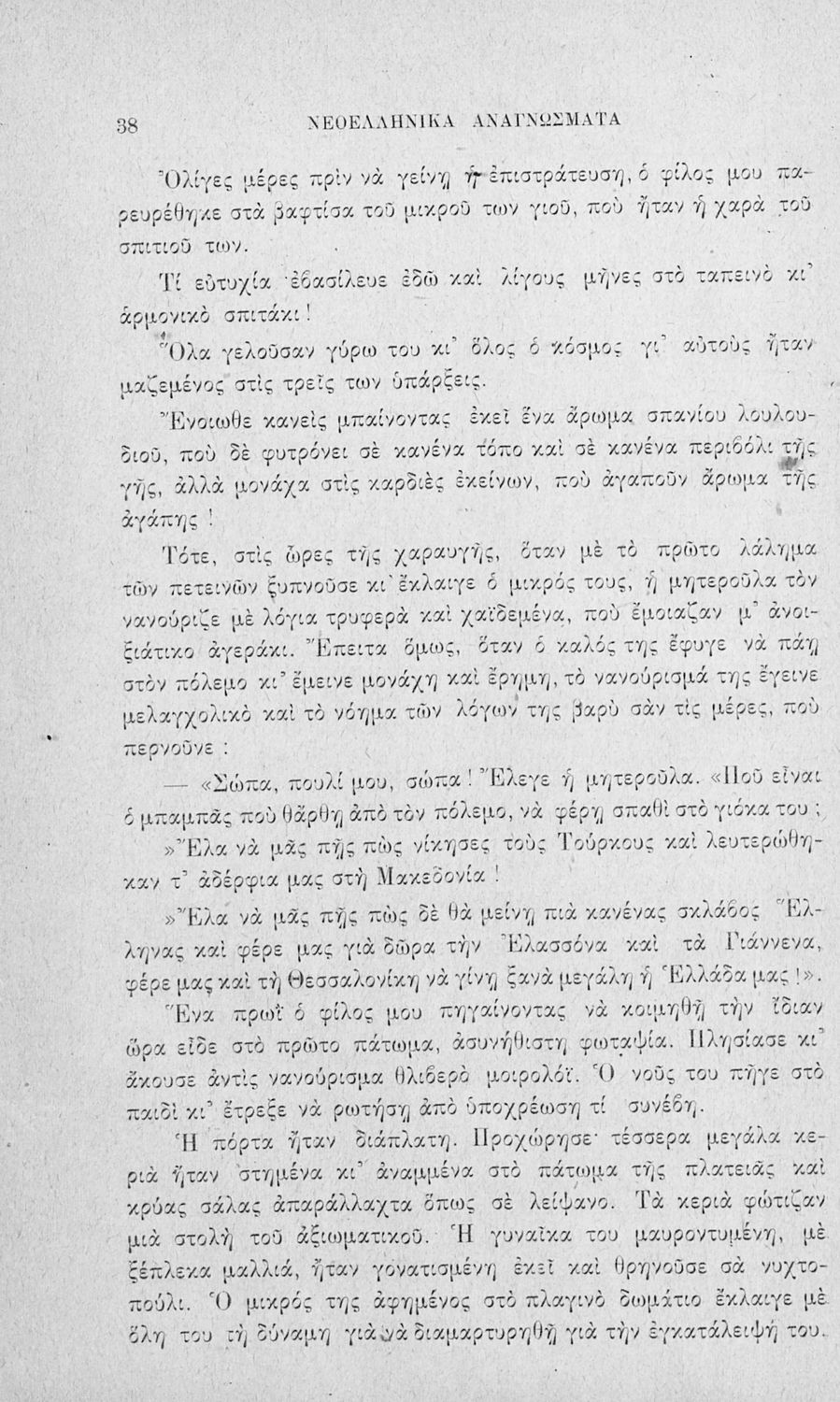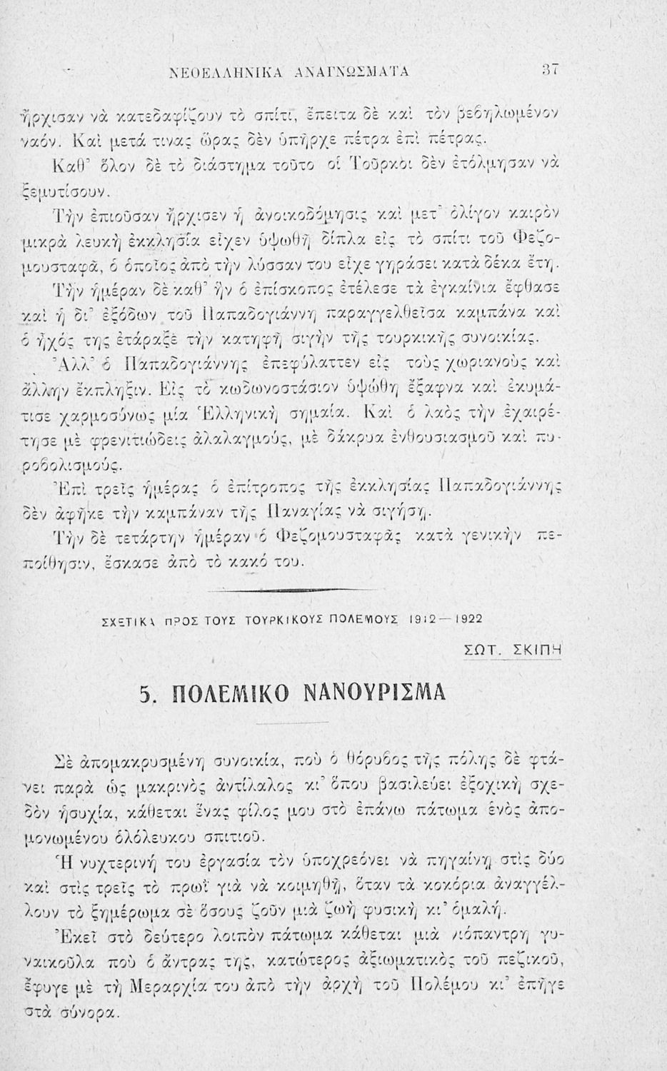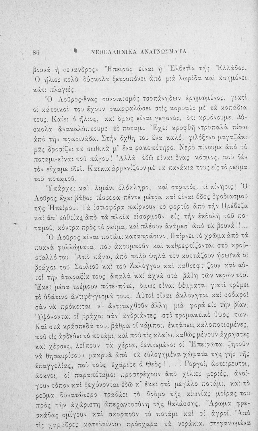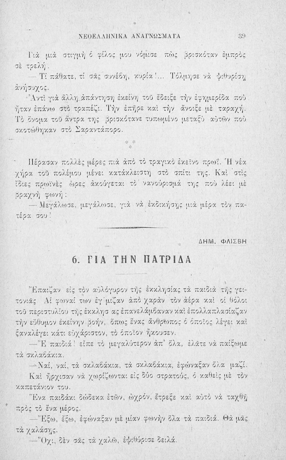 Σχολικό εγχειρίδιο Νεοελληνικών αναγνωσμάτων που περιλαμβάνει πεζά και ποιήματα με θέματα από την εθνική ζωή.