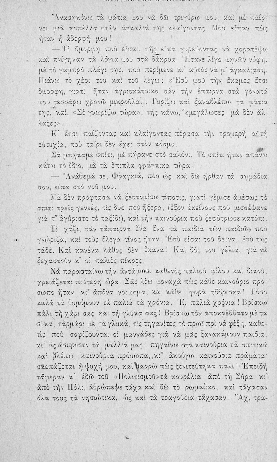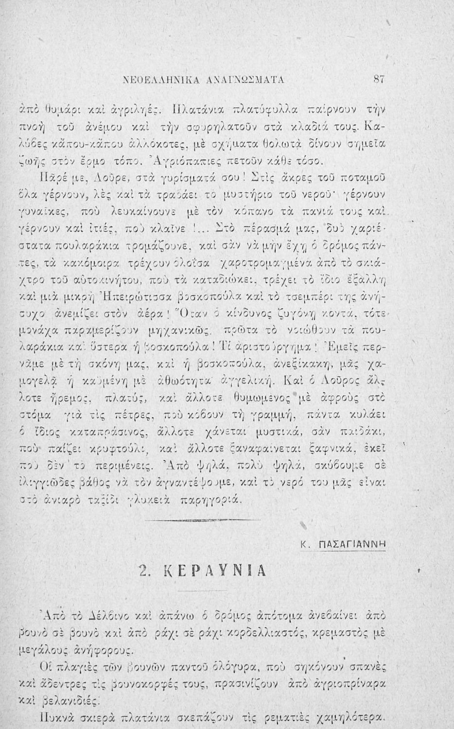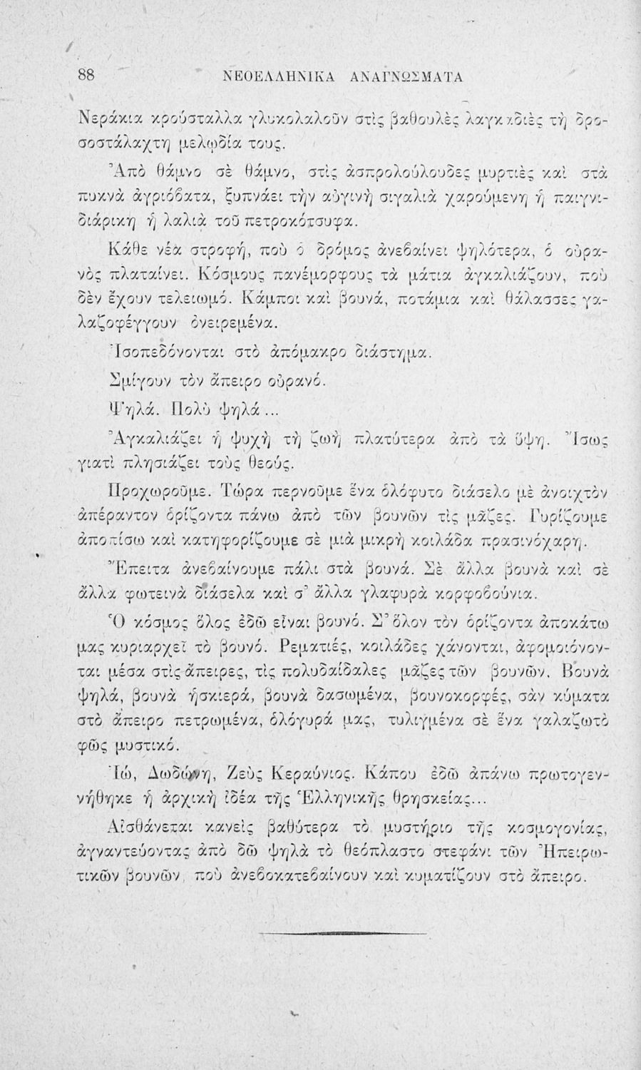 Σχολικό εγχειρίδιο Νέων Ελληνικών Β' Ελληνικού Σχολείου που περιέχει πεζά και ποιήματα Ελλήνων συγγραφέων και δημοτικά τραγούδια εμπνευσμένα από την σύγχρονη ελληνική ιστορία, τη βυζαντινή ιστορία, την οικογενειακή και θρησκευτική ζωή και τη φύση. Περιέχει και παράρτημα με βιογραφίες των συγγραφέων και λεξιλόγιο.
