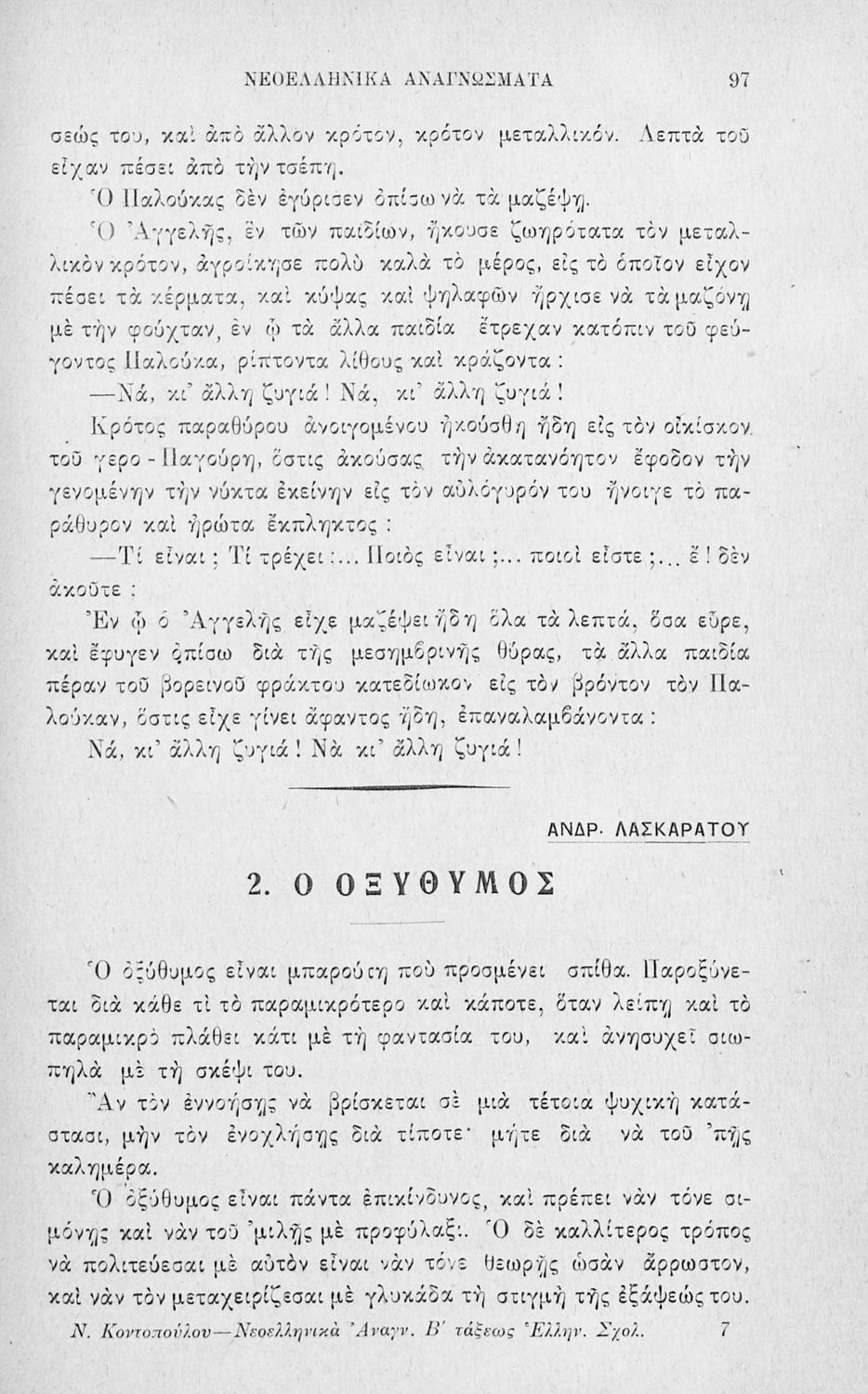 Τίτλος: Νεοελληνικά αναγνώσματα εγκριθέντα δια τους μαθητάς της Β' τάξεως των Ελληνικών Σχολείων