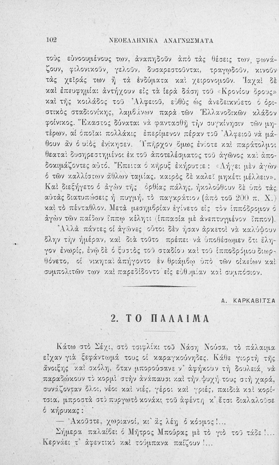 Σχολικό εγχειρίδιο Νέων Ελληνικών Β' Ελληνικού Σχολείου που περιέχει πεζά και ποιήματα Ελλήνων συγγραφέων και δημοτικά τραγούδια εμπνευσμένα από την σύγχρονη ελληνική ιστορία, τη βυζαντινή ιστορία, την οικογενειακή και θρησκευτική ζωή και τη φύση. Περιέχει και παράρτημα με βιογραφίες των συγγραφέων και λεξιλόγιο.