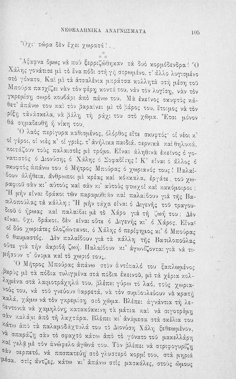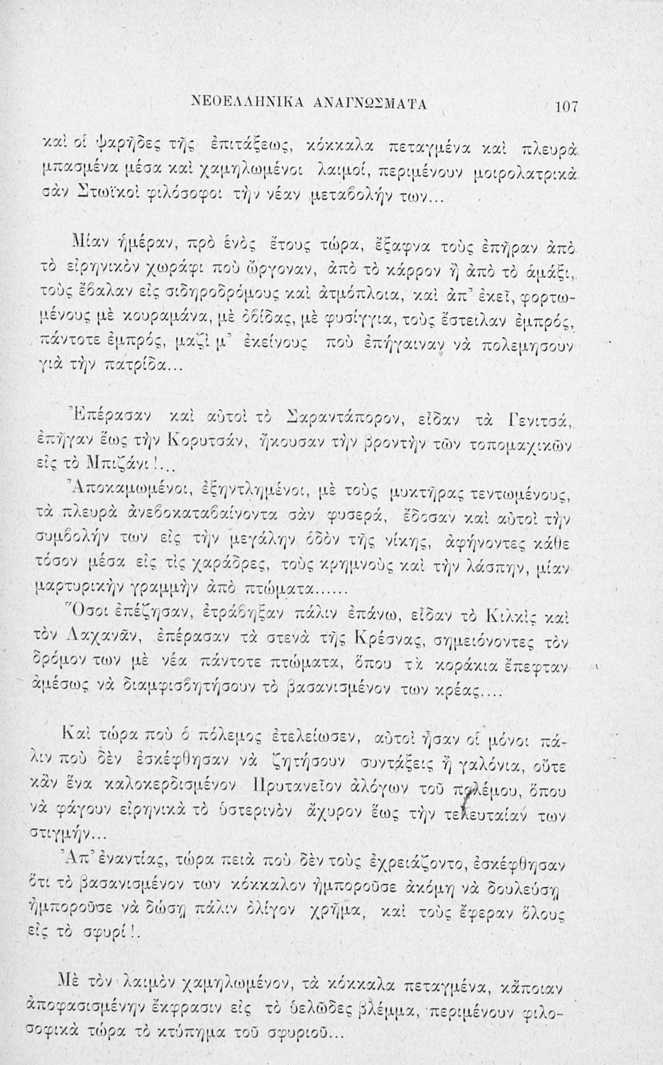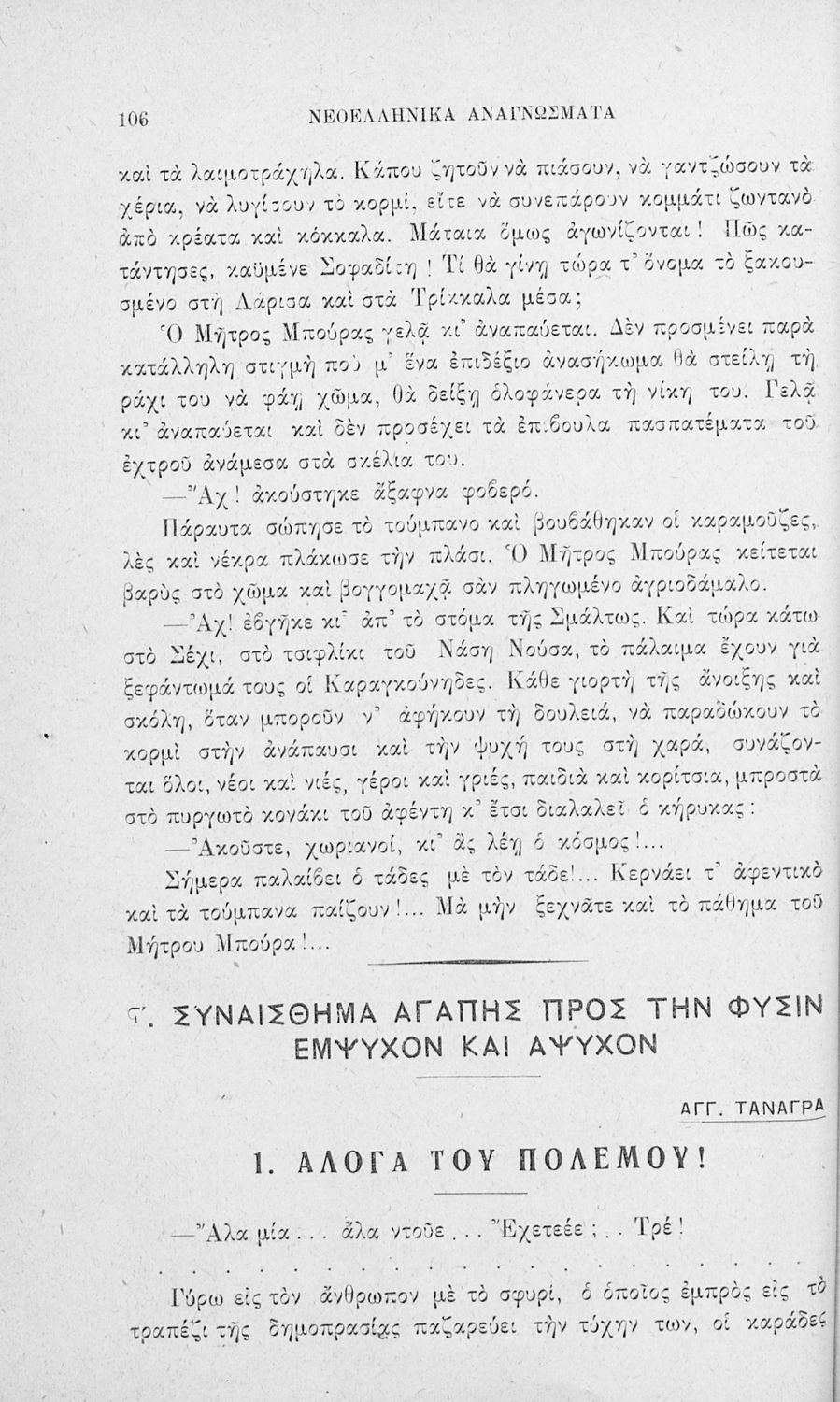 Σχολικό εγχειρίδιο Νεοελληνικών αναγνωσμάτων που περιλαμβάνει πεζά και ποιήματα με θέματα από την εθνική ζωή.