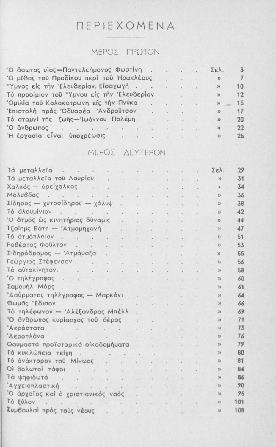 Σχολικό εγχειρίδιο για το μάθημα της Γλώσσας στις Τεχνικές και Επαγγελματικές Σχολές. Πρόκειται για αναγνώσματα, το περιεχόμενα των οποίων προέρχεται από την ελληνική αρχαία ιστορία, την Ελληνική Επανάσταση, την επιστήμη και τις εφευρέσεις. Η γλώσσα και το ύφος είναι απλά. Επίσης, περιέχει εικόνες για τη διευκόλυνση της διδασκαλίας.