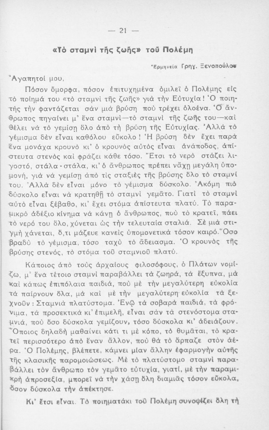 Σχολικό εγχειρίδιο Νέων Ελληνικών Δ΄ Γυμνασίου και Β΄ Αστικού Σχολείου που περιέχει πεζά και ποιήματα Ελλήνων συγγραφέων εμπνευσμένα από τη θρησκευτική και κοινωνική ζωή, την ελληνική μυθολογία, την αρχαία και