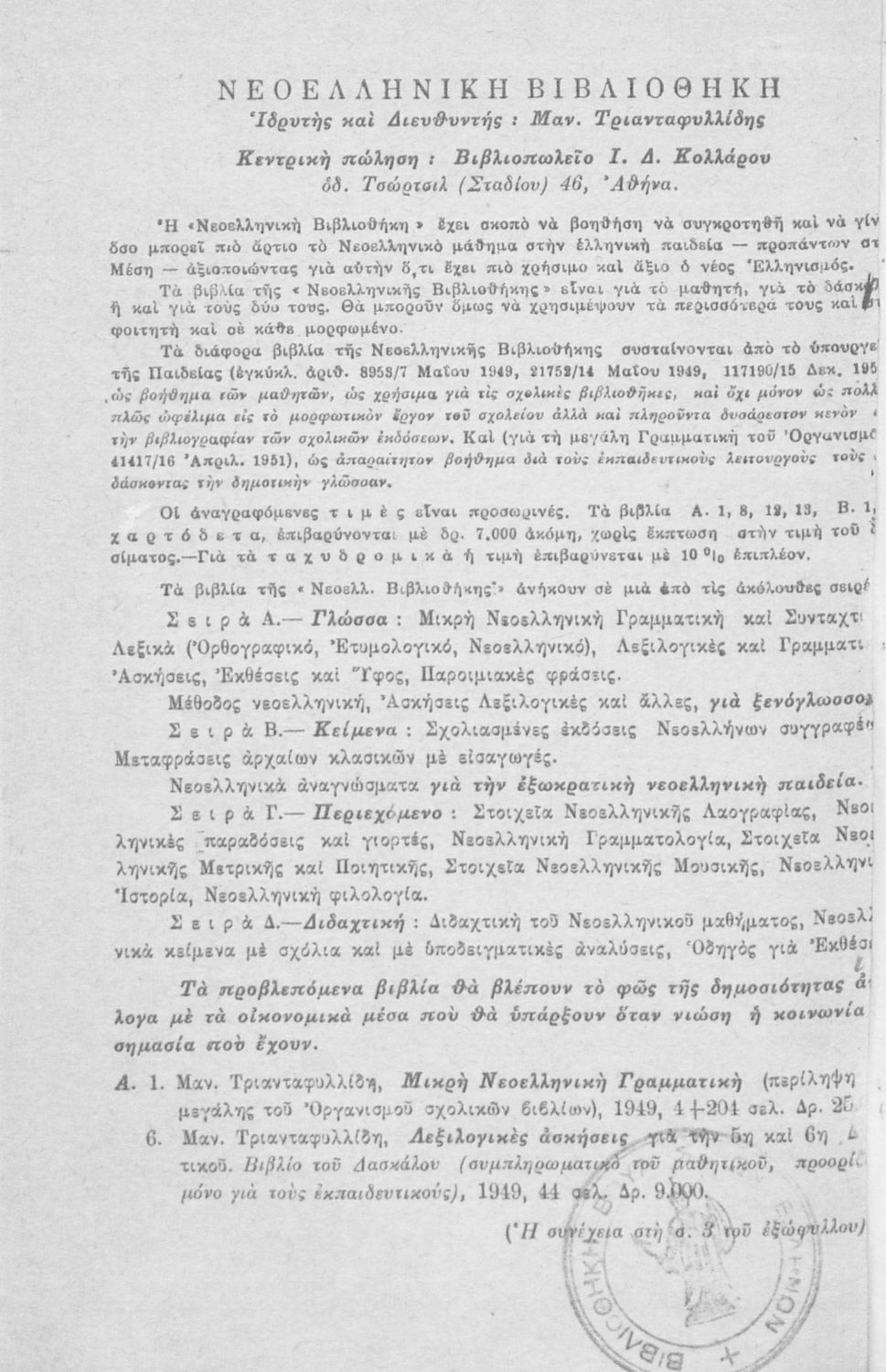 Εκδότης: Νεοελληνική Βιβλιοθήκη Έτος έκδοσης: 1953 Τόπος έκδοσης: Αθήνα |
