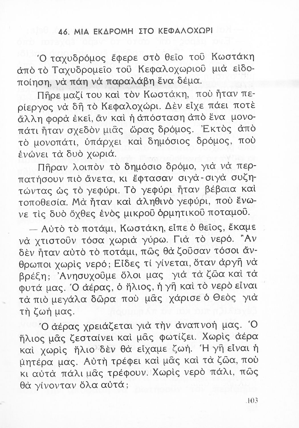 Αναγνωστικό Γ΄ Δημοτικού που περιέχει πεζά και ποιήματα εμπνευσμένα από τη καθημερινή και κοινωνική ζωή και την ελληνική φύση. Περιέχει και ερωτήσεις κατανόησης.