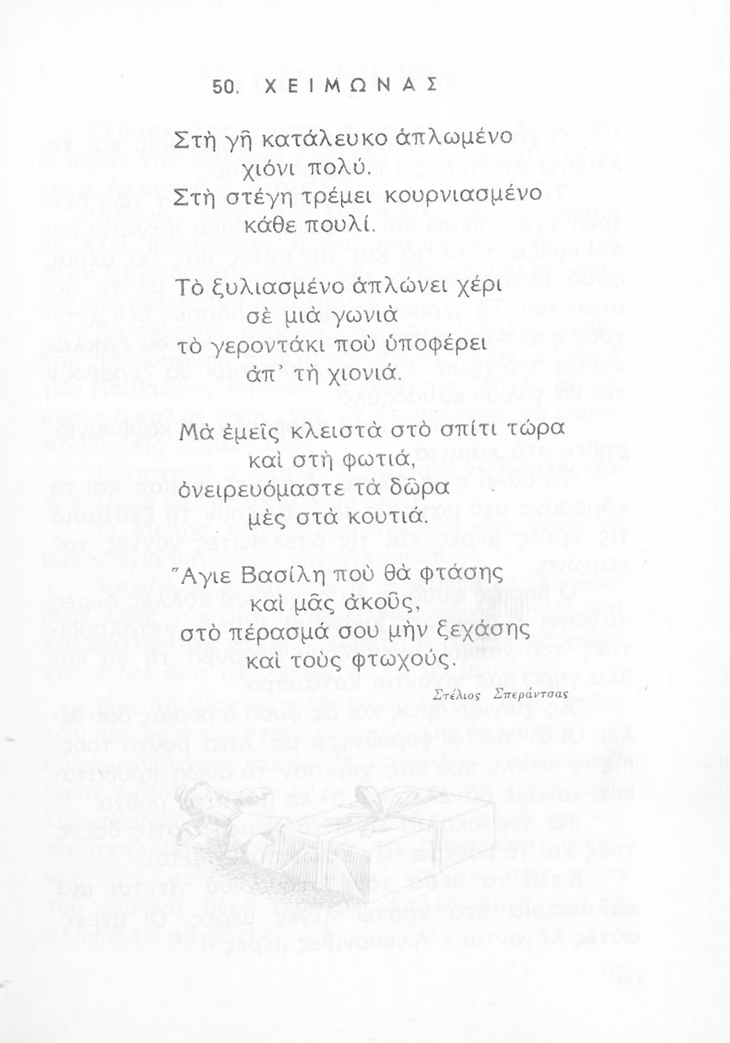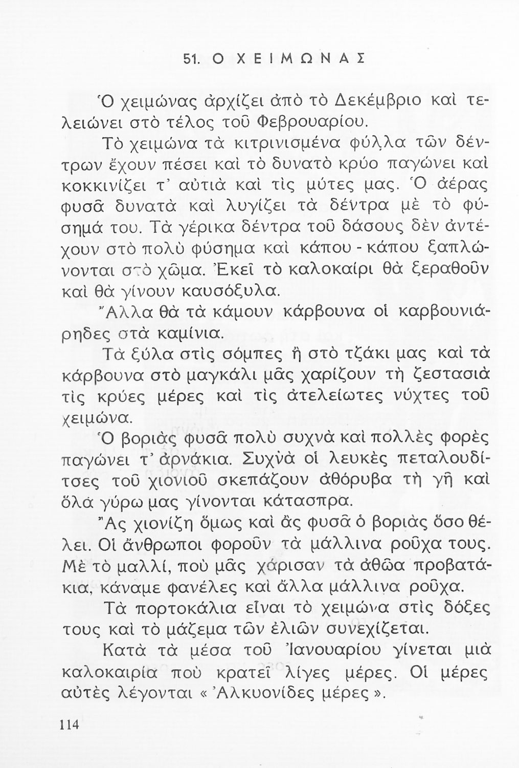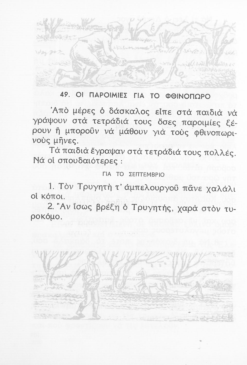 Αναγνωστικό Γ' Δημοτικού που είναι χωρισμένο σύμφωνα με τις εποχές του χρόνου και περιλαμβάνει ποιήματα και πεζά εμπνευσμένα από τη ζωή στην ύπαιθρο, την εθνική, οικογενειακή και κοινωνική ζωή, τη θρησκευτική παράδοση, τις ασχολίες των ανθρώπων, και την ελληνική φύση.