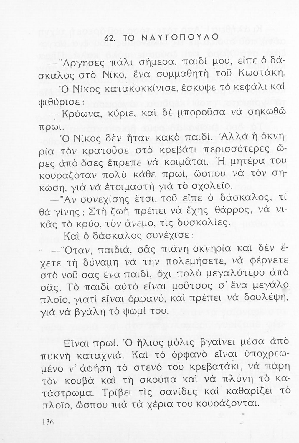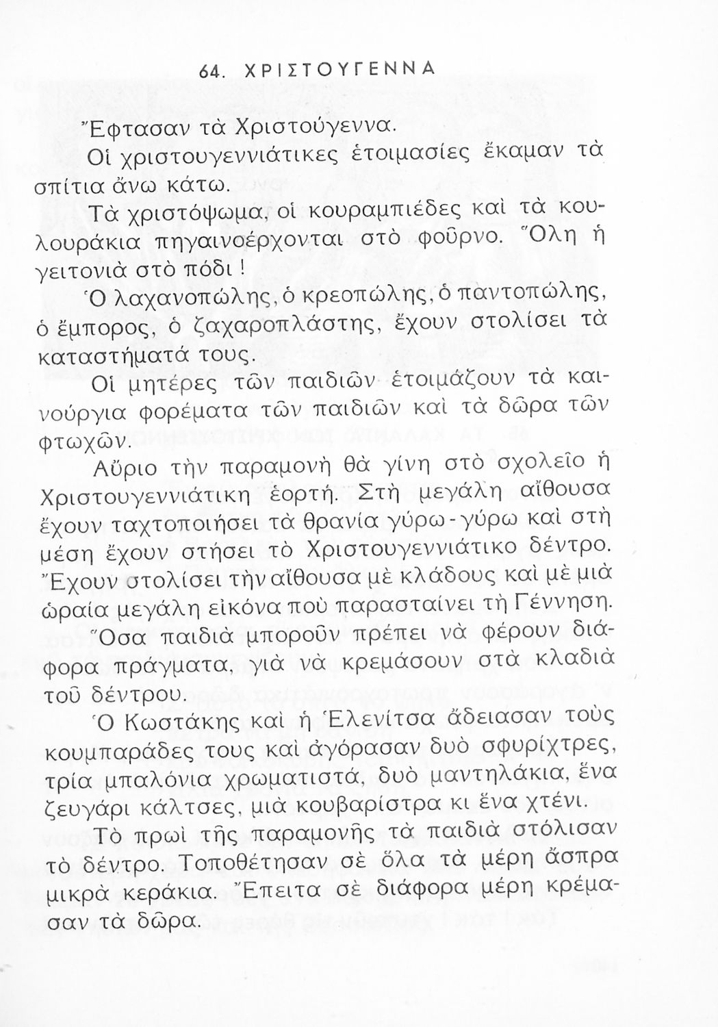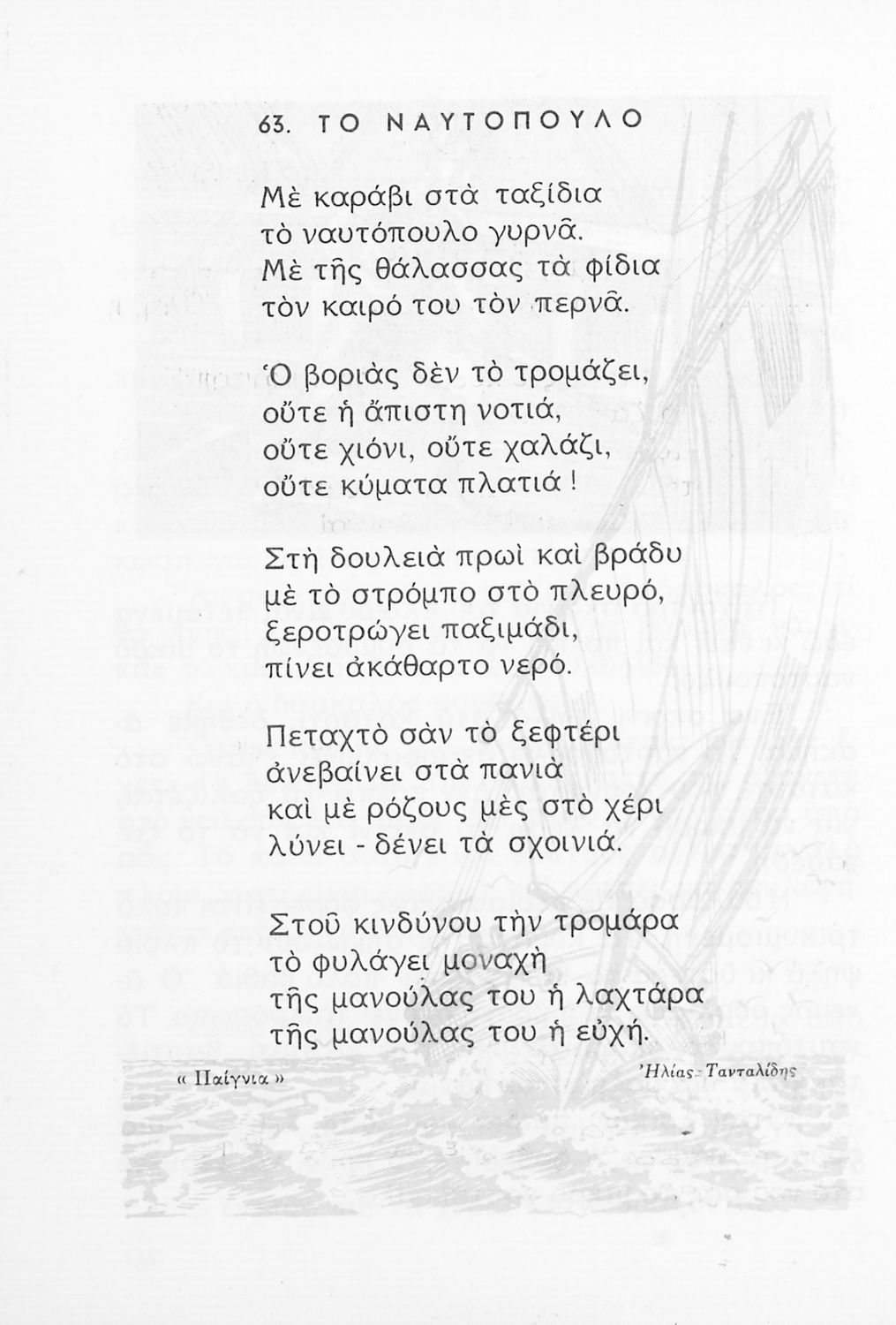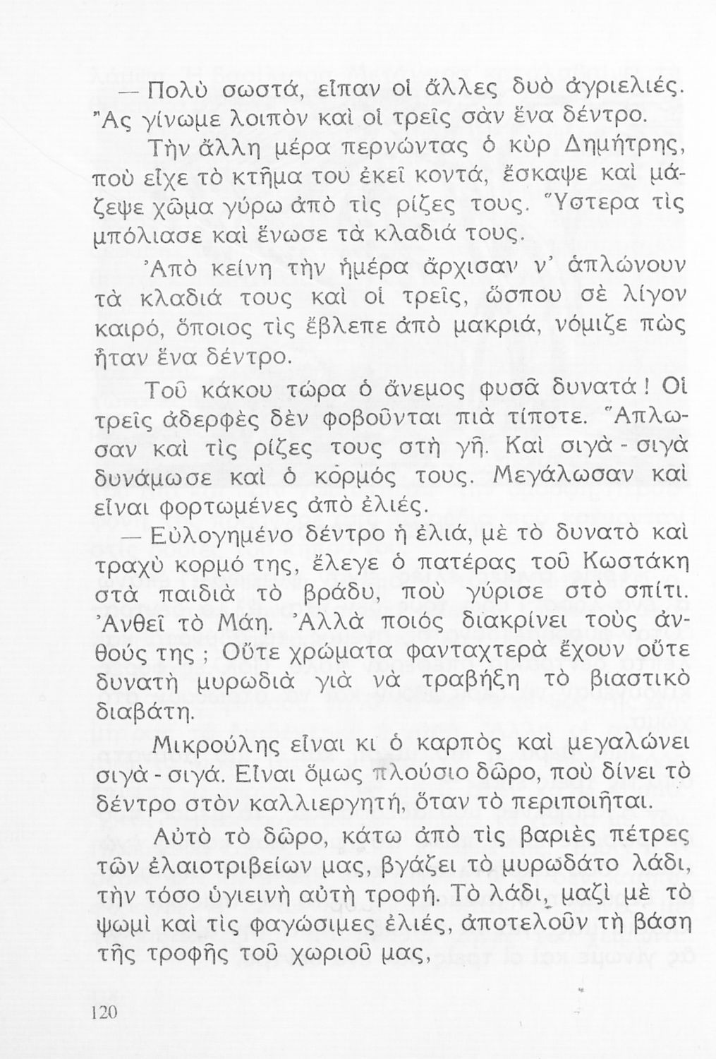 Αναγνωστικό Γ' Δημοτικού που είναι χωρισμένο σύμφωνα με τις εποχές του χρόνου και περιλαμβάνει ποιήματα και πεζά εμπνευσμένα από τη ζωή στην ύπαιθρο, την εθνική, οικογενειακή και κοινωνική ζωή, τη θρησκευτική παράδοση, τις ασχολίες των ανθρώπων, και την ελληνική φύση.