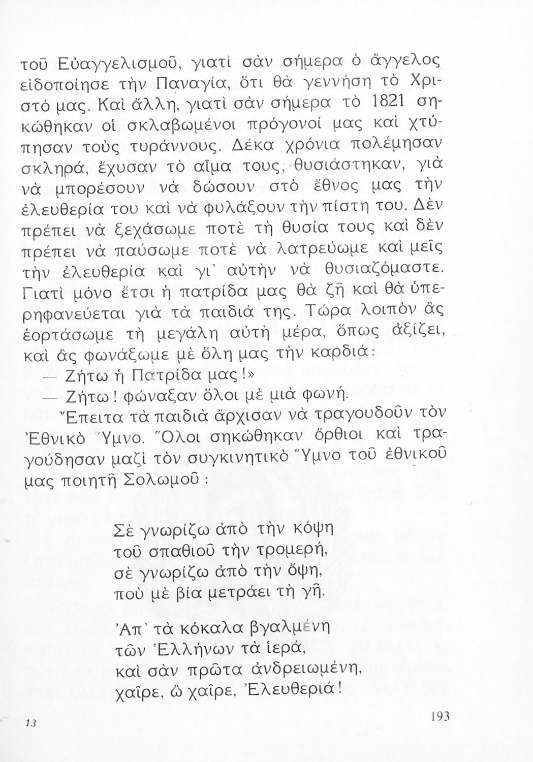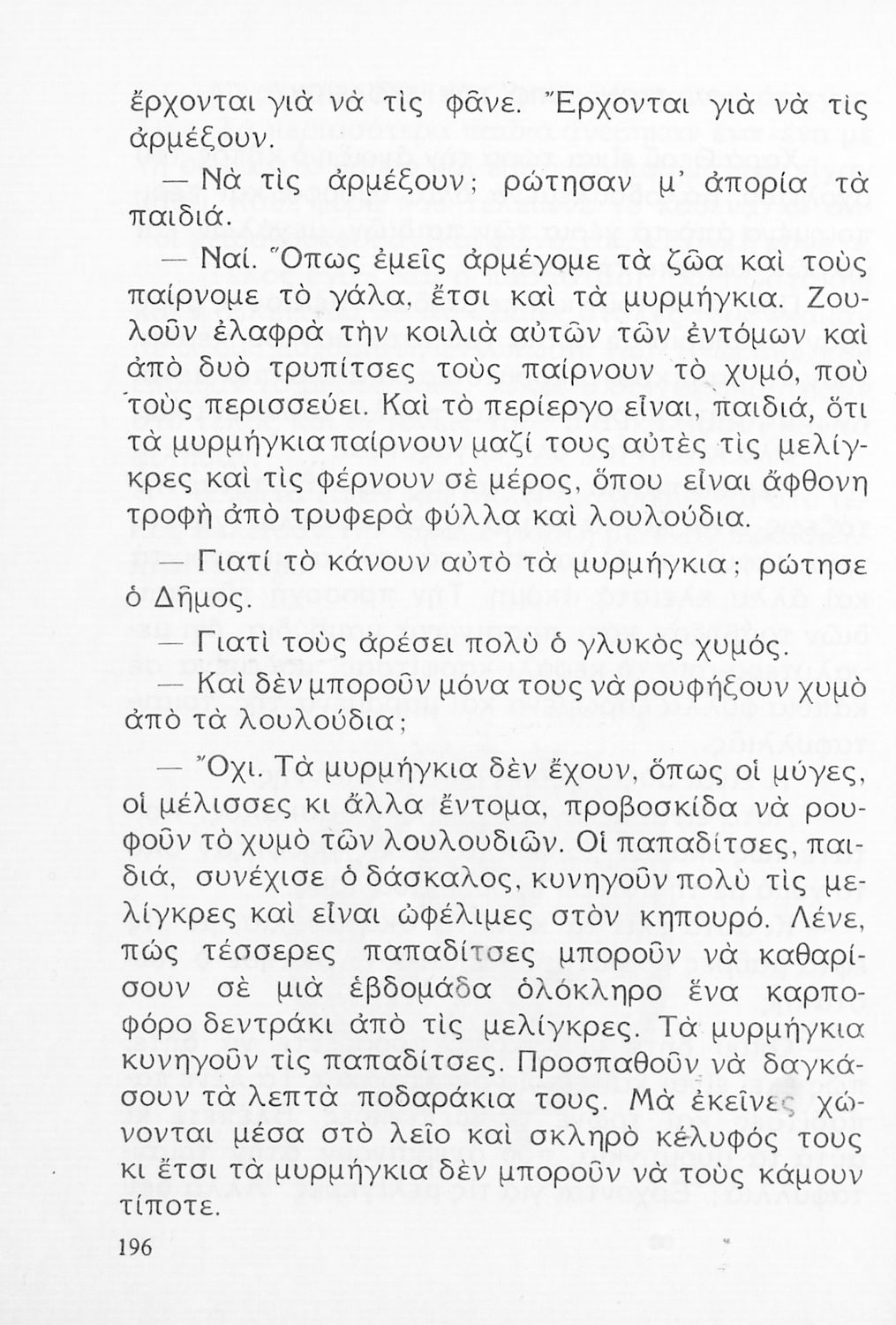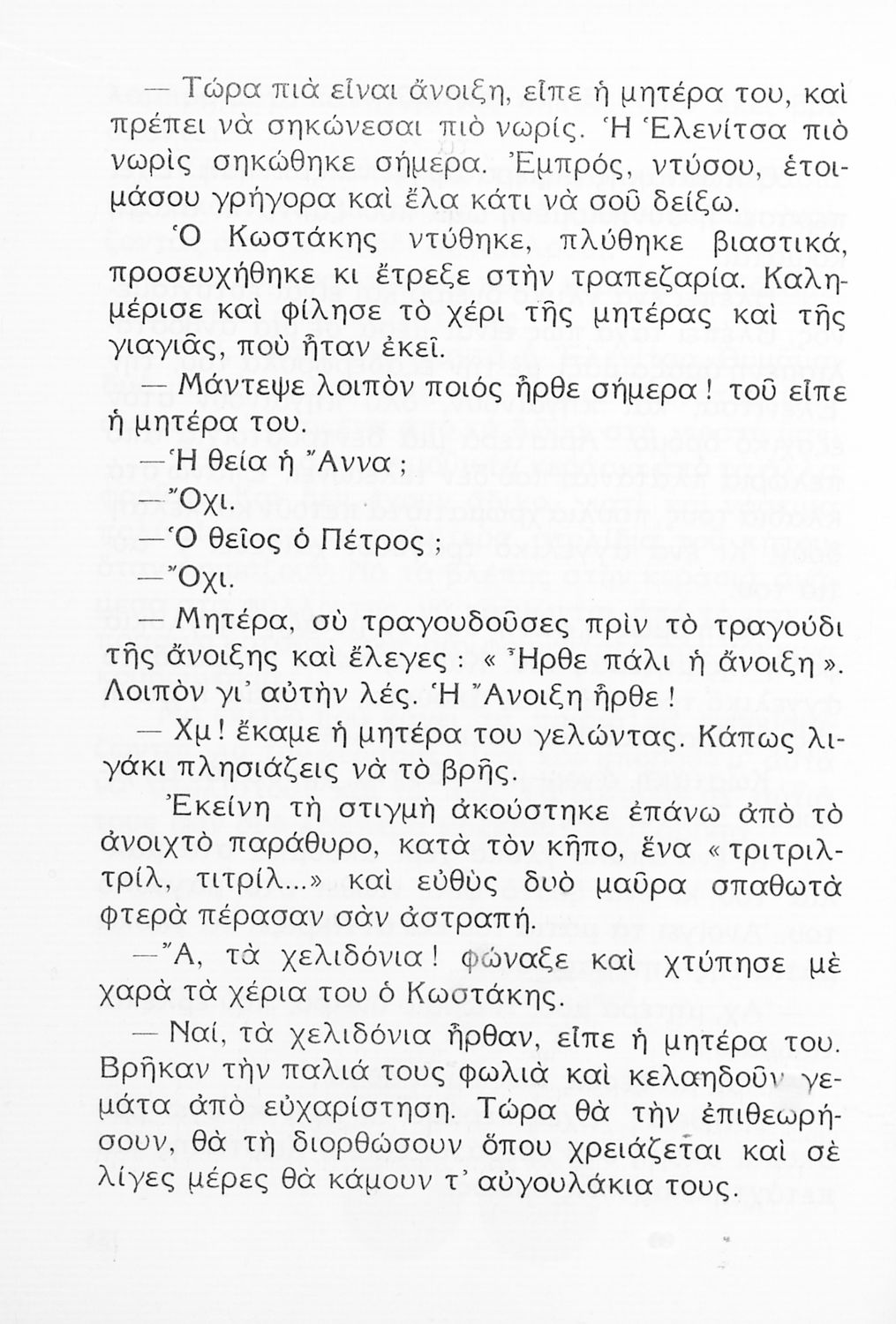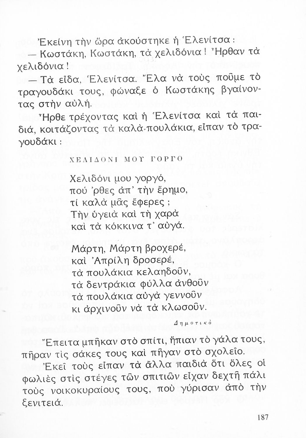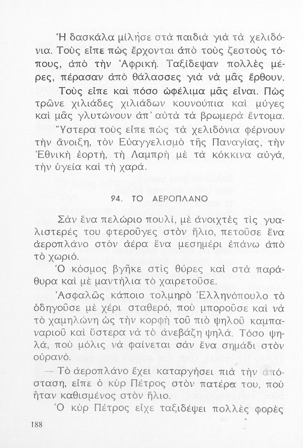 Αναγνωστικό Γ' Δημοτικού που είναι χωρισμένο σύμφωνα με τις εποχές του χρόνου και περιλαμβάνει ποιήματα και πεζά εμπνευσμένα από τη ζωή στην ύπαιθρο, την εθνική, οικογενειακή και κοινωνική ζωή, τη θρησκευτική παράδοση, τις ασχολίες των ανθρώπων, και την ελληνική φύση.