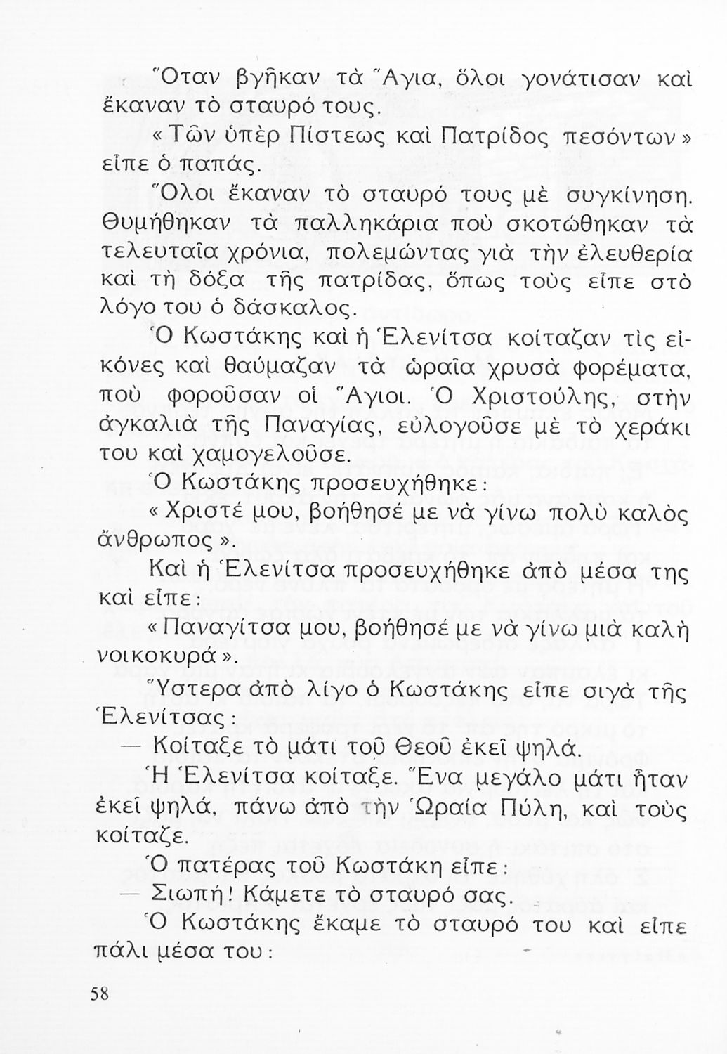 Αναγνωστικό Γ' Δημοτικού που είναι χωρισμένο σύμφωνα με τις εποχές του χρόνου και περιλαμβάνει ποιήματα και πεζά εμπνευσμένα από τη ζωή στην ύπαιθρο, την εθνική, οικογενειακή και κοινωνική ζωή, τη θρησκευτική παράδοση, τις ασχολίες των ανθρώπων, και την ελληνική φύση.