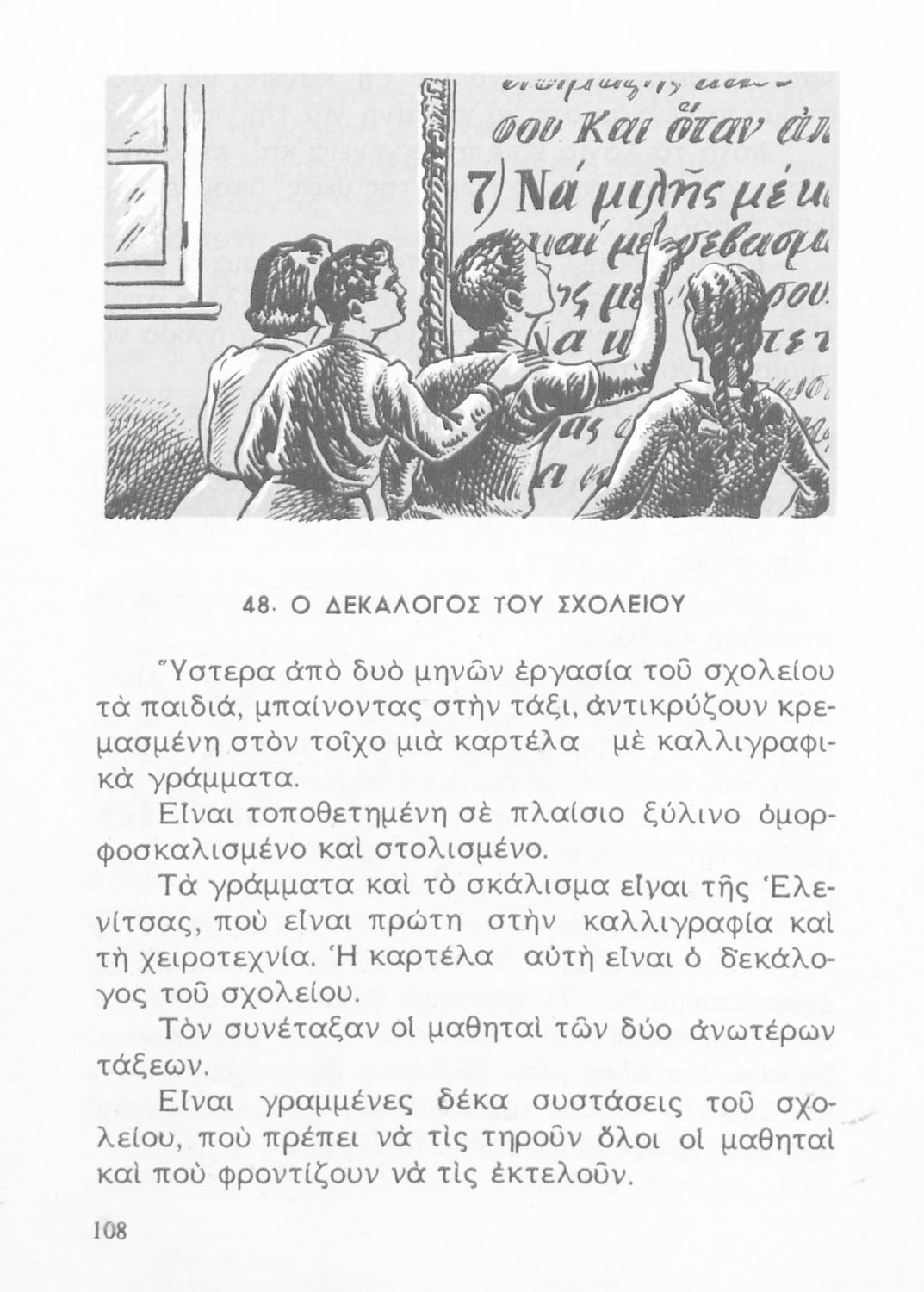 Αναγνωστικό Γ΄ Δημοτικού που περιλαμβάνει ποιήματα και πεζά με θέματα όπως η καλή και κακή συναναστροφή, η φρόνηση, η οκνηρία, η φιλανθρωπία και η πίστη στο Θεό