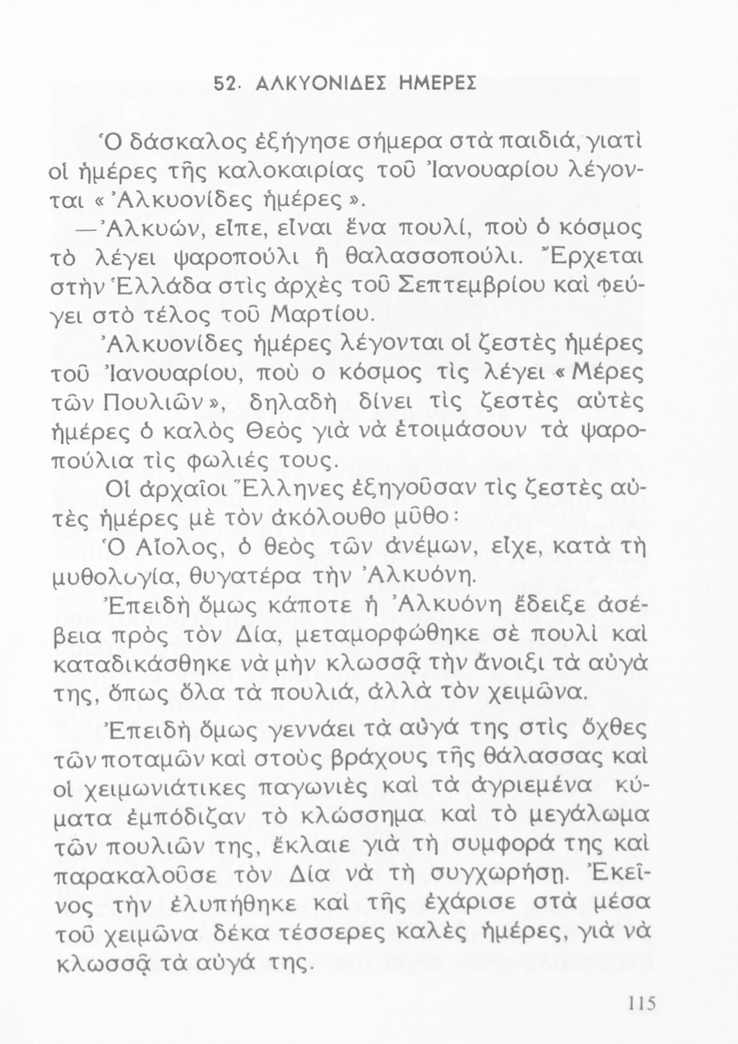 Αναγνωστικό Γ' Δημοτικού που είναι χωρισμένο σύμφωνα με τις εποχές του χρόνου και περιλαμβάνει κείμενα εμπνευσμένα από τη θρησκευτική, εθνική, κοινωνική και οικογενειακή ζωή, την ελληνική φύση, ιστορία και μυθολογία και την υγιεινή.