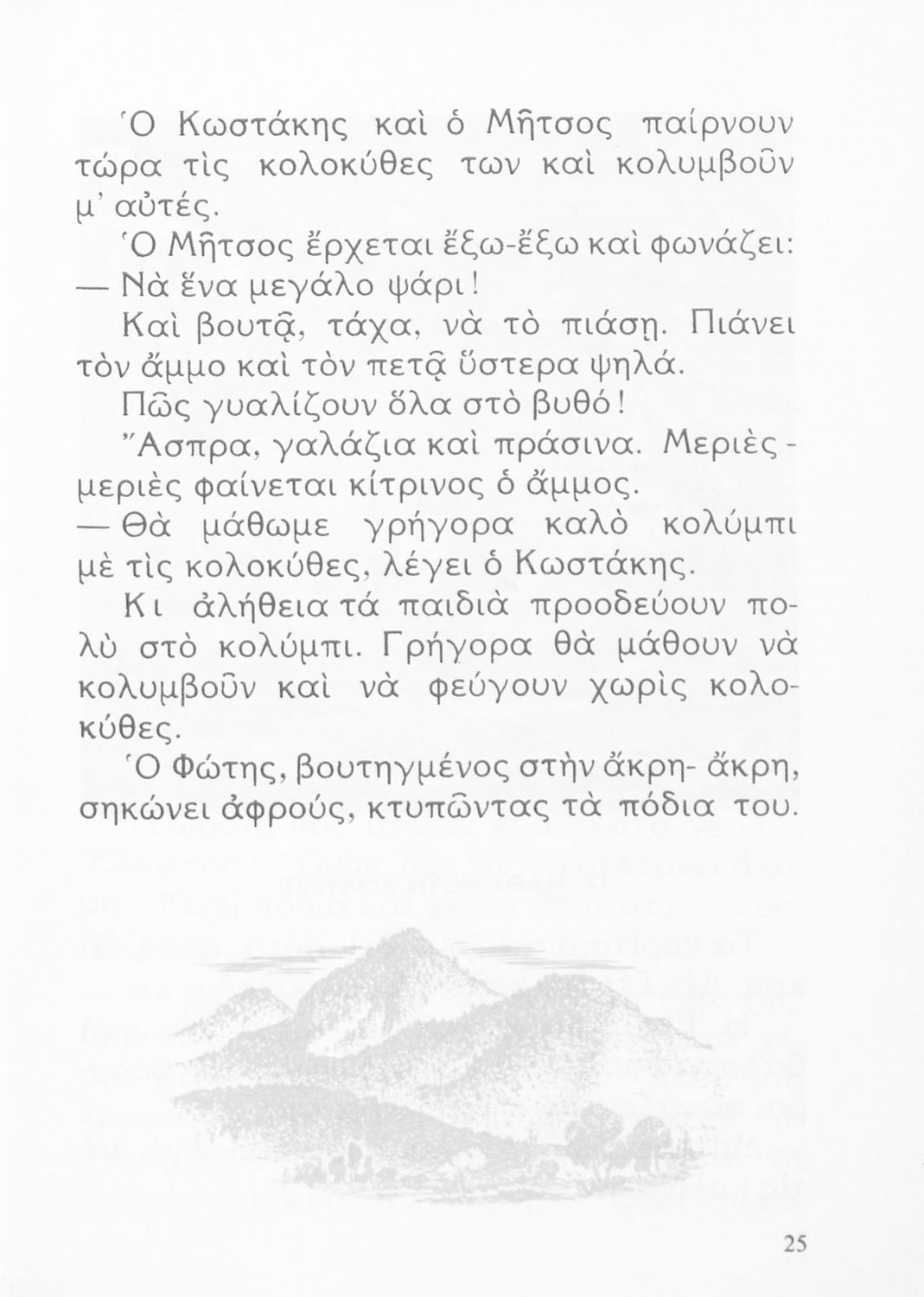 Αναγνωστικό Γ' Δημοτικού που είναι χωρισμένο σύμφωνα με τις εποχές του χρόνου και περιλαμβάνει κείμενα εμπνευσμένα από τη θρησκευτική, εθνική, κοινωνική και οικογενειακή ζωή, την ελληνική φύση, ιστορία και μυθολογία και την υγιεινή.