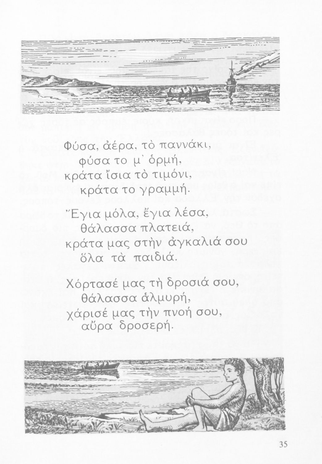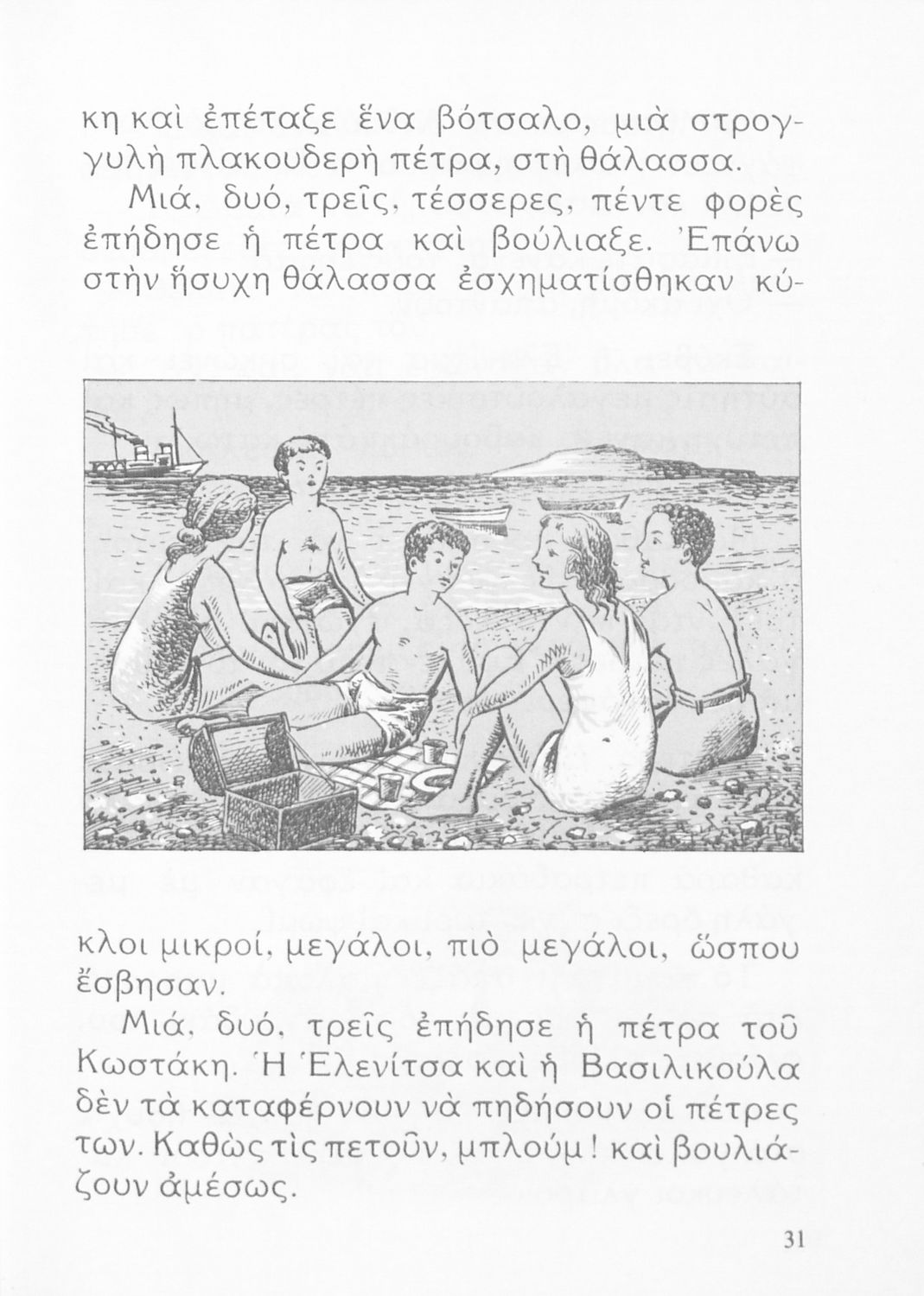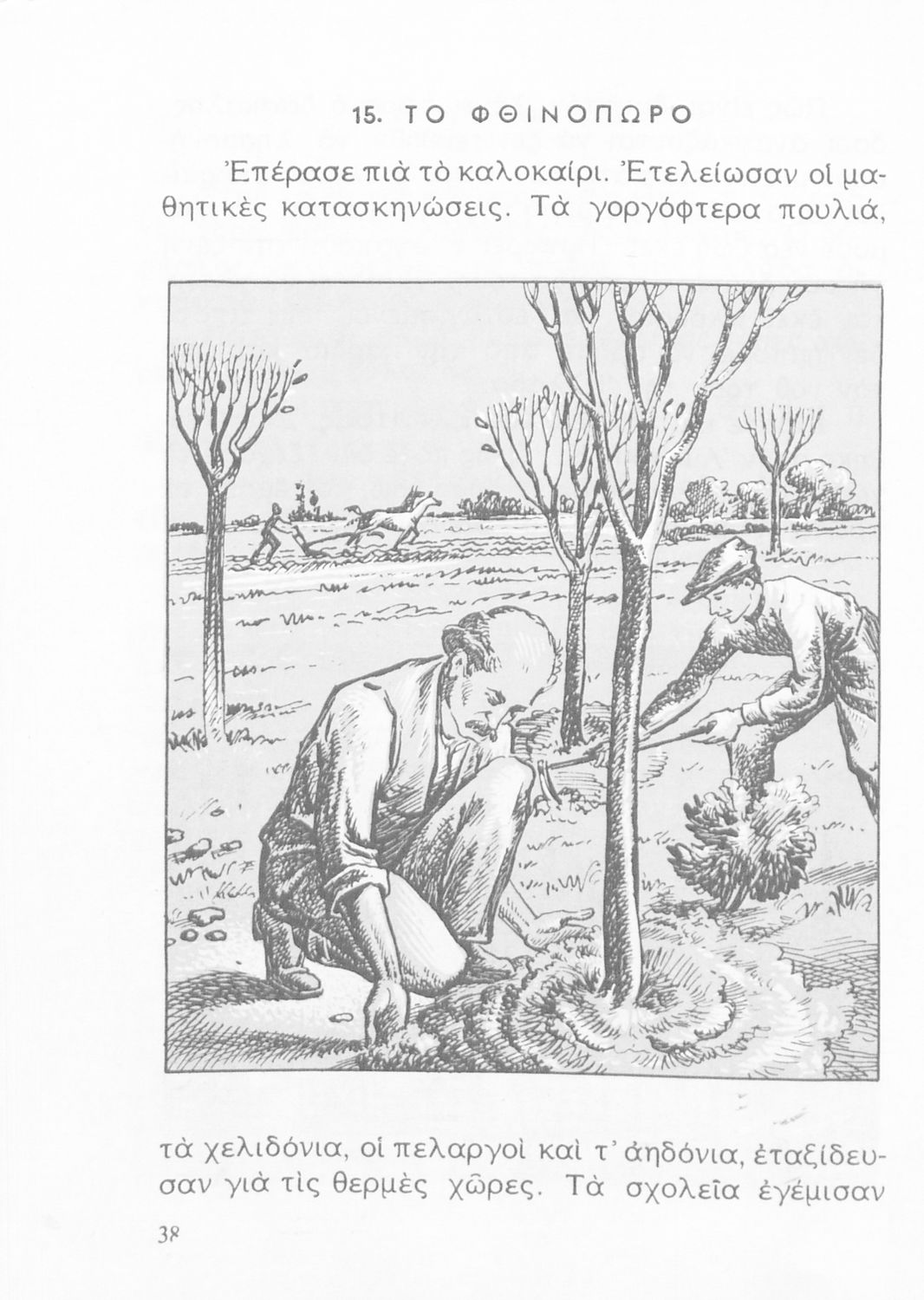 520 ## _aΑναγνωστικό Γ' Δημοτικού που είναι χωρισμένο σύμφωνα με τις εποχές του χρόνου και περιλαμβάνει κείμενα εμπνευσμένα από τη θρησκευτική, εθνική, κοινωνική και οικογενειακή ζωή, την ελληνική φύση, ιστορία και μυθολογία και την υγιεινή.