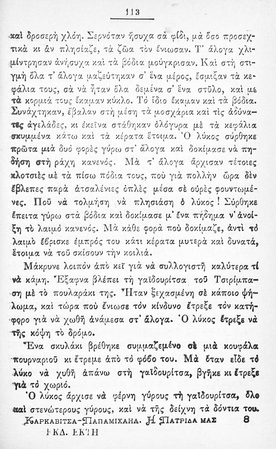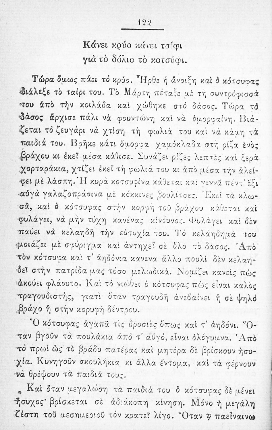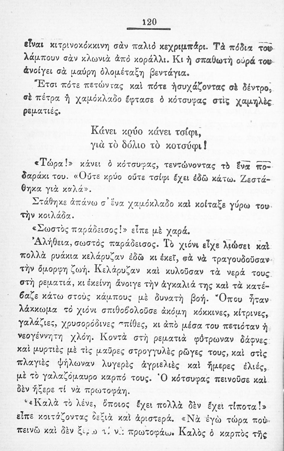 Αναγνωστικό Δ΄ Δημοτικού που περιέχει πεζά και ποιήματα με περιεχόμενο διδακτικό και ηθικοπλαστικό εμπνευσμένα από την ελληνική ιστορία και μυθολογία, και την αγροτική και κοινωνική ζωή.
