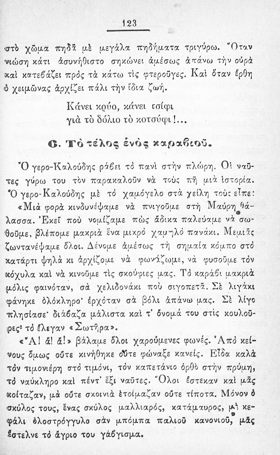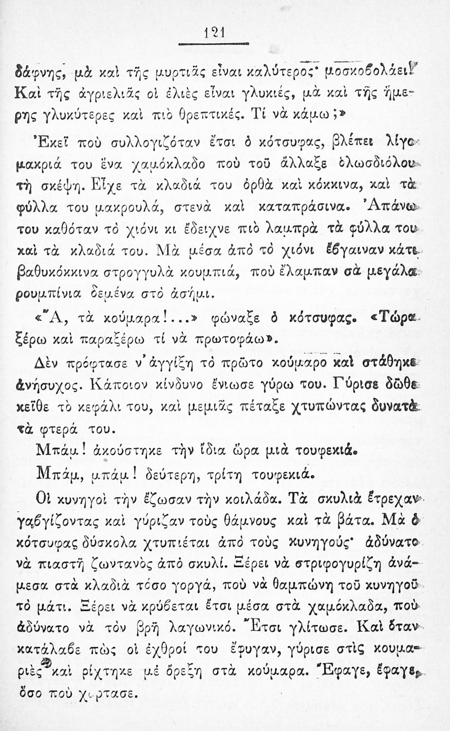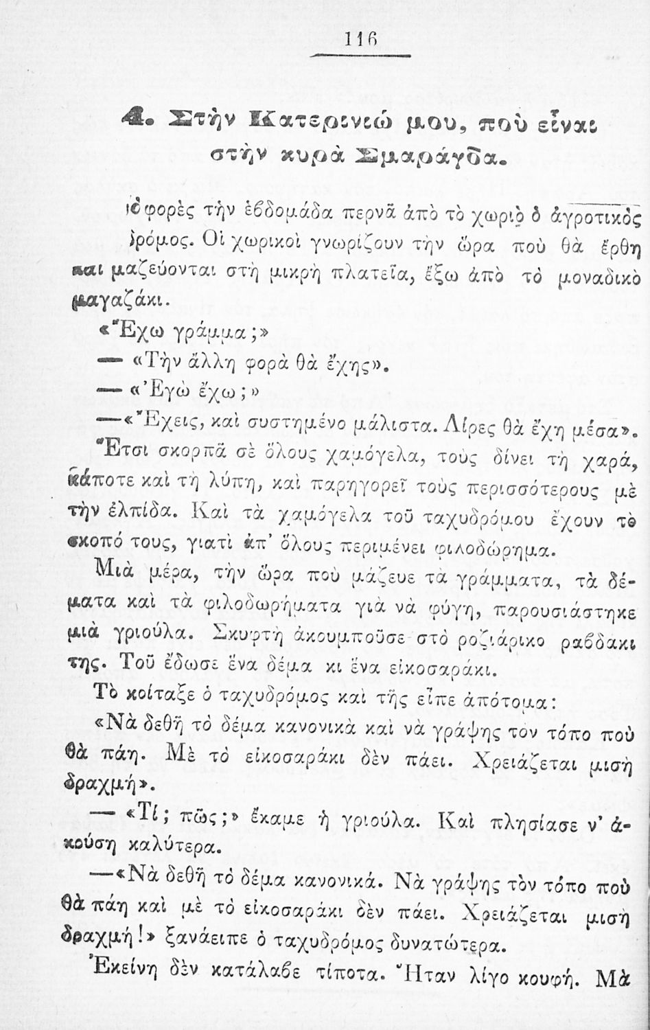 Αναγνωστικό Δ΄ Δημοτικού που περιέχει πεζά και ποιήματα με περιεχόμενο διδακτικό και ηθικοπλαστικό εμπνευσμένα από την ελληνική ιστορία και μυθολογία, και την αγροτική και κοινωνική ζωή.