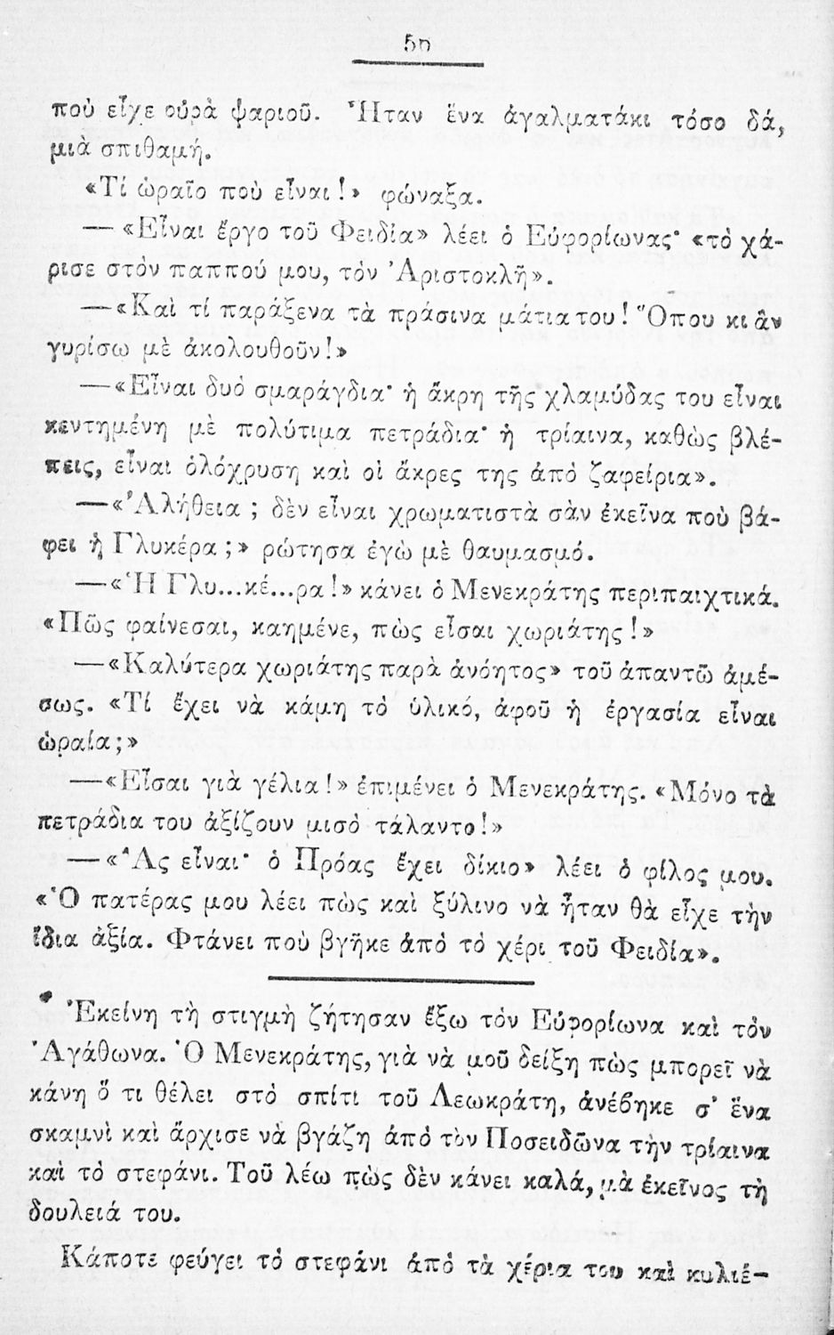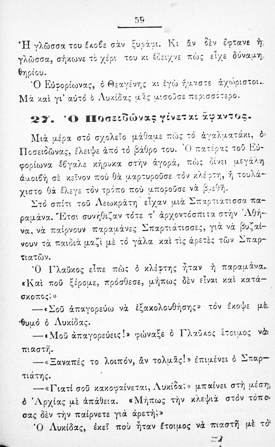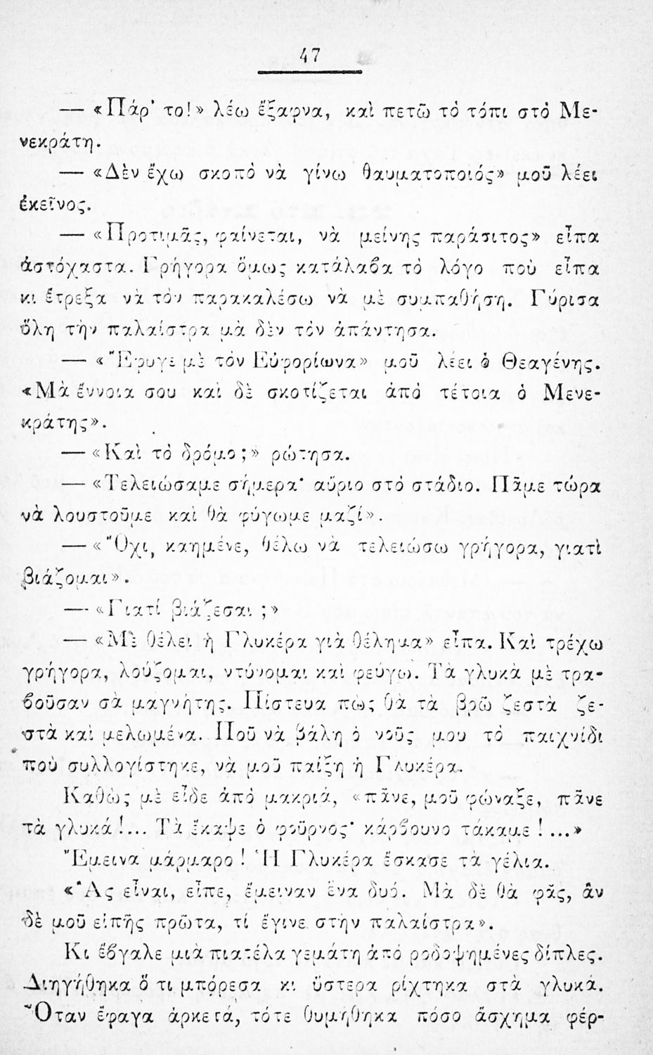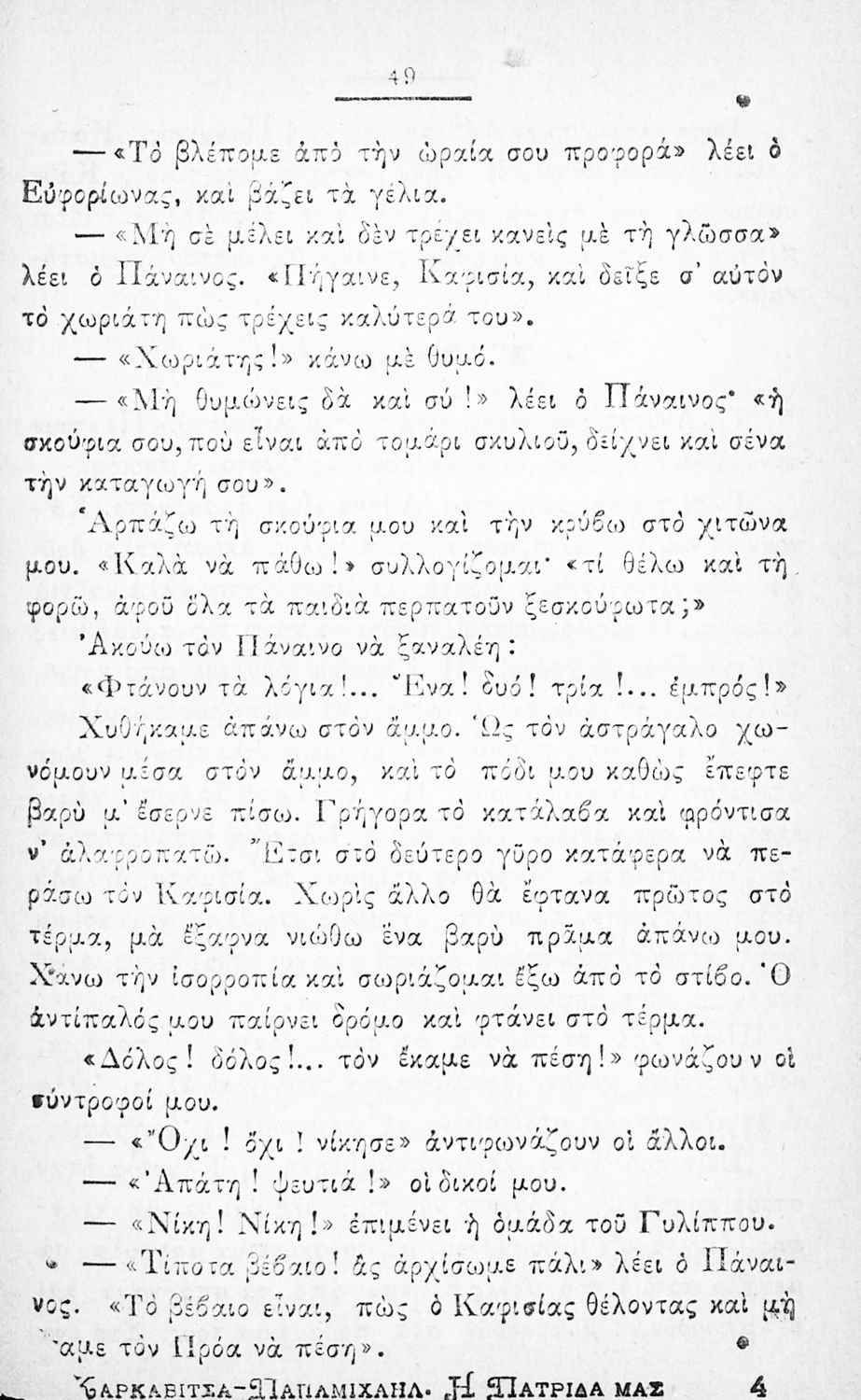 Αναγνωστικό Δ΄ Δημοτικού που περιέχει πεζά και ποιήματα με περιεχόμενο διδακτικό και ηθικοπλαστικό εμπνευσμένα από την ελληνική ιστορία και μυθολογία, και την αγροτική και κοινωνική ζωή.