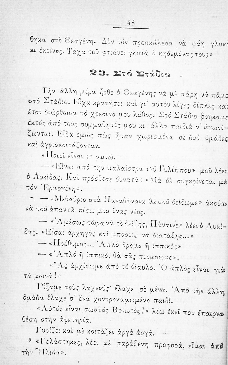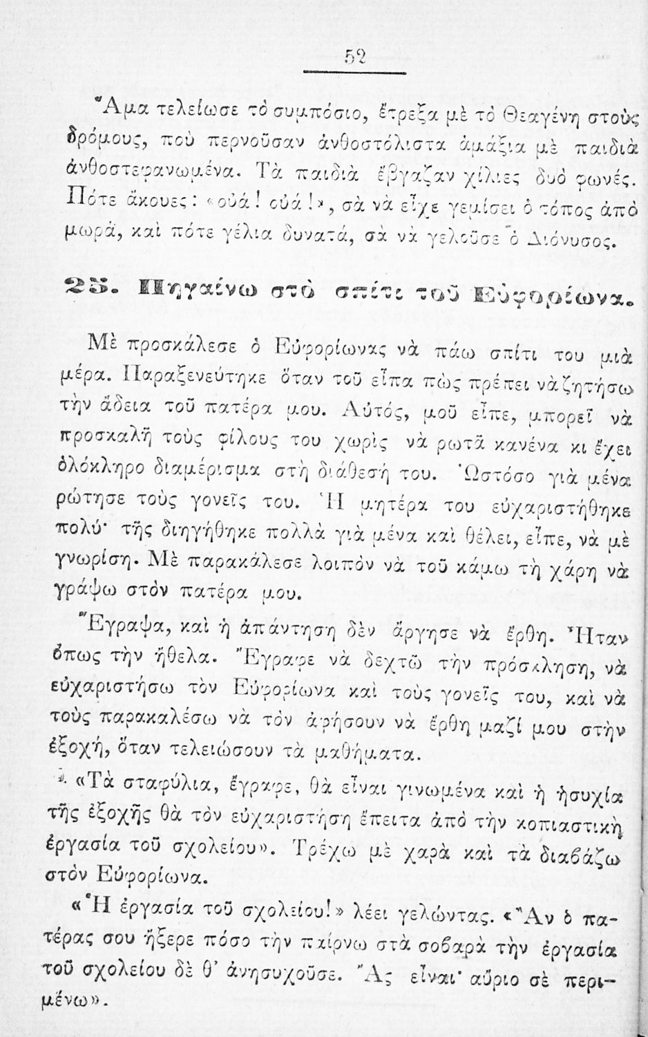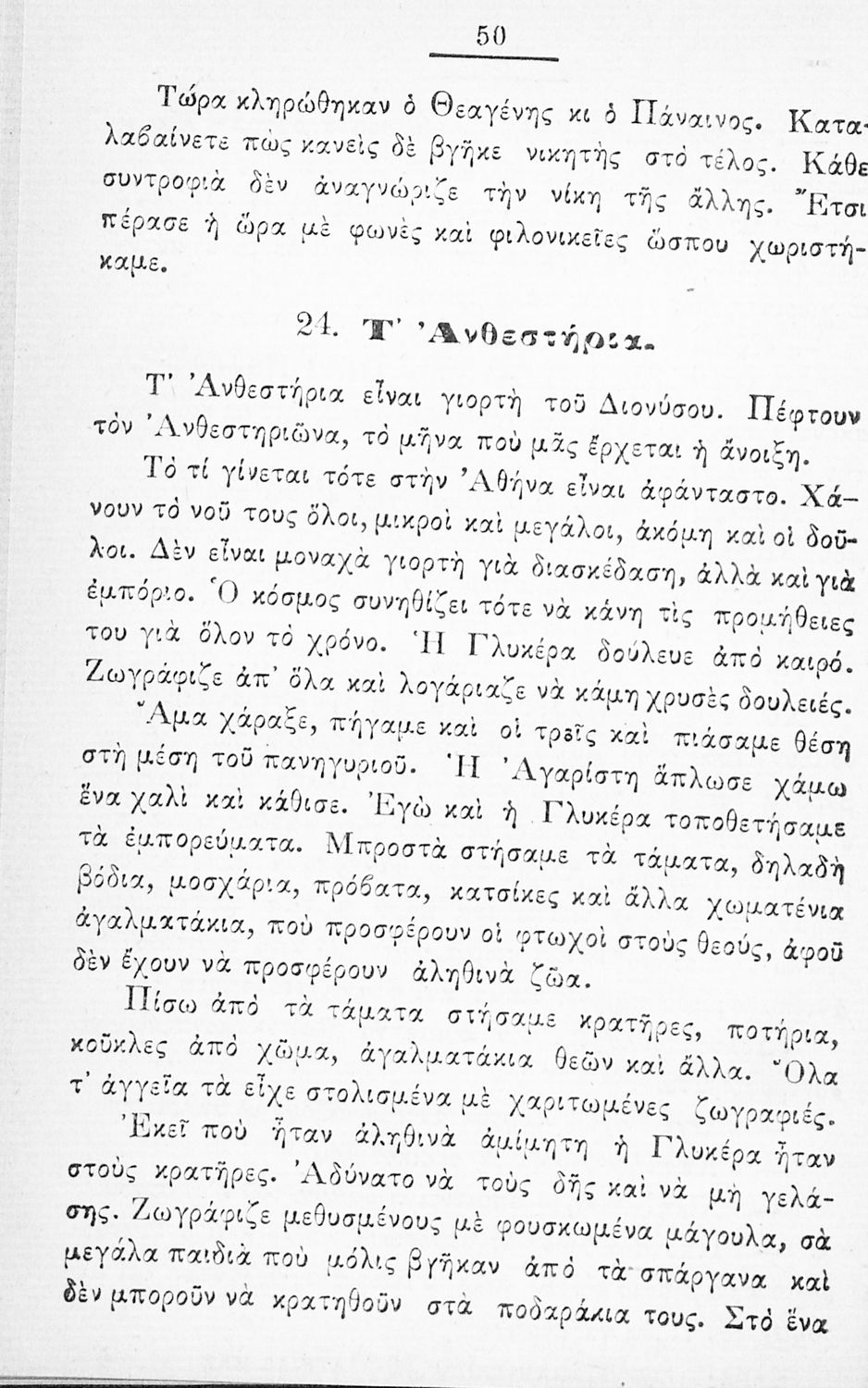 Αναγνωστικό Δ΄ Δημοτικού που περιλαμβάνει θέματα από την θρησκευτική, οικογενειακή και σχολική ζωή του παιδιού, την ελληνική μυθολογία και ιστορία και τη ζωή των ζώων.