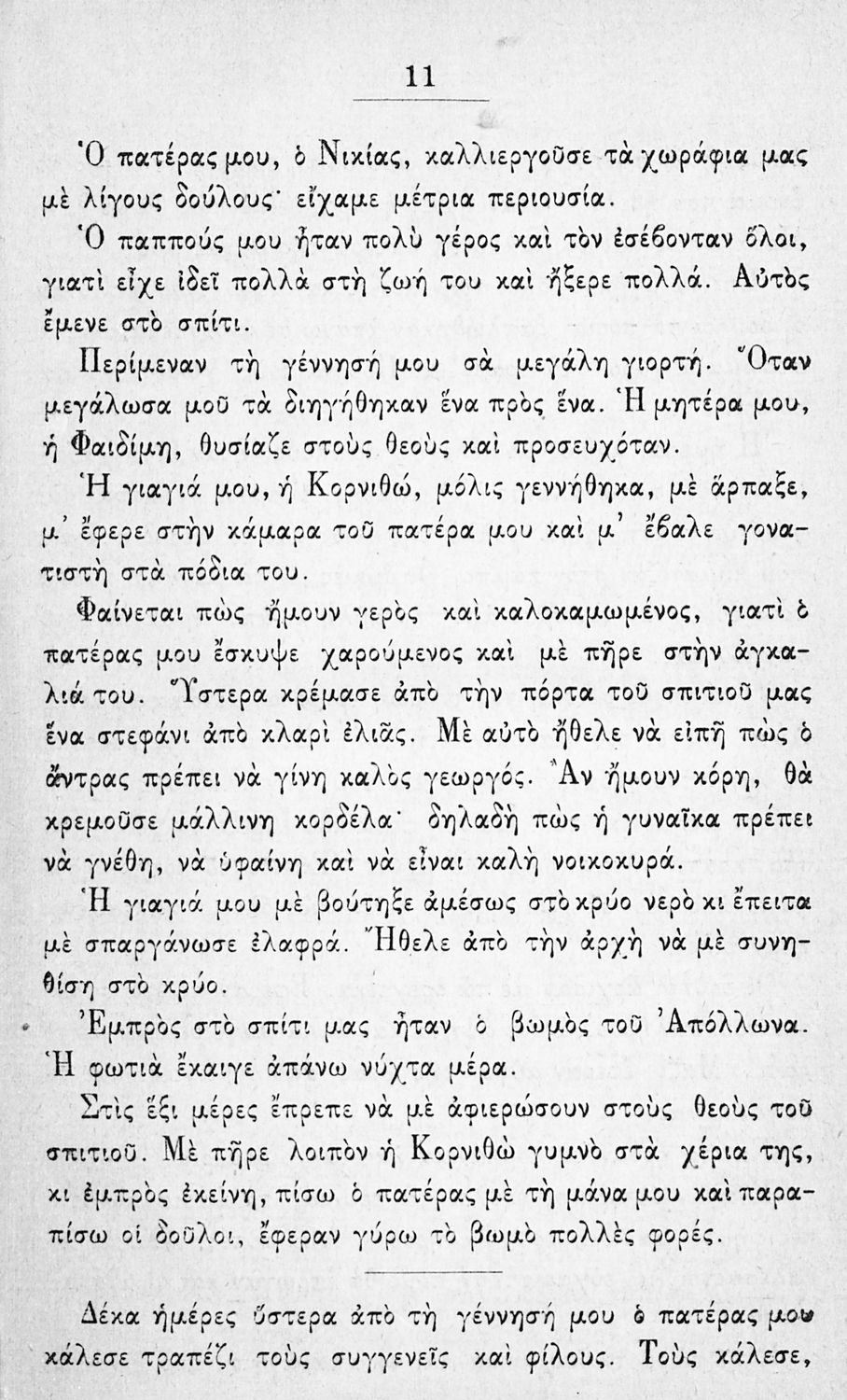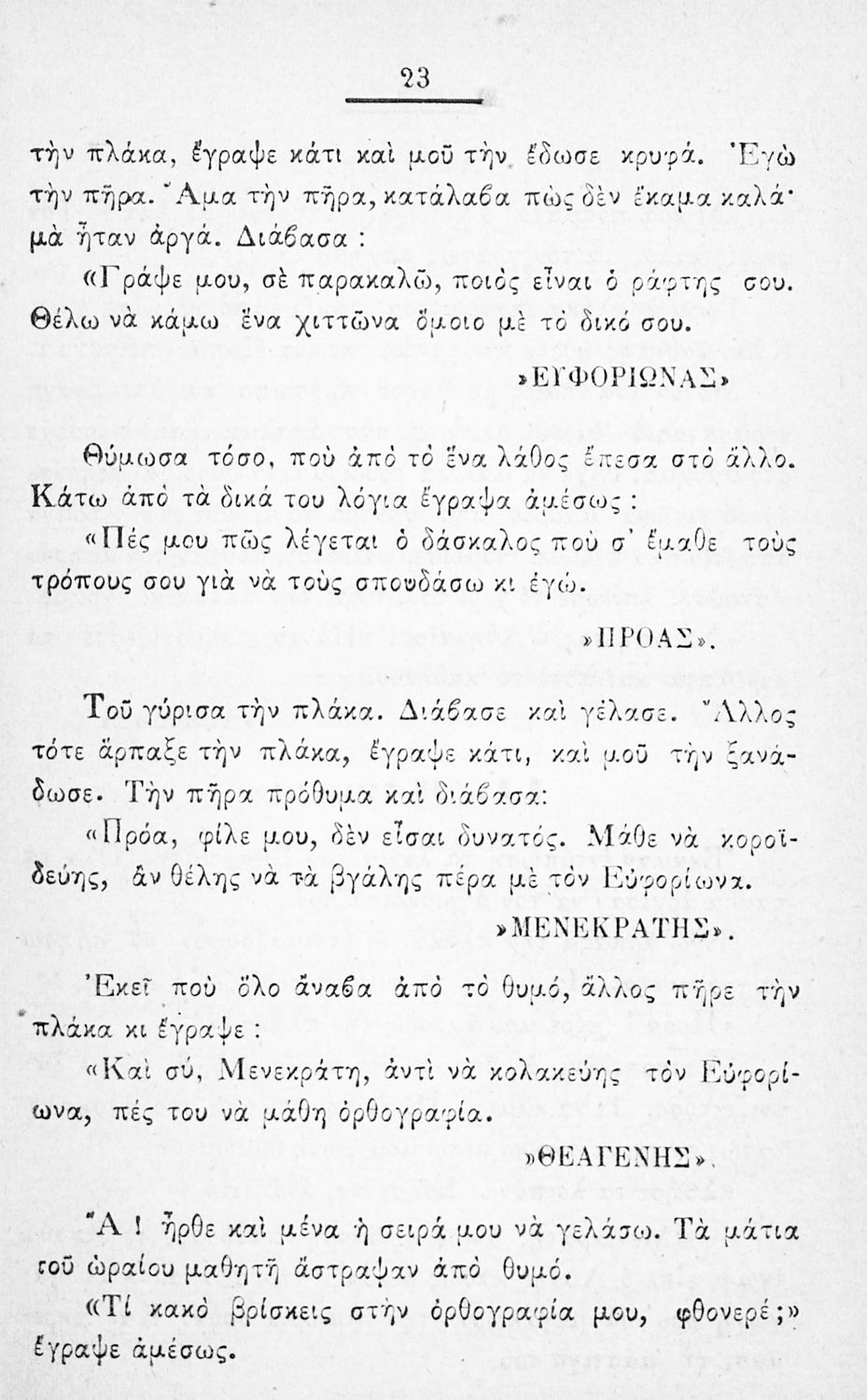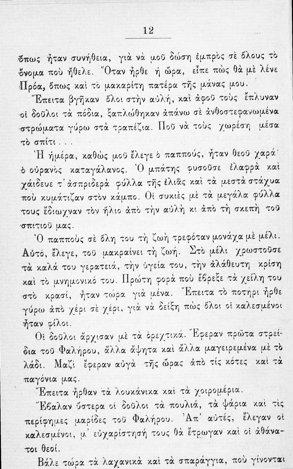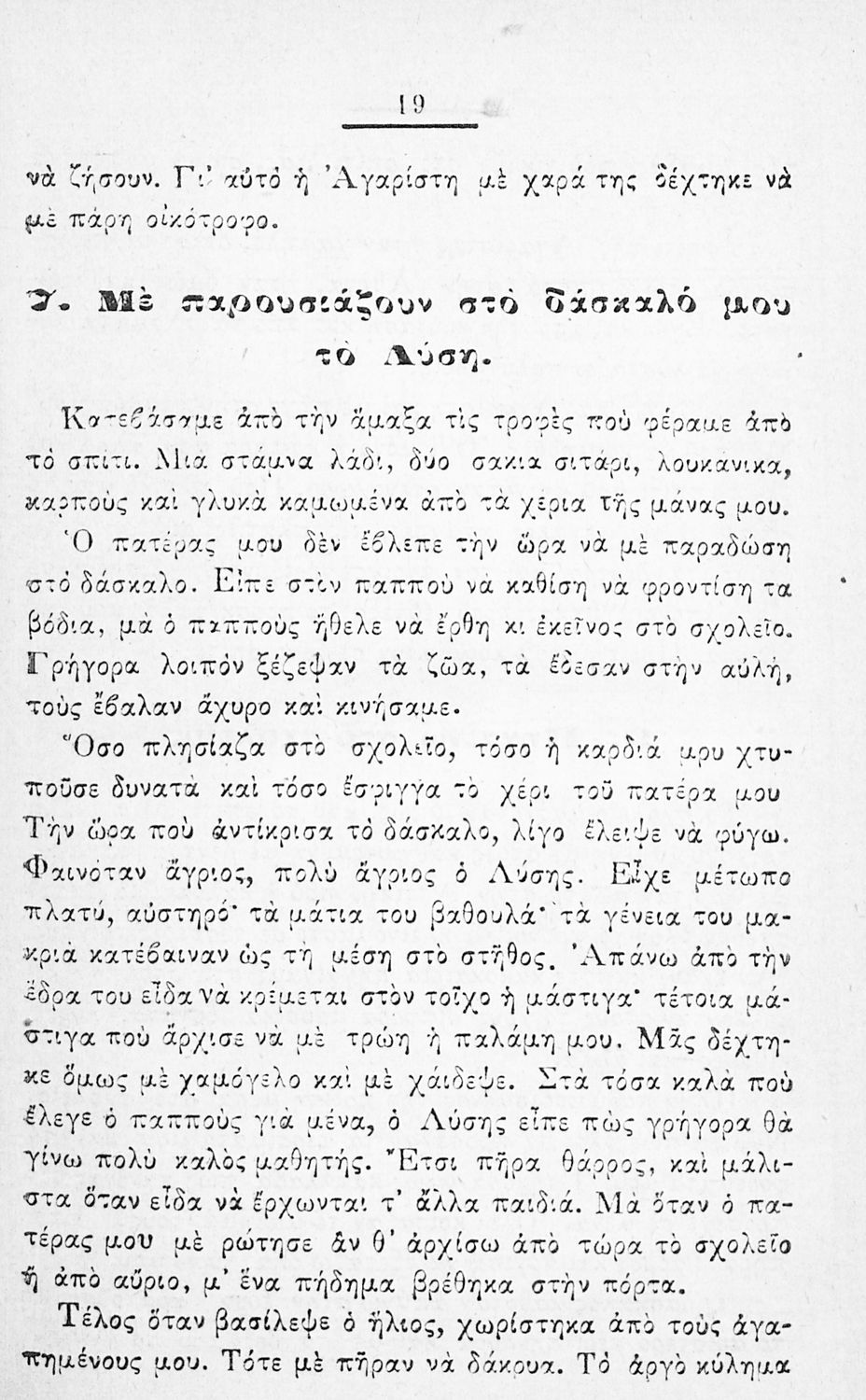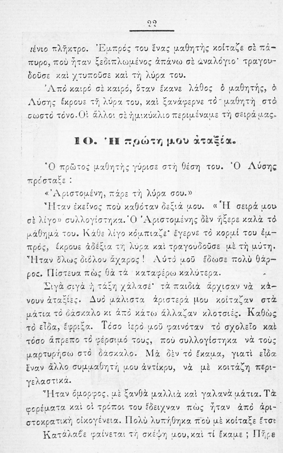 Αναγνωστικό Δ΄ Δημοτικού που περιέχει πεζά και ποιήματα με περιεχόμενο διδακτικό και ηθικοπλαστικό εμπνευσμένα από την ελληνική ιστορία και μυθολογία, και την αγροτική και κοινωνική ζωή.