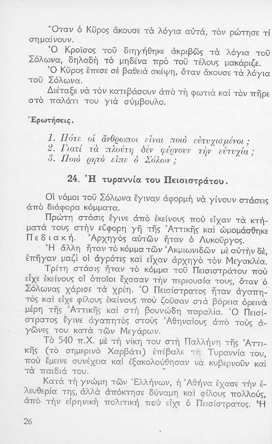 LDR 01178 2200205 4500 035 ## _a03-20561467 040 ## _aΒιβλιοθήκη της Βουλής των Ελλήνων 041 ## _ael 100 ## _aΜάρθα Καράμπελα 110 ## _a20561467 245 0# _aΙστορία Αρχαίας Ελλάδος Δ' Δημοτικού 260 ## _aΑθήνα _c1959 300 ## _a104 _bΕικόνες, σκίτσα ασπρόμαυρα 520 ## _aΜαθητικό βοήθημα Ιστορίας Δ' Δημοτικού που καλύπτει την περίοδο από τους προϊστορικούς χρόνους ως την κατάρρευση της Μακεδονικής Ηγεμονίας. 521 ## _aΔ' Δημοτικού 522 ## _aΕλλάδα 546 ## _aΔημοτική 563 ## _aΜαλακό Εξώφυλλο 583 ## _c1959 650 #4 _aΑθηναϊκή Δημοκρατία _aΚλεισθένης _aΛυκούργος _aΜάχη των Θερμοπυλών _aΜάχη των Πλαταιών _aΜέγας Αλέξανδρος _aΝαυμαχία στη Σαλαμίνα _aΞέρξης _aΠερσικοί πόλεμοι _aΣόλωνας _aΦίλιππος