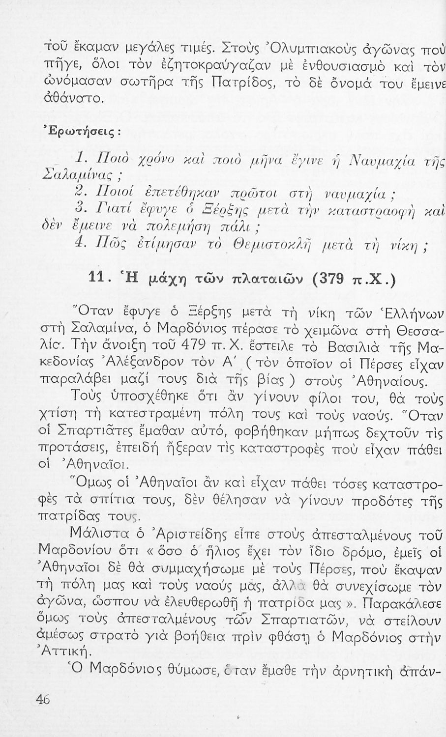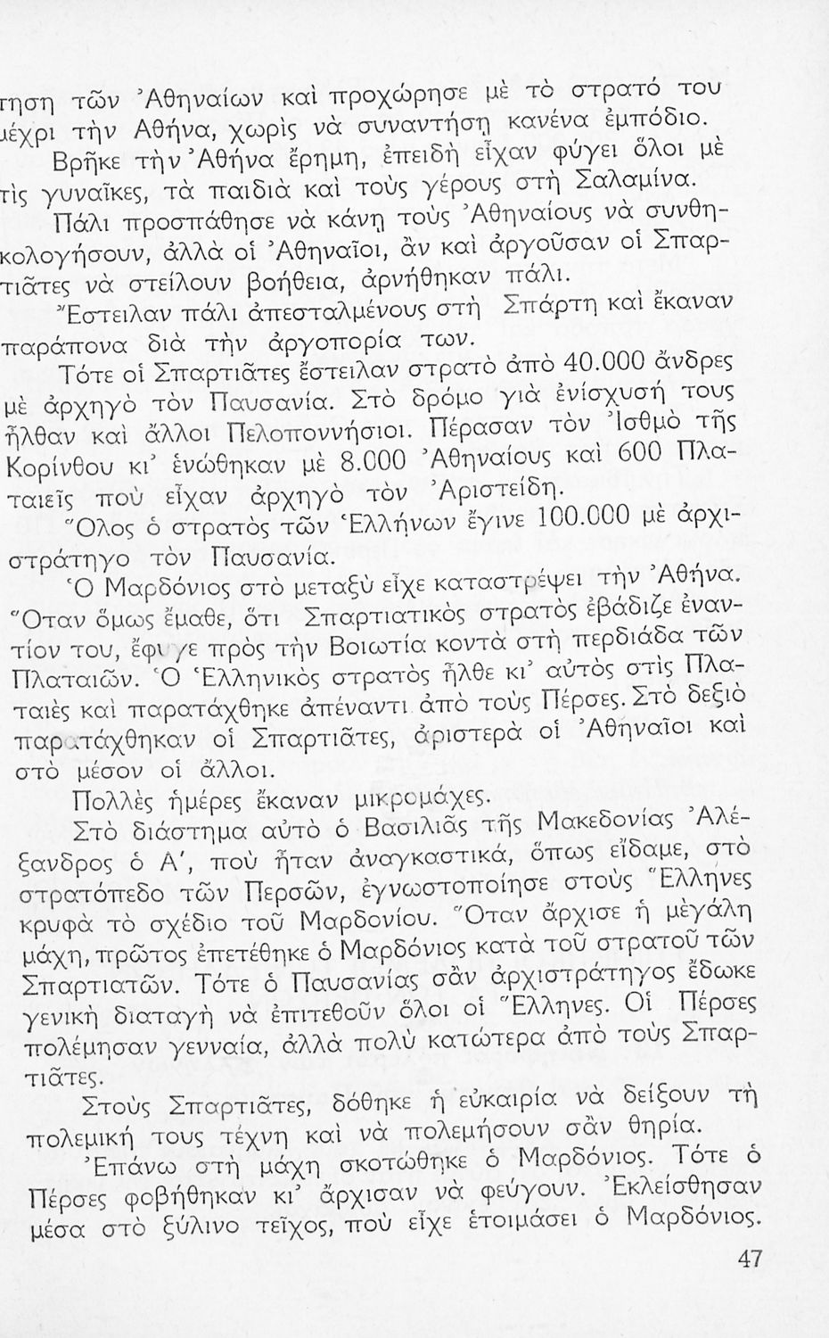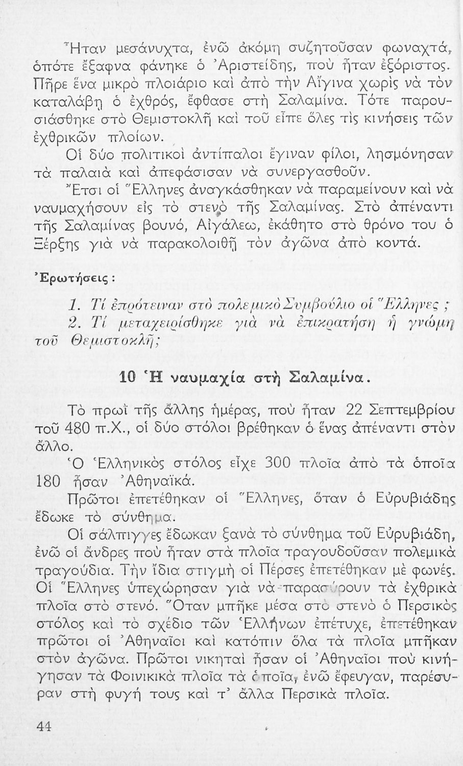 LDR 01178 2200205 4500 035 ## _a03-20561467 040 ## _aΒιβλιοθήκη της Βουλής των Ελλήνων 041 ## _ael 100 ## _aΜάρθα Καράμπελα 110 ## _a20561467 245 0# _aΙστορία Αρχαίας Ελλάδος Δ' Δημοτικού 260 ## _aΑθήνα _c1959 300 ## _a104 _bΕικόνες, σκίτσα ασπρόμαυρα 520 ## _aΜαθητικό βοήθημα Ιστορίας Δ' Δημοτικού που καλύπτει την περίοδο από τους προϊστορικούς χρόνους ως την κατάρρευση της Μακεδονικής Ηγεμονίας. 521 ## _aΔ' Δημοτικού 522 ## _aΕλλάδα 546 ## _aΔημοτική 563 ## _aΜαλακό Εξώφυλλο 583 ## _c1959 650 #4 _aΑθηναϊκή Δημοκρατία _aΚλεισθένης _aΛυκούργος _aΜάχη των Θερμοπυλών _aΜάχη των Πλαταιών _aΜέγας Αλέξανδρος _aΝαυμαχία στη Σαλαμίνα _aΞέρξης _aΠερσικοί πόλεμοι _aΣόλωνας _aΦίλιππος