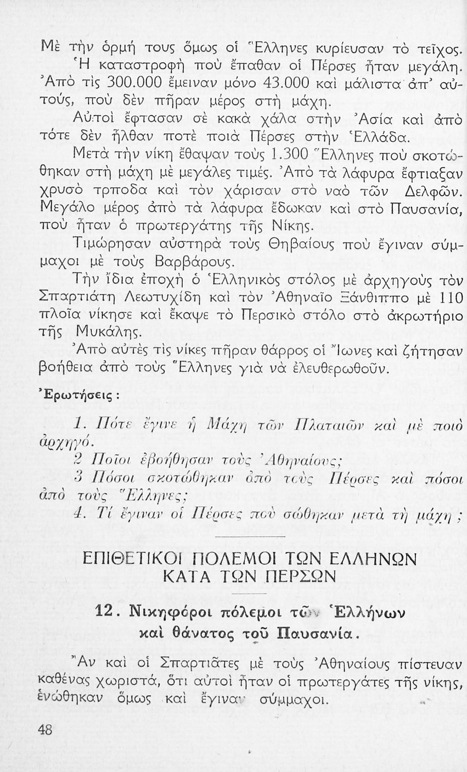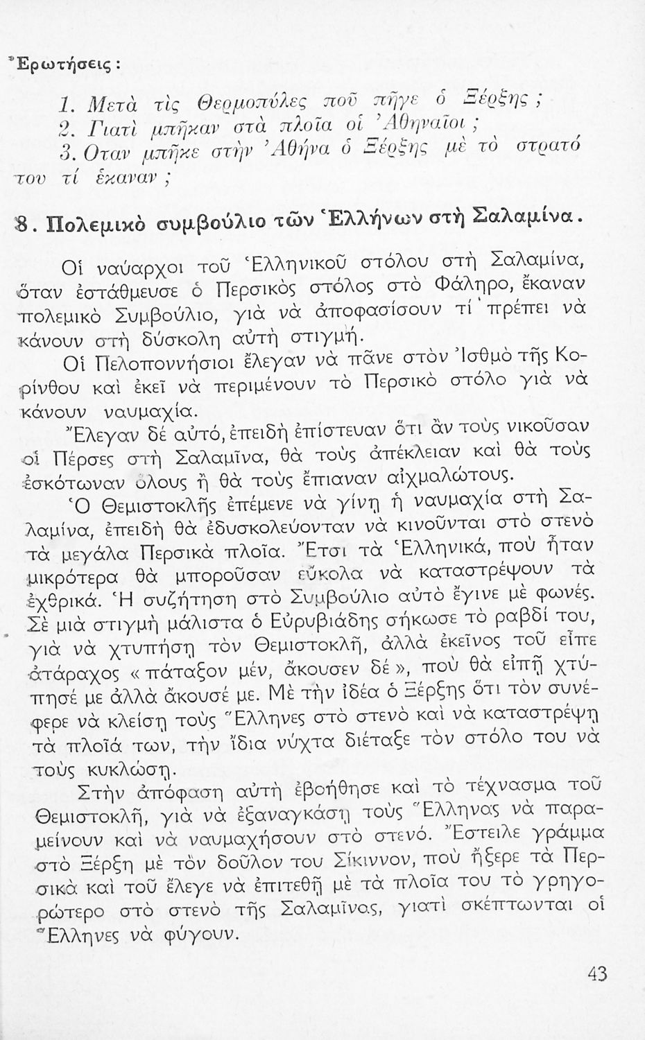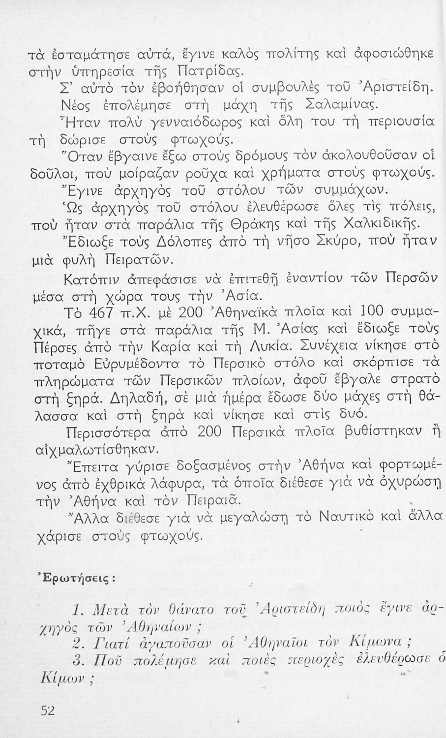 LDR 01178 2200205 4500 035 ## _a03-20561467 040 ## _aΒιβλιοθήκη της Βουλής των Ελλήνων 041 ## _ael 100 ## _aΜάρθα Καράμπελα 110 ## _a20561467 245 0# _aΙστορία Αρχαίας Ελλάδος Δ' Δημοτικού 260 ## _aΑθήνα _c1959 300 ## _a104 _bΕικόνες, σκίτσα ασπρόμαυρα 520 ## _aΜαθητικό βοήθημα Ιστορίας Δ' Δημοτικού που καλύπτει την περίοδο από τους προϊστορικούς χρόνους ως την κατάρρευση της Μακεδονικής Ηγεμονίας. 521 ## _aΔ' Δημοτικού 522 ## _aΕλλάδα 546 ## _aΔημοτική 563 ## _aΜαλακό Εξώφυλλο 583 ## _c1959 650 #4 _aΑθηναϊκή Δημοκρατία _aΚλεισθένης _aΛυκούργος _aΜάχη των Θερμοπυλών _aΜάχη των Πλαταιών _aΜέγας Αλέξανδρος _aΝαυμαχία στη Σαλαμίνα _aΞέρξης _aΠερσικοί πόλεμοι _aΣόλωνας _aΦίλιππος