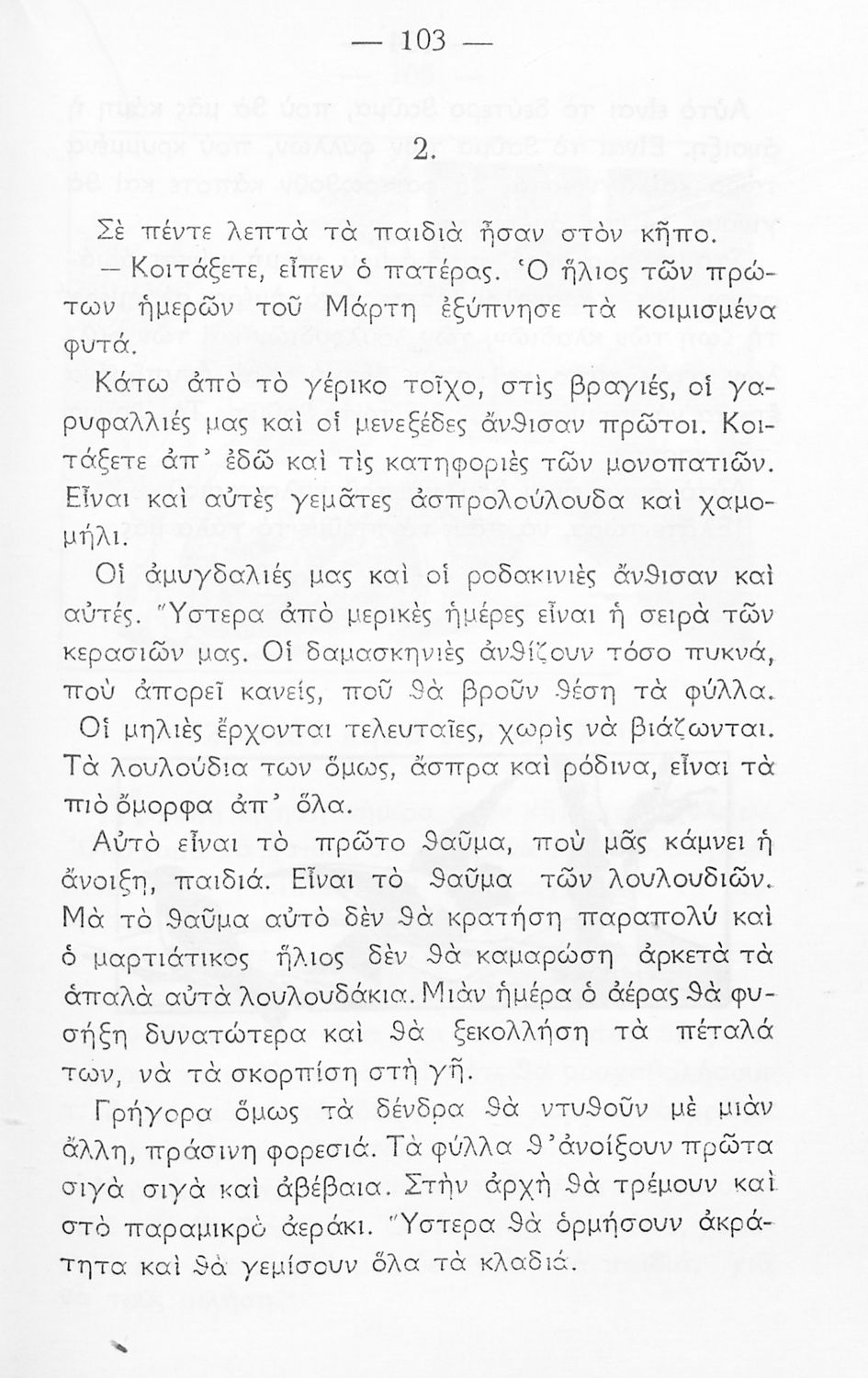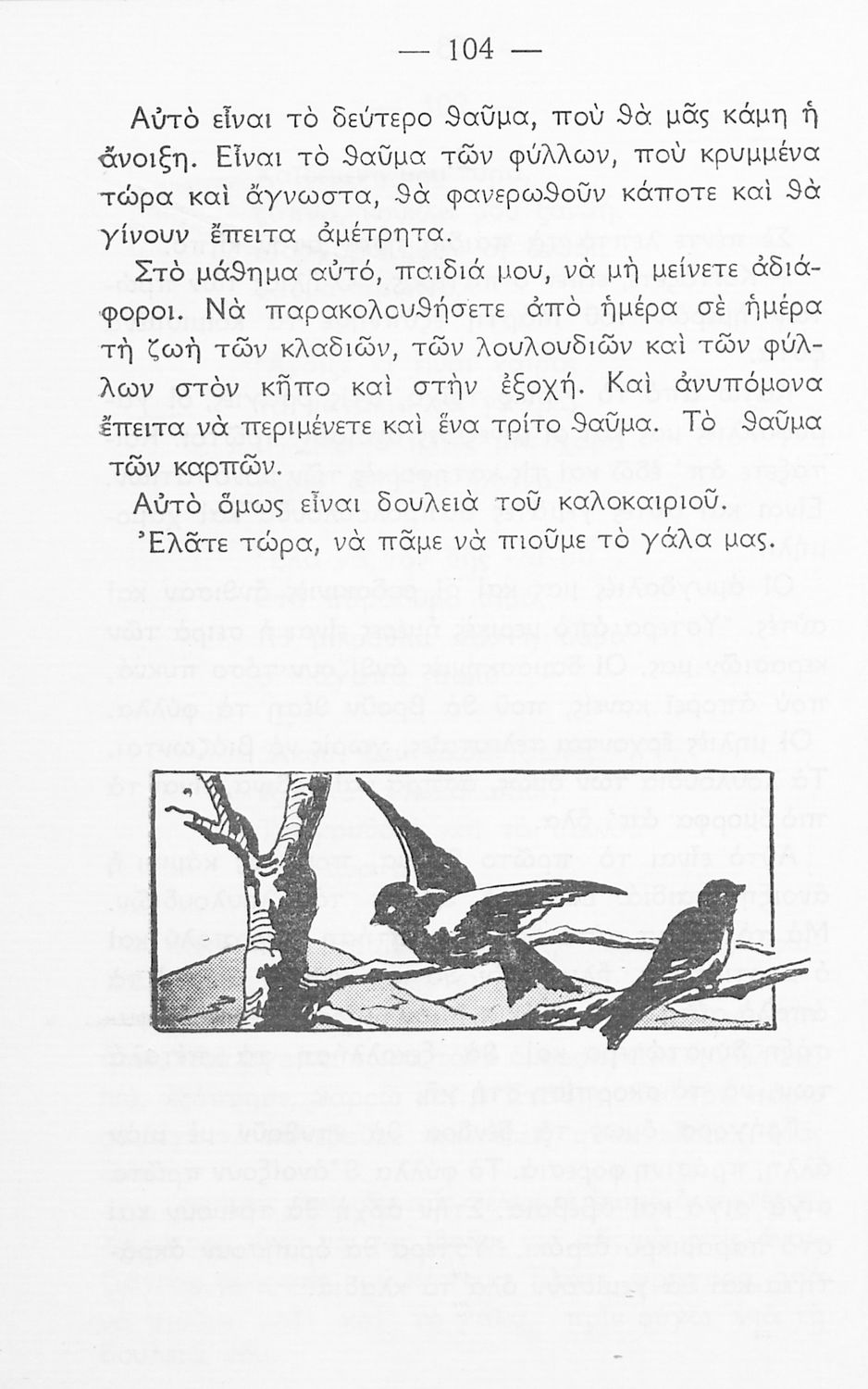 Αναγνωστικό Γ' Δημοτικού που περιέχει πεζά και ποιήματα εμπνευσμένα από τη θρησκευτική, εθνική, κοινωνική και ατομική ζωή, και την ελληνική φύση και ιστορία.