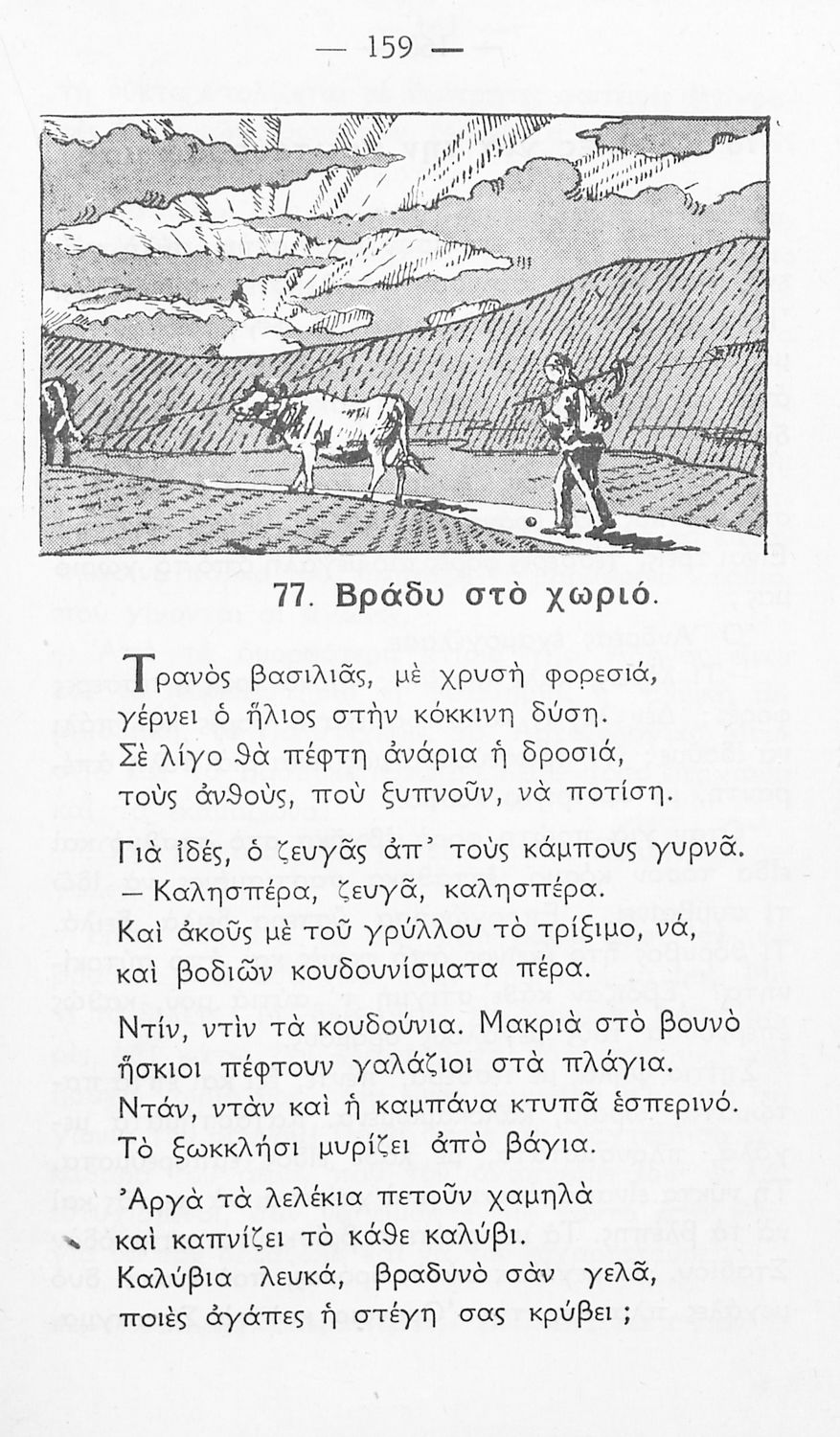 Σχολικό εγχειρίδιο Γλώσσας για τη Γ' Δημοτικού. Προοριζόταν για αναγνωστικό των μαθητών της Γ' Δημοτικού. Στο κείμενο υπάρχουν αριθμοί σε παρενθέσεις που παραπέμπουν σε ποιήματα και δημοτικά τραγούδια που ...
