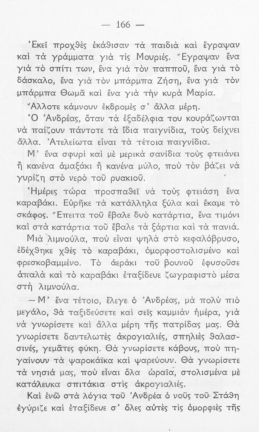 Αναγνωστικό για την Γ΄ Δημοτικού. Περιλαμβάνει μια αφηγηματική ιστορία, η οποία εμπεριέχει ηθικά διδάγματα για την ηθικοπλαστική καλλιέργεια των μαθητών. Η γλώσσα είναι δημοτική και το ύφος απλό. Στο παράρτημα