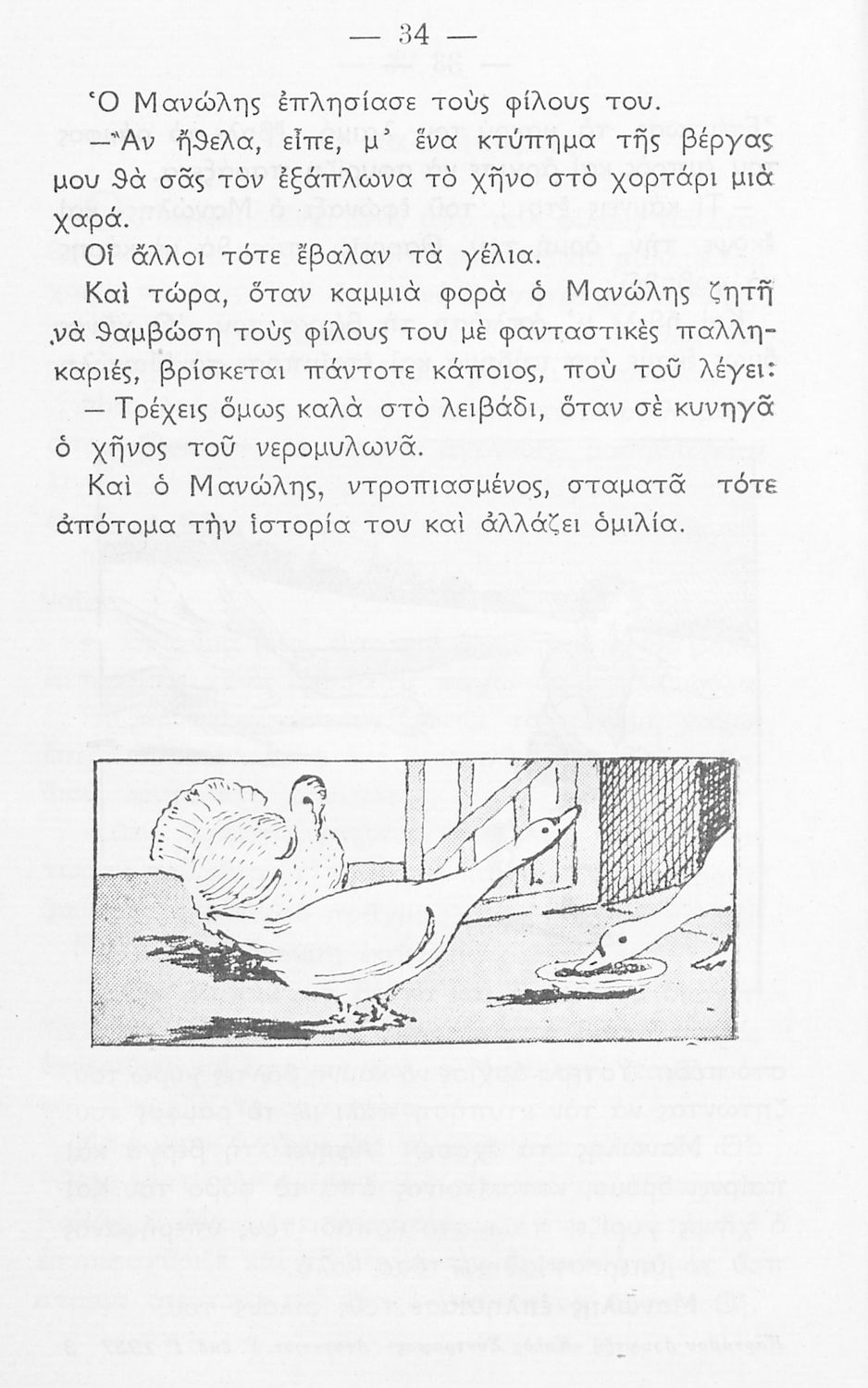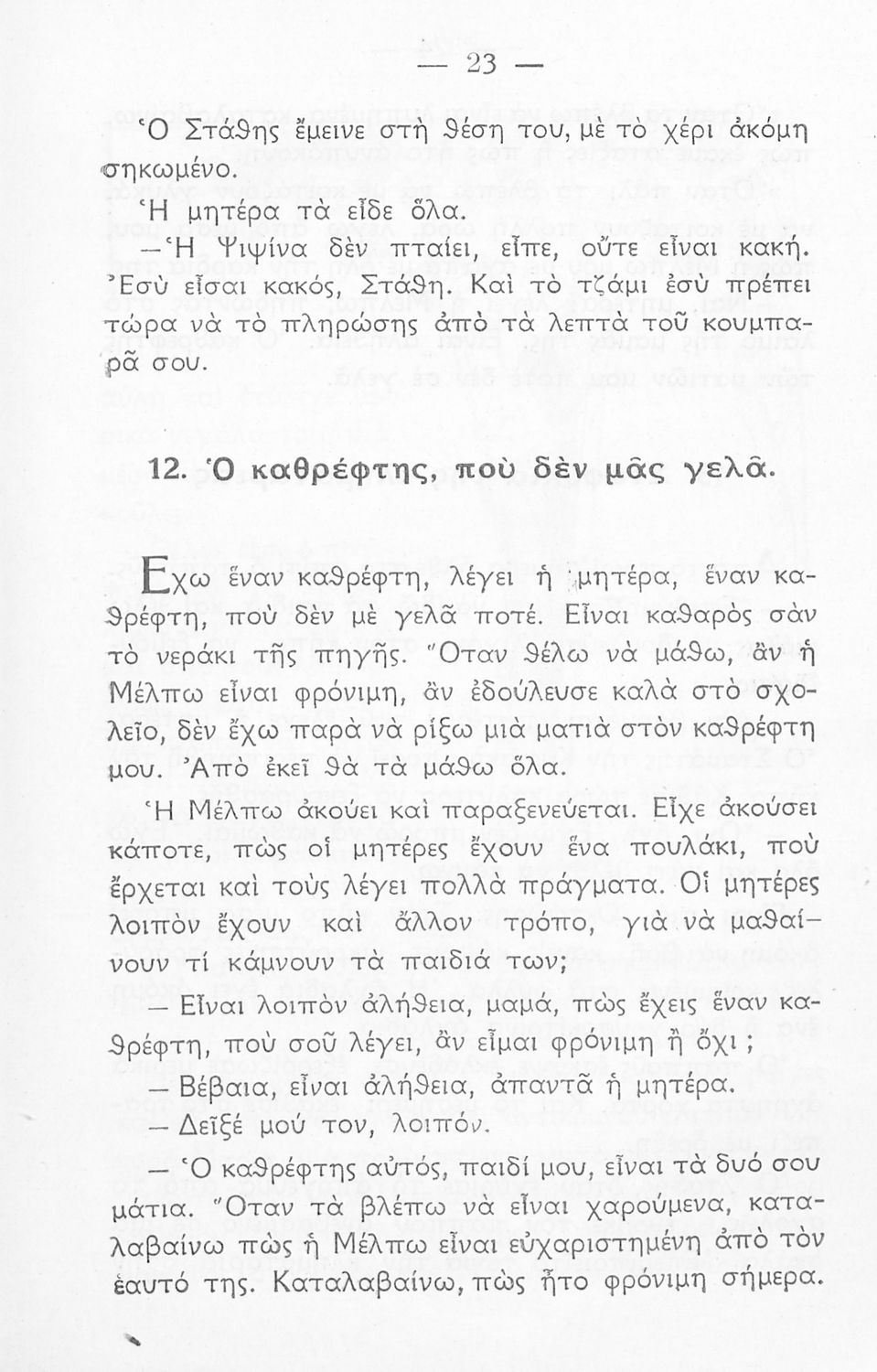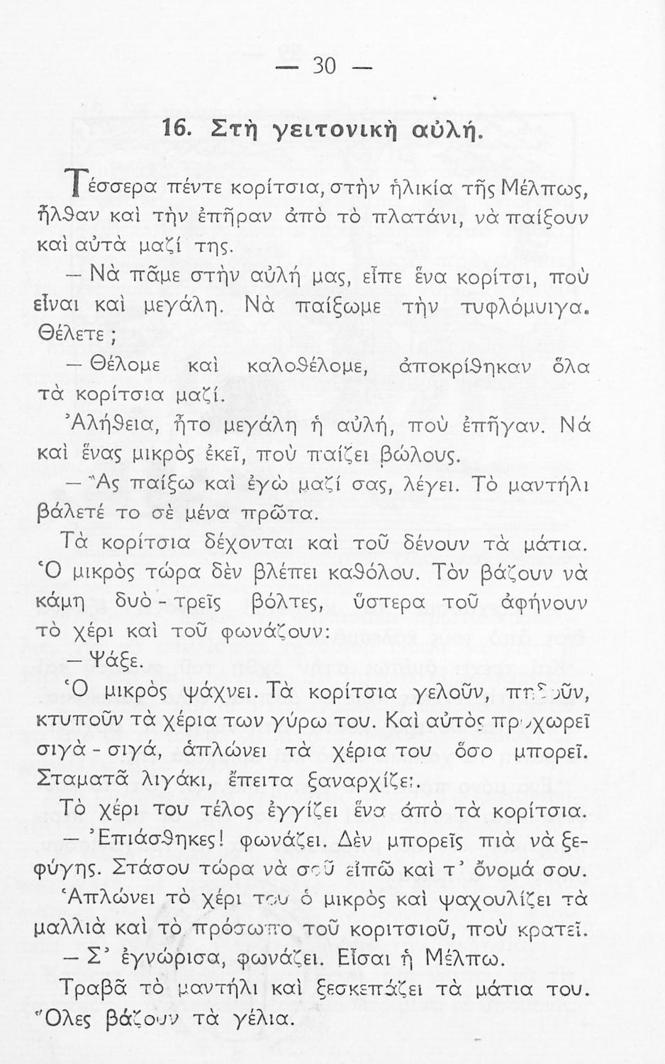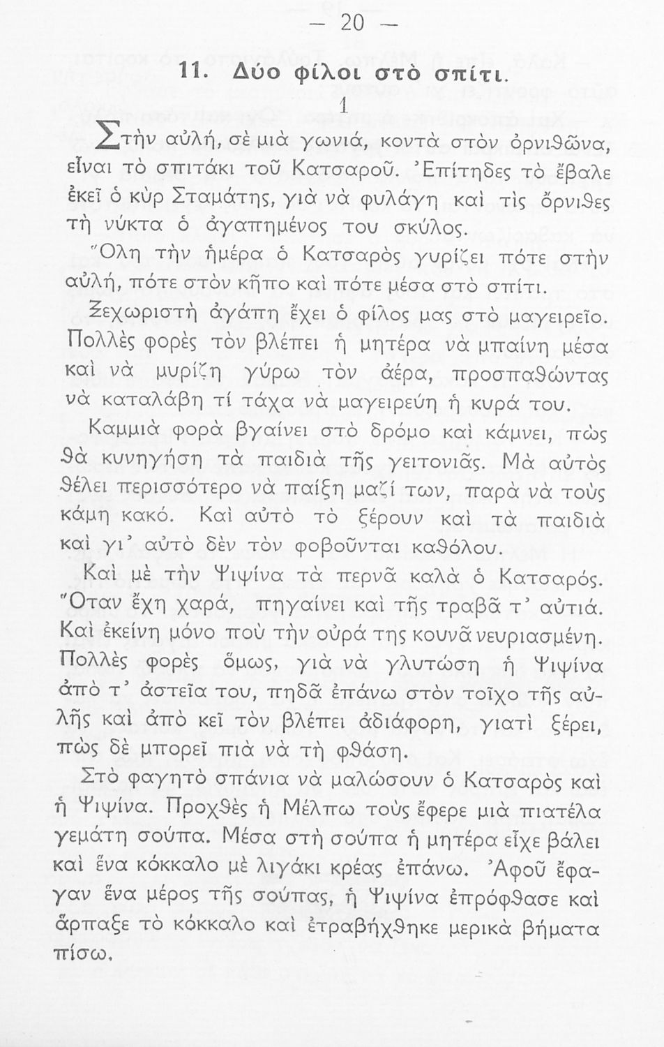 Το εγχειρίδιο ήταν αναγνωστικό για την Γ΄ Δημοτικού. Περιλαμβάνει μια αφηγηματική ιστορία, η οποία εμπεριέχει ηθικά διδάγματα για την ηθικοπλαστική καλλιέργεια των μαθητών. Η γλώσσα είναι δημοτική και το ύφος ...