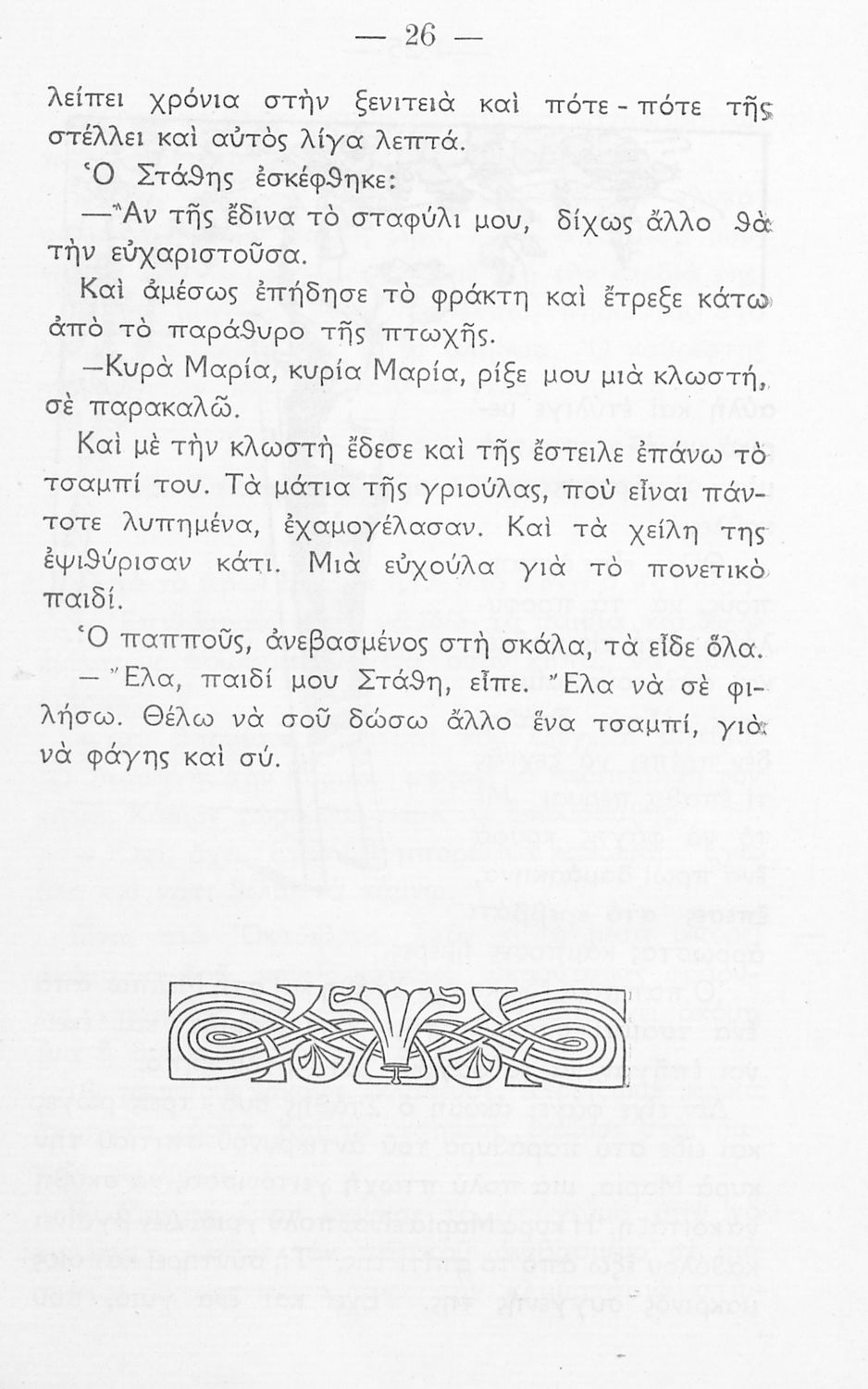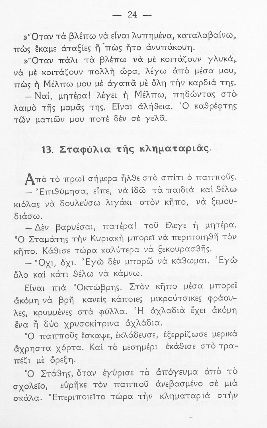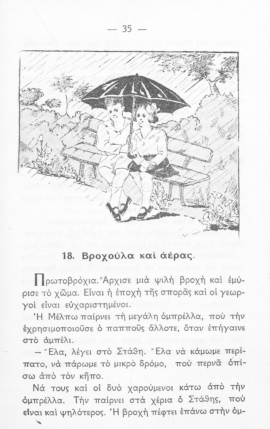 Αναγνωστικό Γ' Δημοτικού που περιέχει πεζά και ποιήματα εμπνευσμένα από τη θρησκευτική, εθνική, κοινωνική και ατομική ζωή, και την ελληνική φύση και ιστορία.