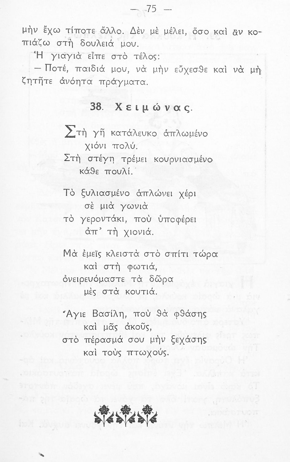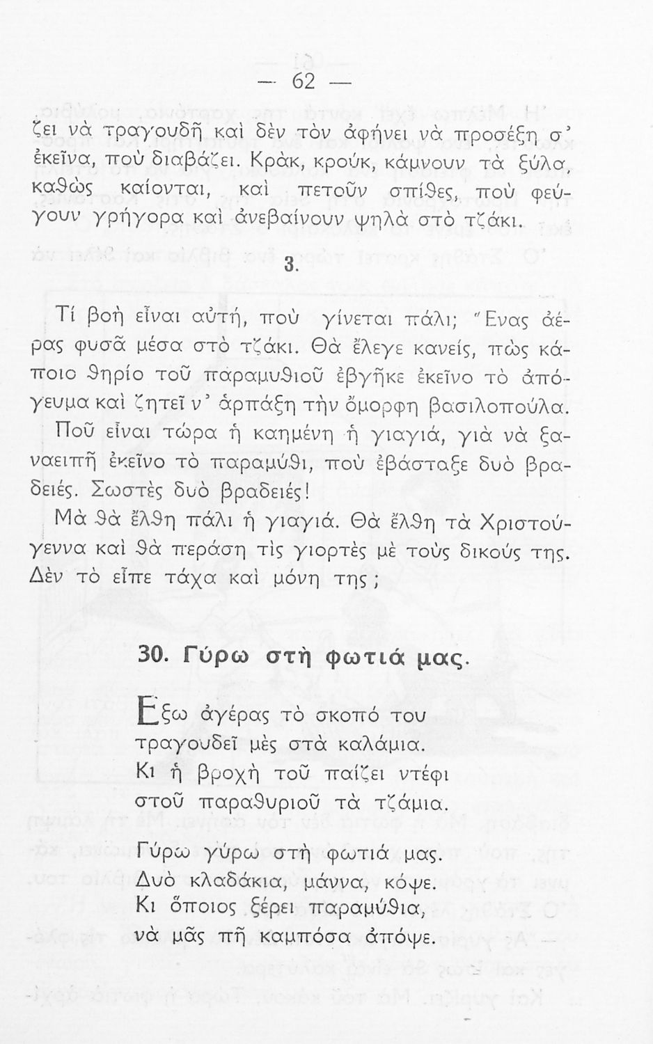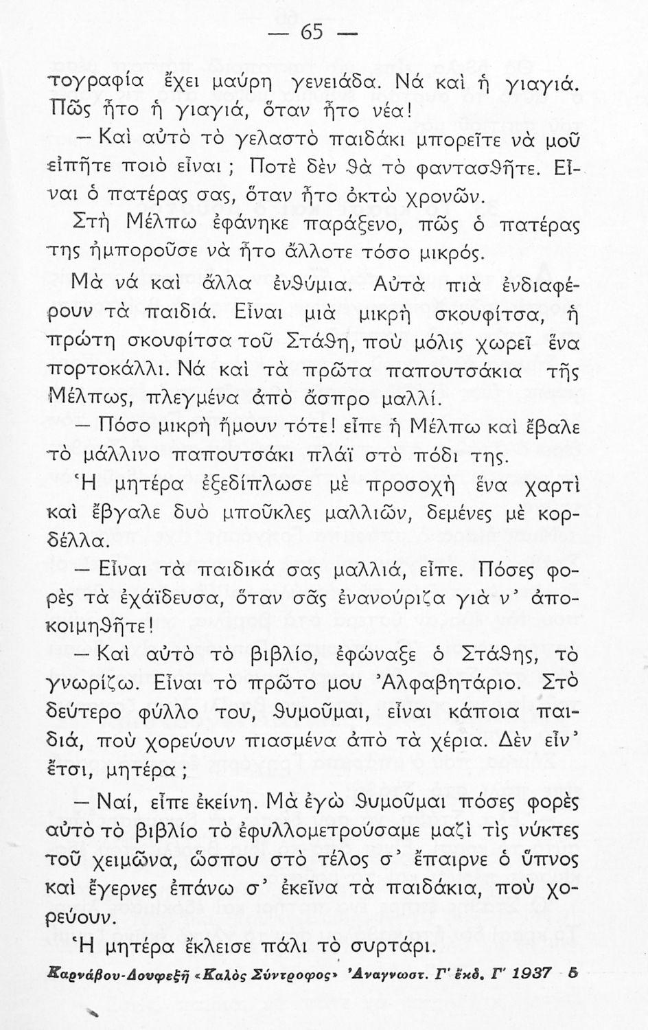 Σχολικό εγχειρίδιο Γλώσσας για τη Γ' Δημοτικού. Προοριζόταν για αναγνωστικό των μαθητών της Γ' Δημοτικού. Στο κείμενο υπάρχουν αριθμοί σε παρενθέσεις που παραπέμπουν σε ποιήματα και δημοτικά τραγούδια που ...