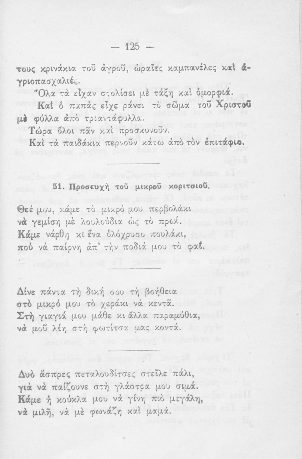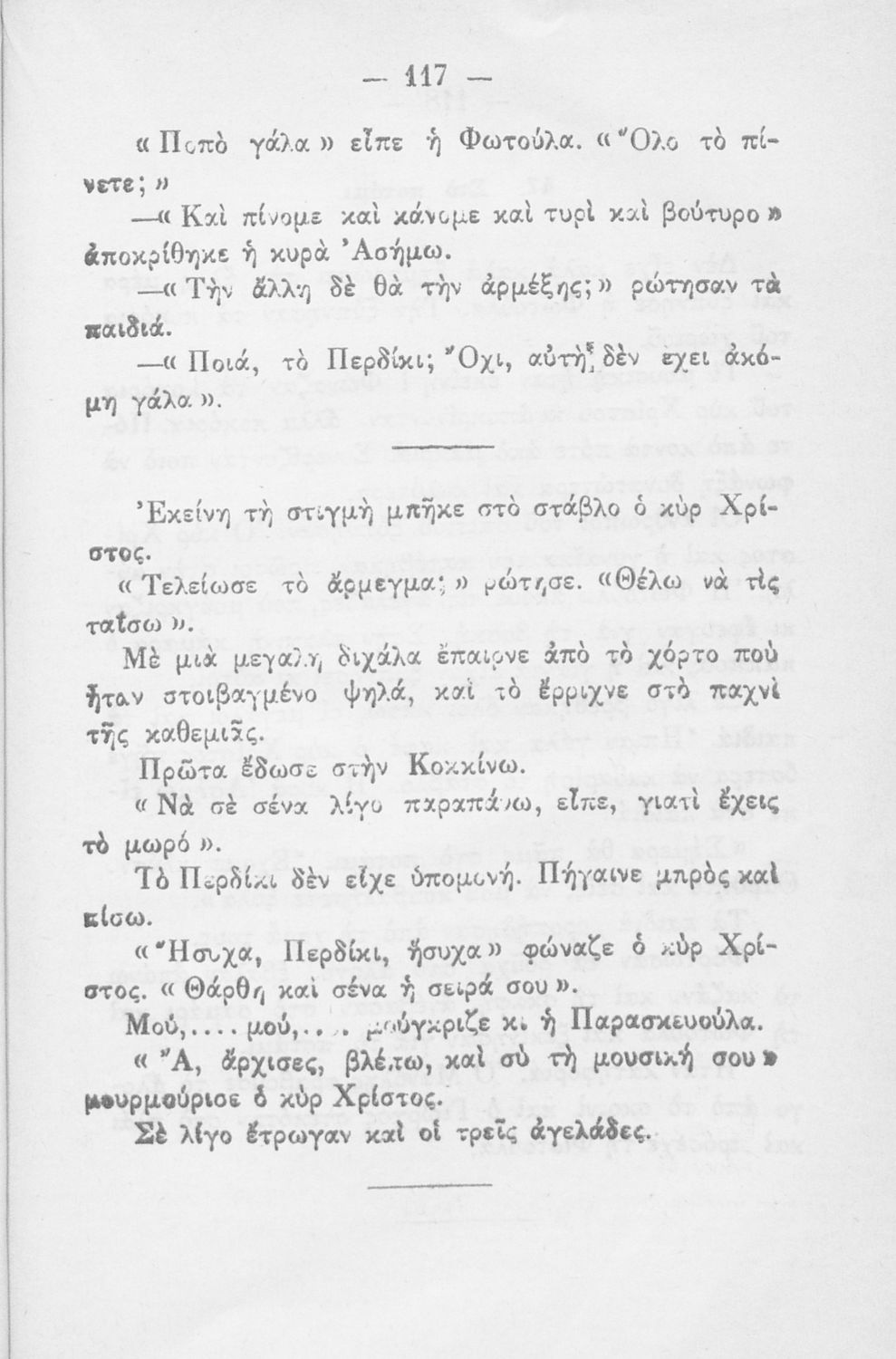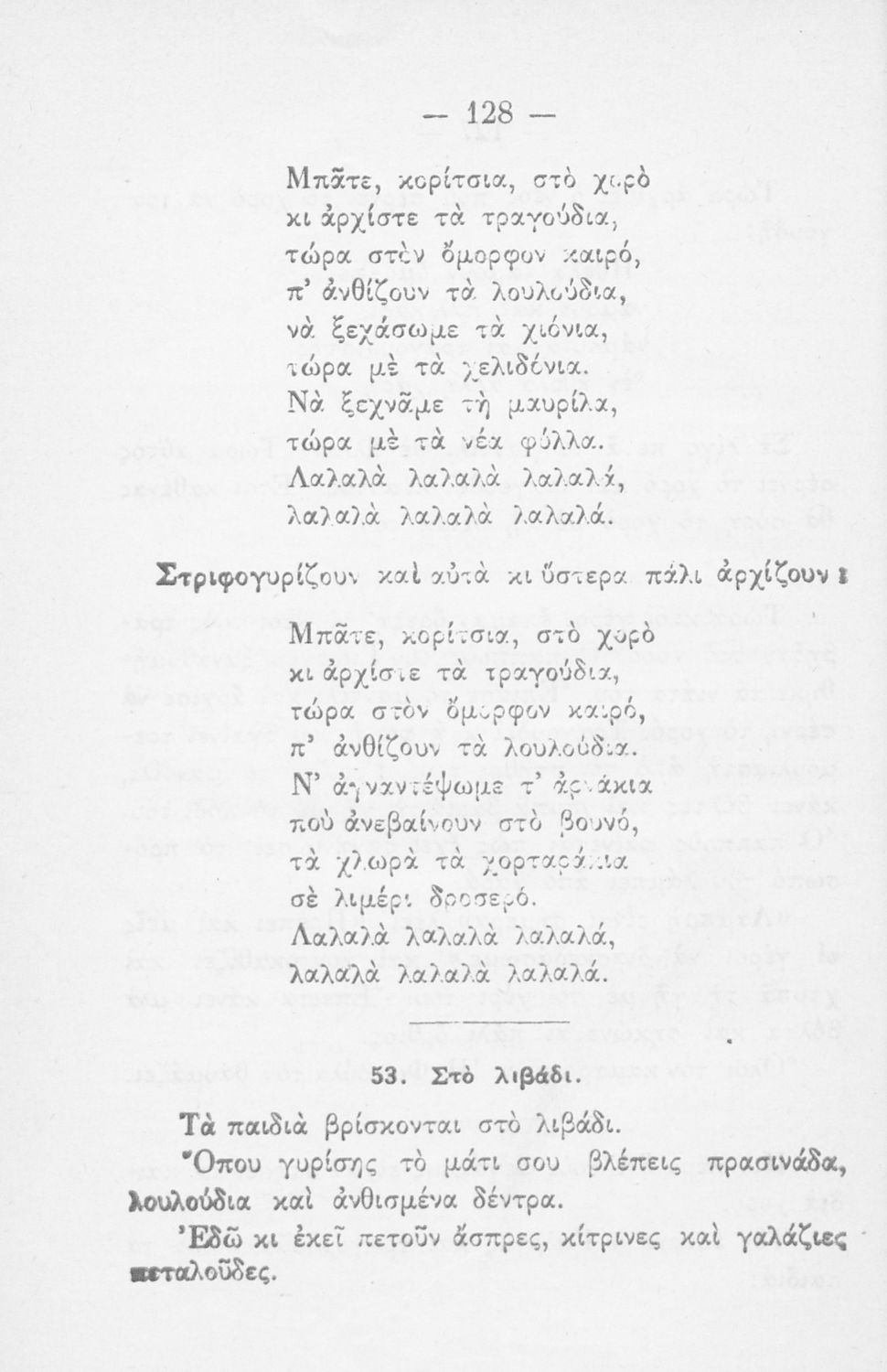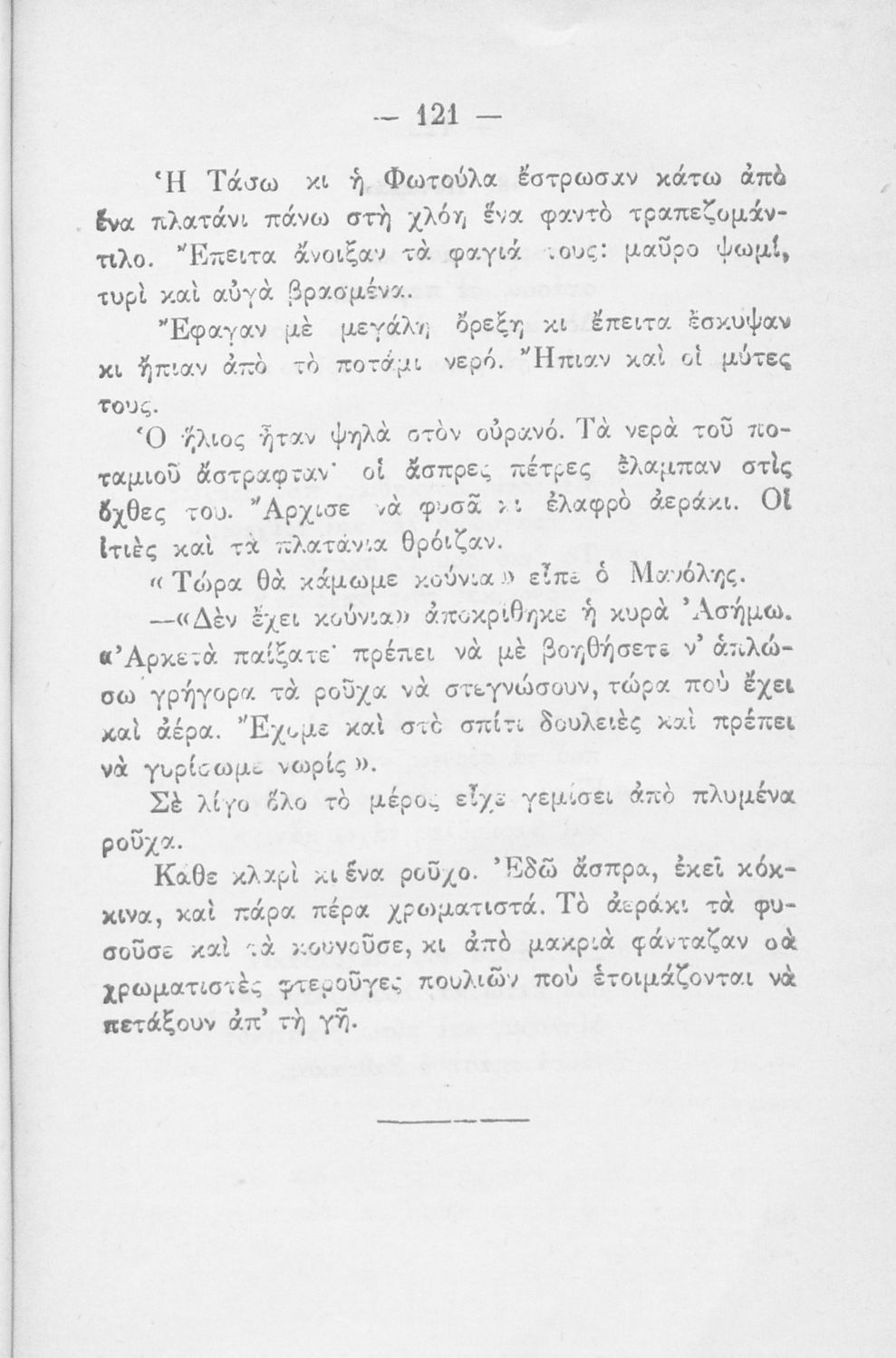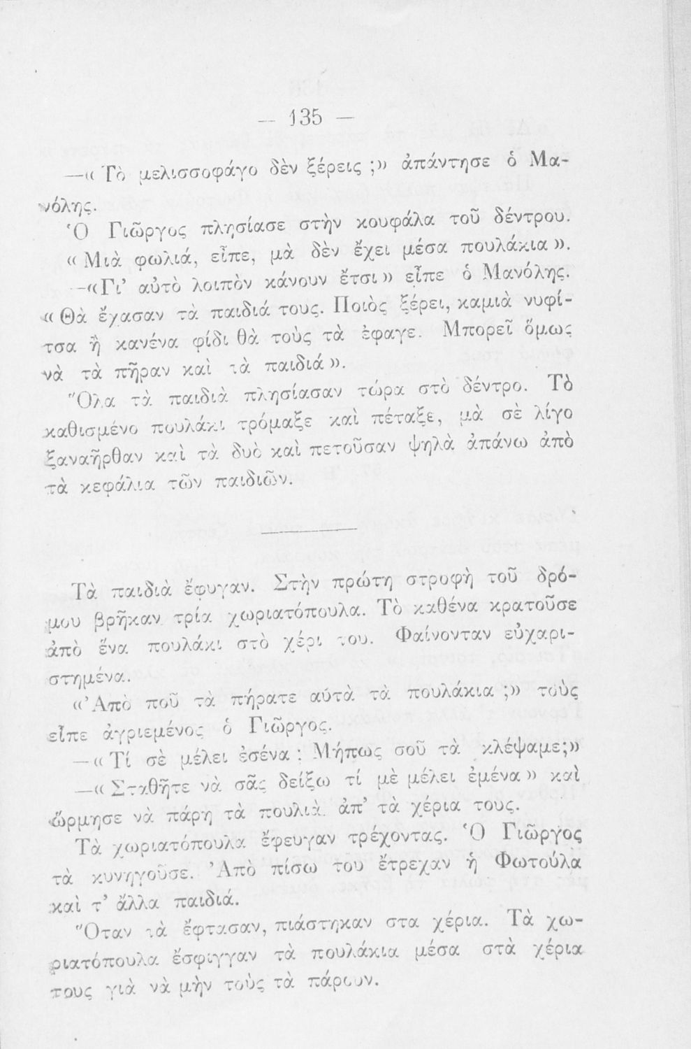 Αναγνωστικό Β΄ Δημοτικού που αποτελείται από πεζά γραμμένα σε καθαρεύουσα και ποιήματα σε δημοτική εμπνευσμένα από την οικογένεια, τη θρησκεία, την πατρίδα, την ελληνική φύση και ύπαιθρο, την αγάπη για τα ζώα,