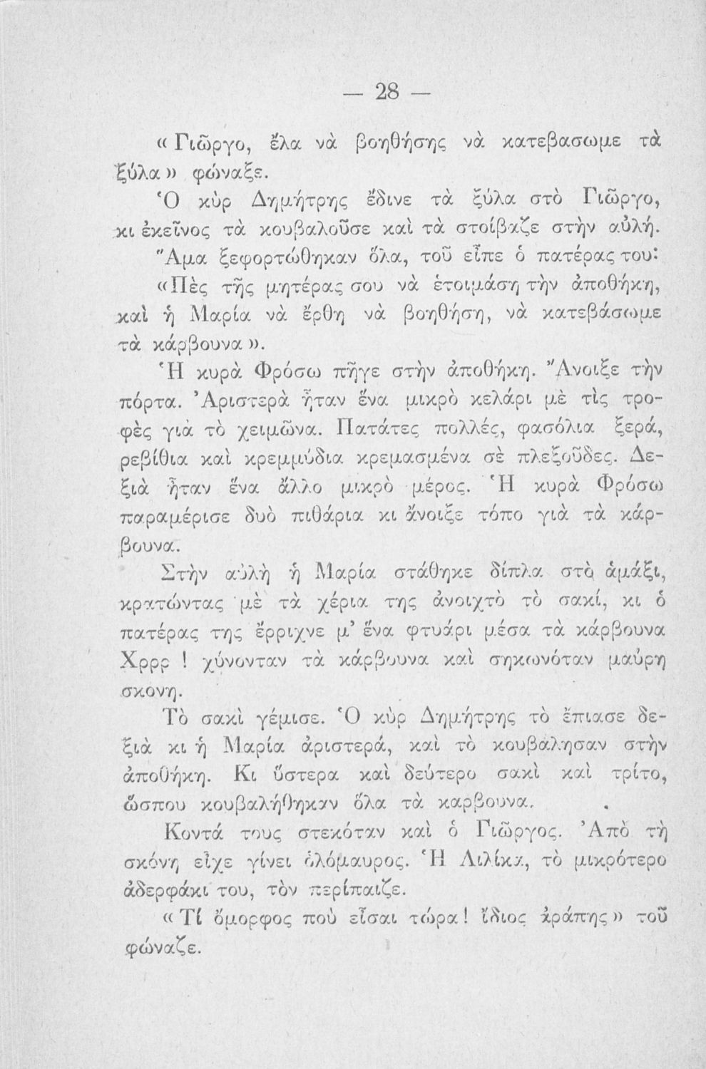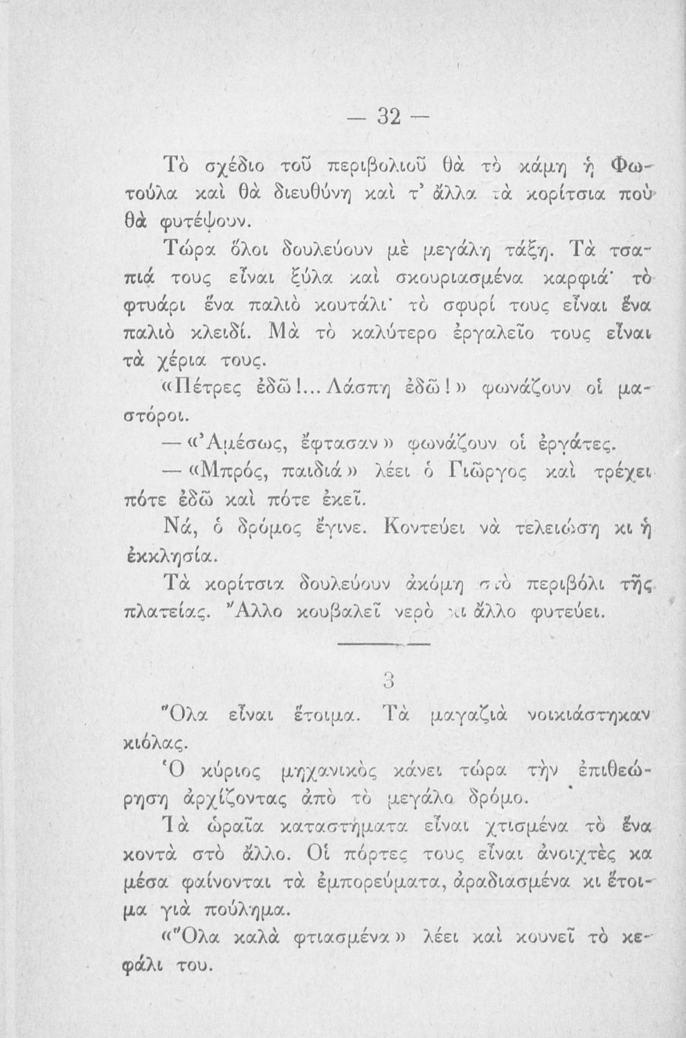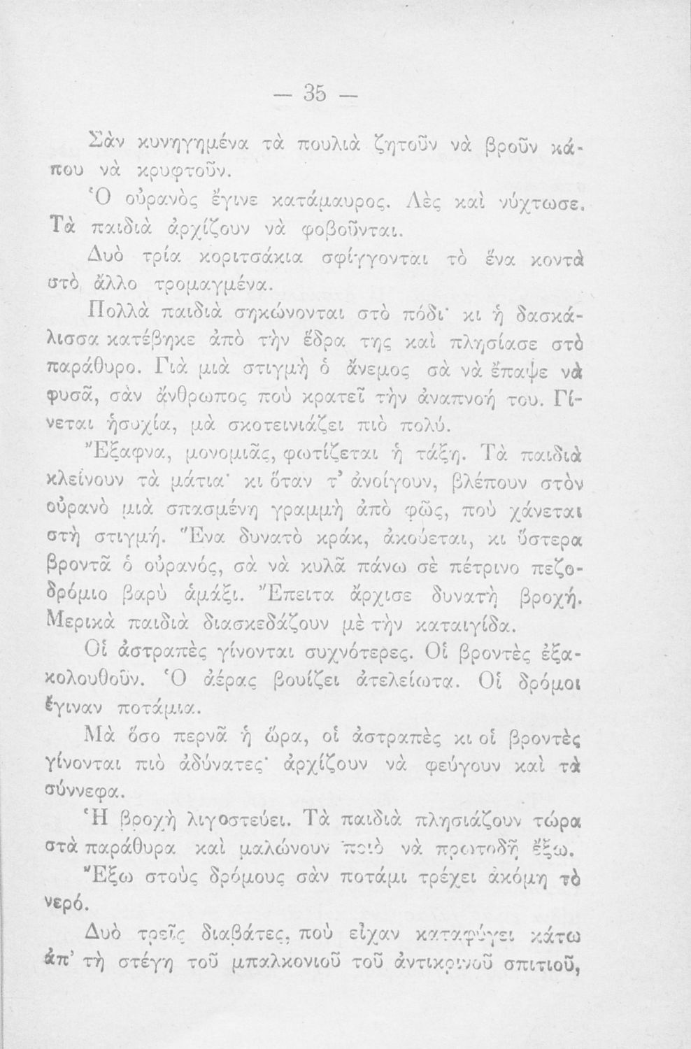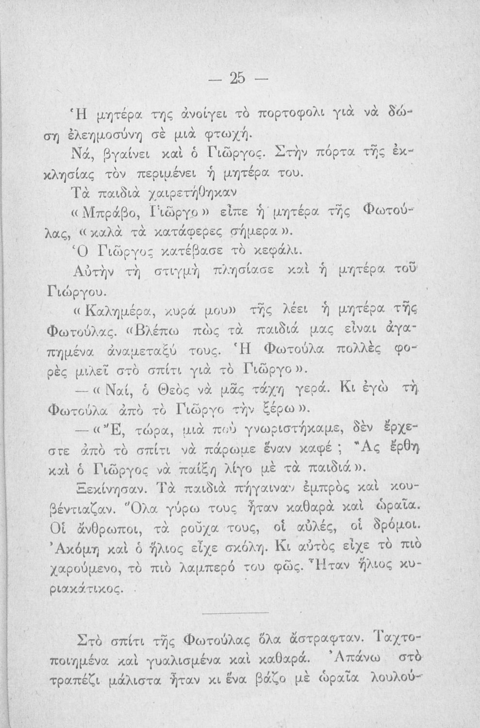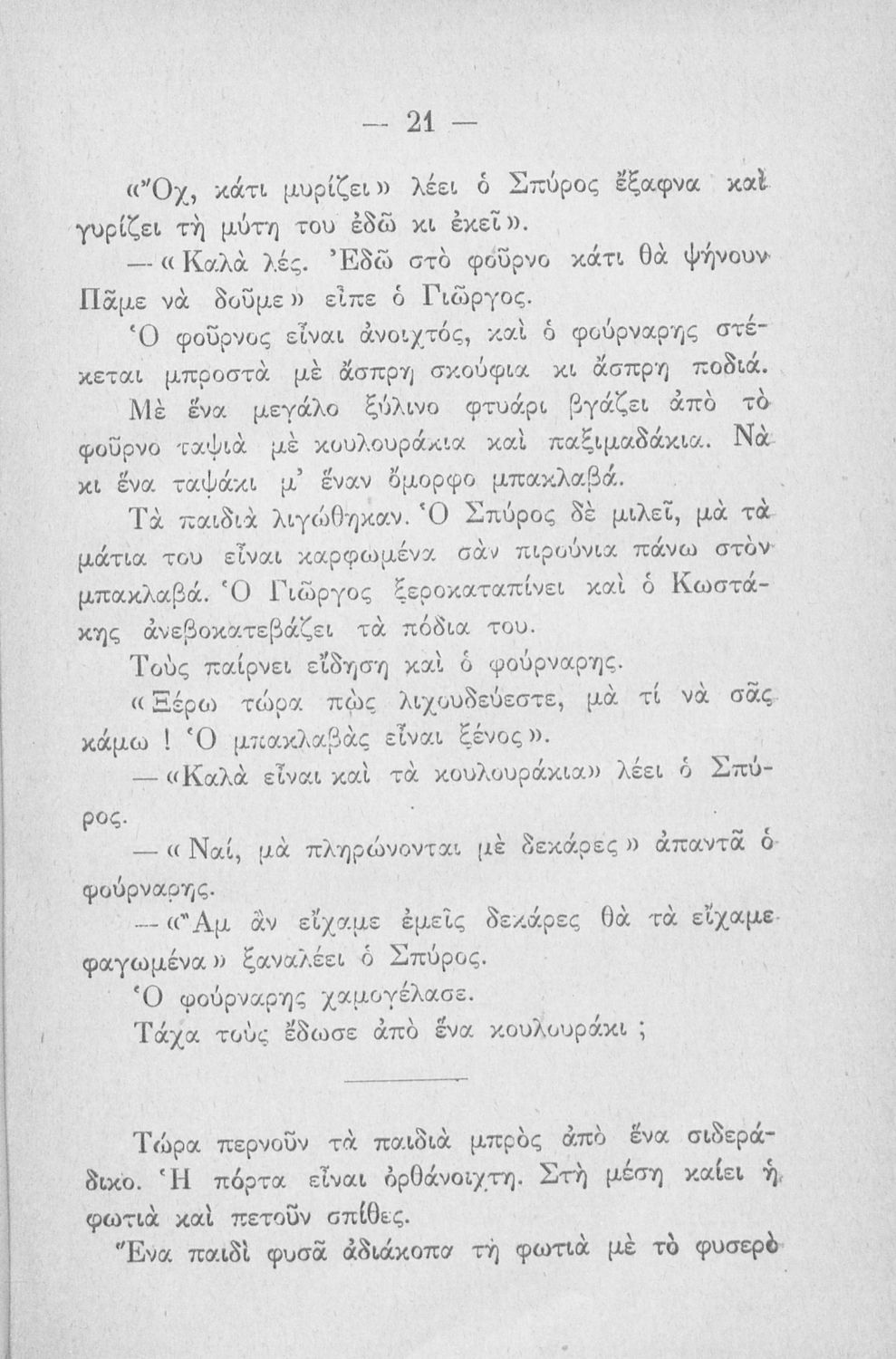 Αναγνωστικό Β΄ Δημοτικού που αποτελείται από πεζά γραμμένα σε καθαρεύουσα και ποιήματα σε δημοτική εμπνευσμένα από την οικογένεια, τη θρησκεία, την πατρίδα, την ελληνική φύση και ύπαιθρο, την αγάπη για τα ζώα,