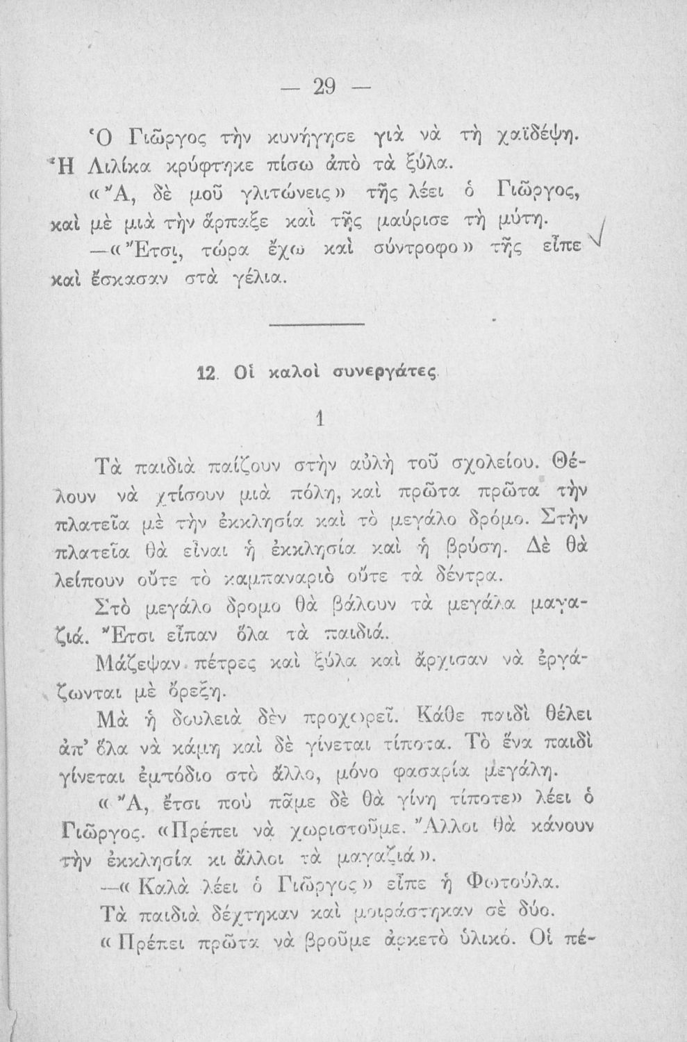 Αναγνωστικό Β' Δημοτικού που περιλαμβάνει μικρά διηγήματα και ποιήματα με περιεχόμενο από την οικογενειακή και κοινωνική ζωή, την ελληνική φύση, την ελληνική ιστορία και μυθολογία και την υγιεινή.
