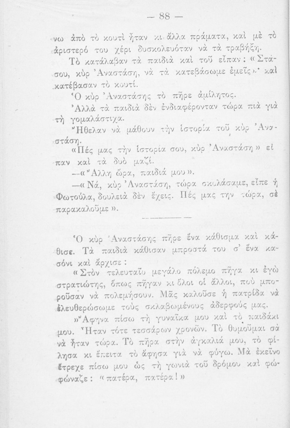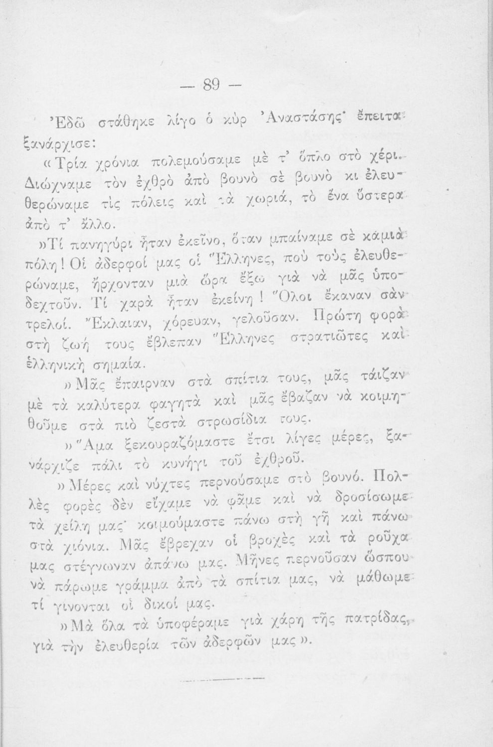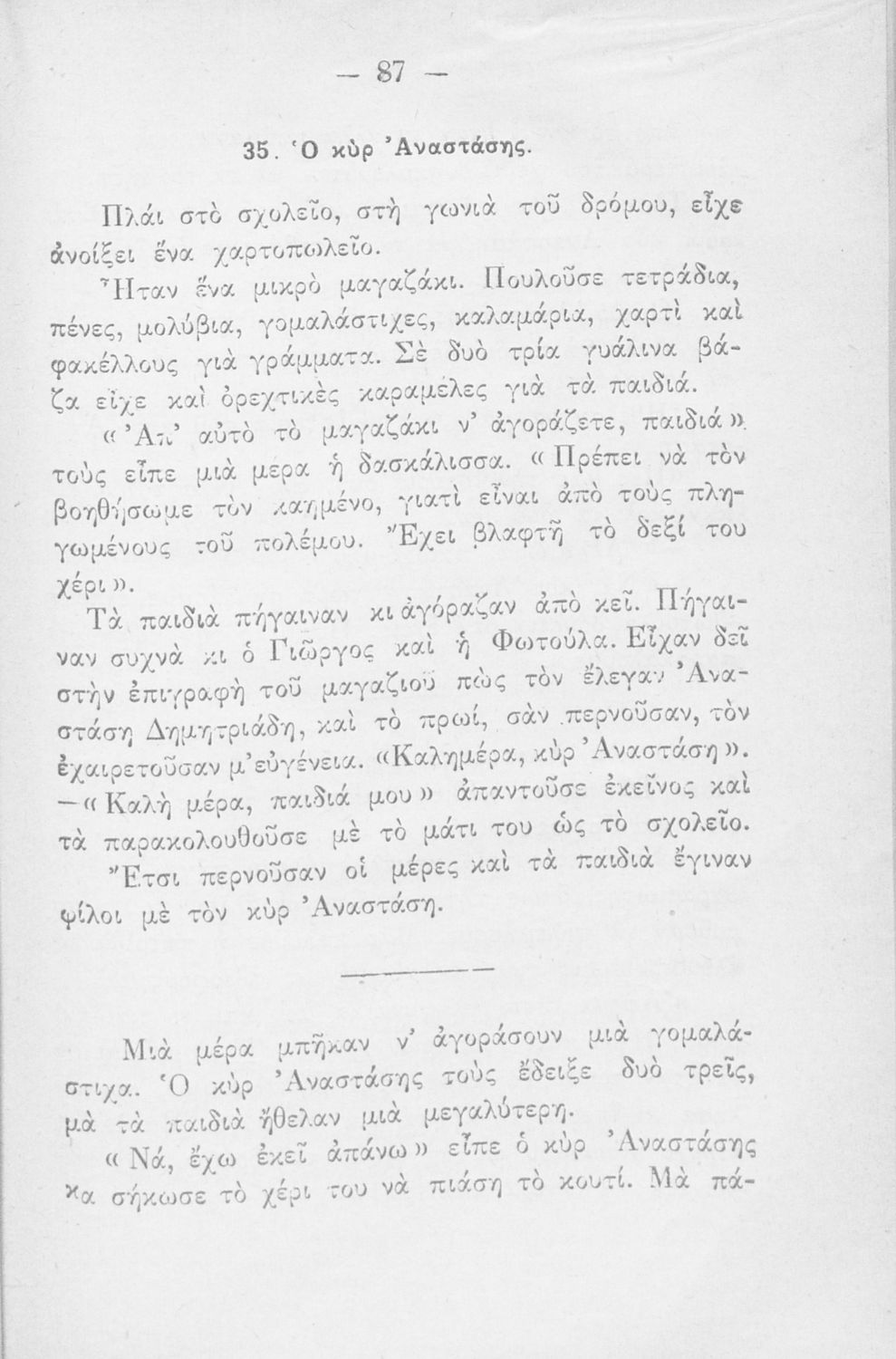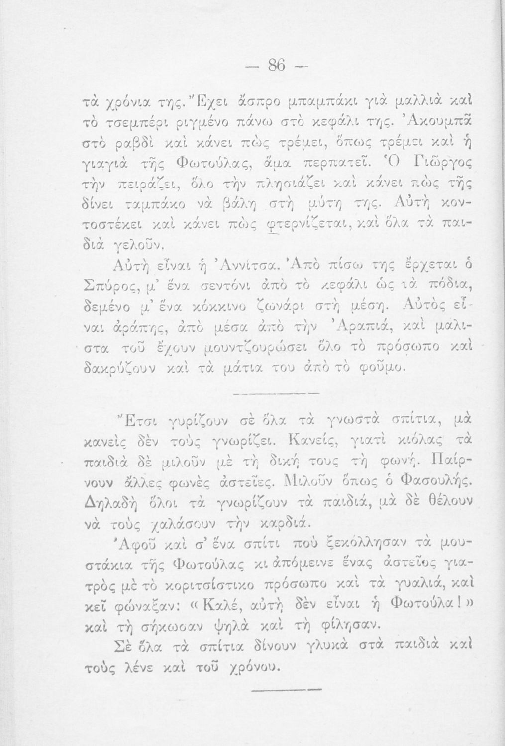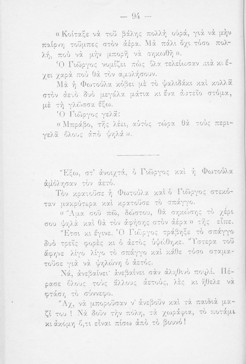 Αναγνωστικό Β΄ Δημοτικού που αποτελείται από πεζά γραμμένα σε καθαρεύουσα και ποιήματα σε δημοτική εμπνευσμένα από την οικογένεια, τη θρησκεία, την πατρίδα, την ελληνική φύση και ύπαιθρο, την αγάπη για τα ζώα,
