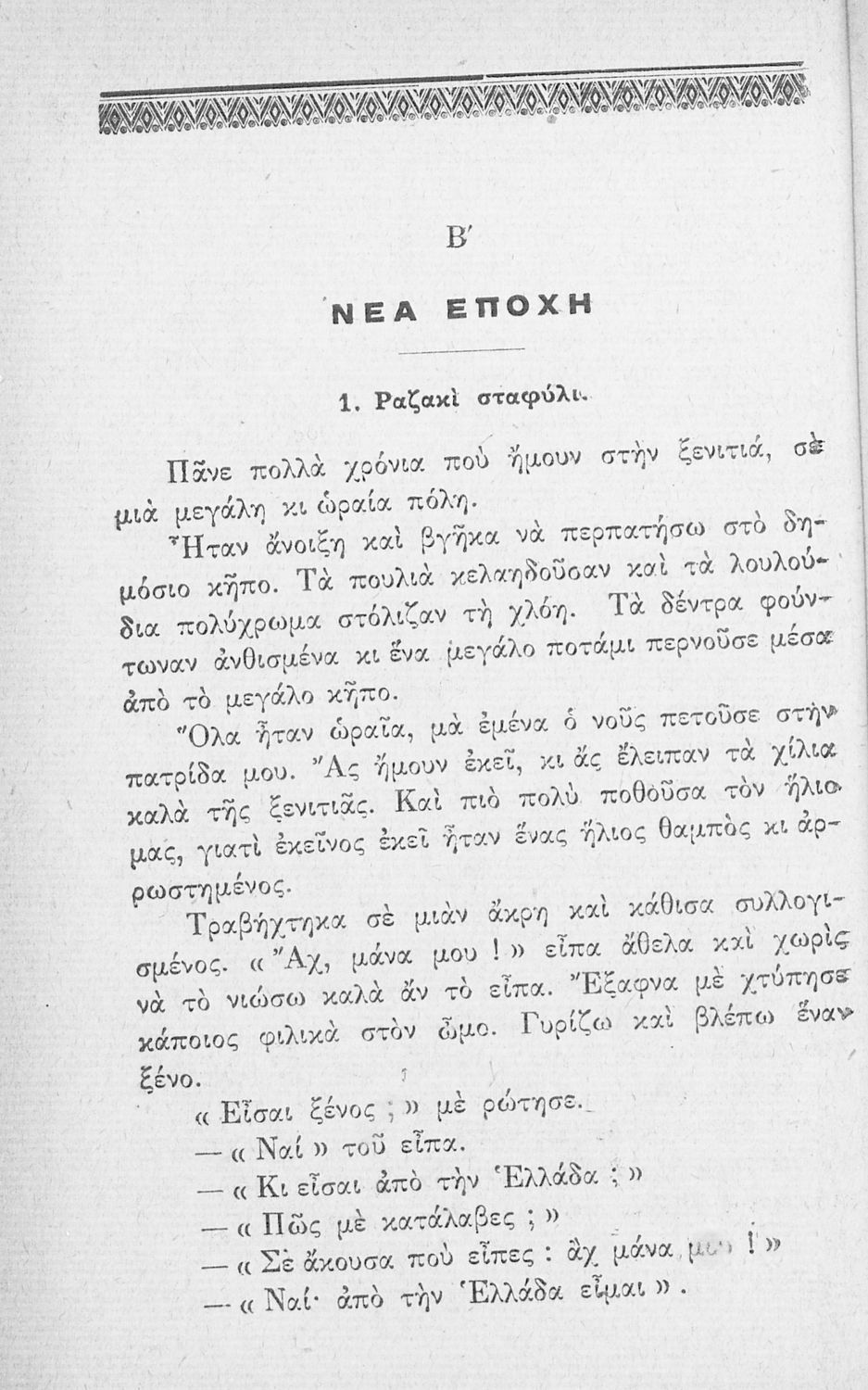 Αναγνωστικό Δ΄ Δημοτικού που περιλαμβάνει ποιήματα και πεζά εμπνευσμένα από την καθημερινότητα της ελληνικής ζωής, τη ζωή στην ύπαιθρο, την εθνική και κοινωνική ζωή, την αρχαία ελληνική ιστορία, και τα ζώα και τα φυτά.