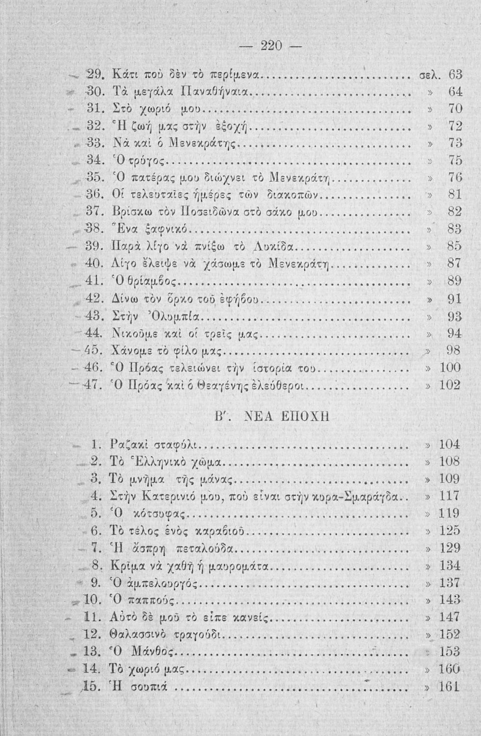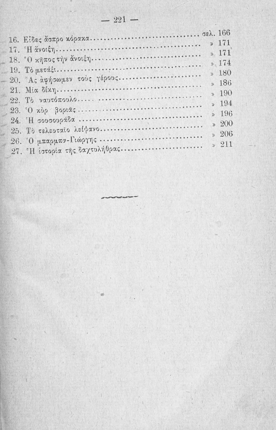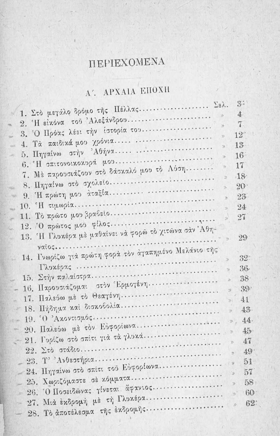 Αναγνωστικό Δ΄ Δημοτικού που περιλαμβάνει ποιήματα και πεζά εμπνευσμένα από την καθημερινότητα της ελληνικής ζωής, τη ζωή στην ύπαιθρο, την εθνική και κοινωνική ζωή, την αρχαία ελληνική ιστορία, και τα ζώα και τα φυτά.