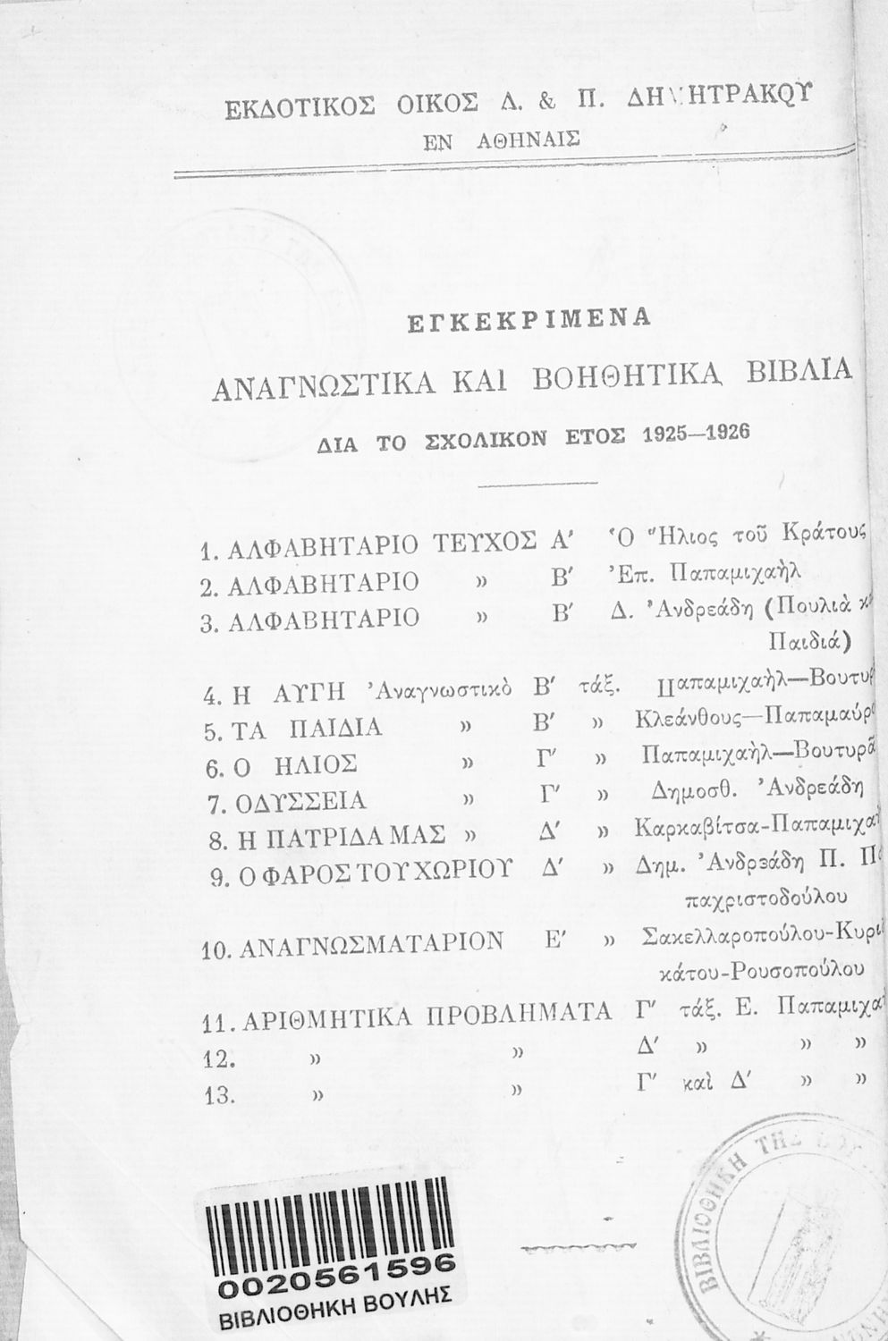 Εκδότης: Δημητράκος Α.Ε. Έτος έκδοσης: 1925 Τόπος έκδοσης: Αθήνα Έκδοση: 7η Έτος έγκρισης: 1925 |