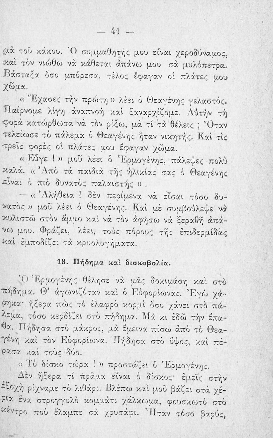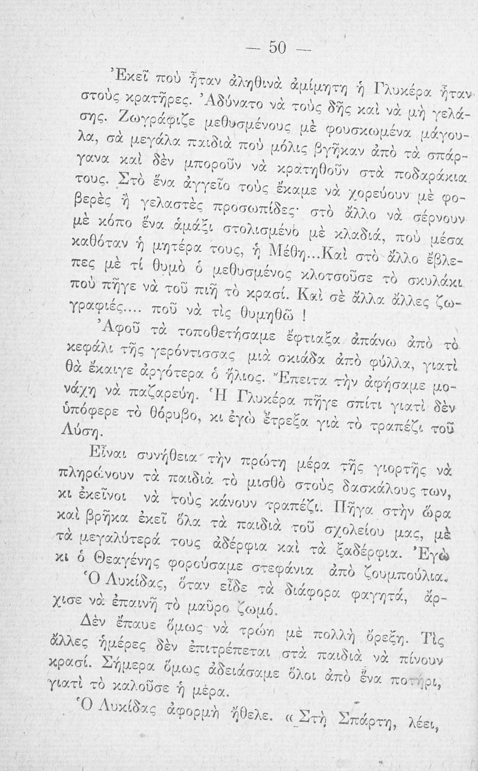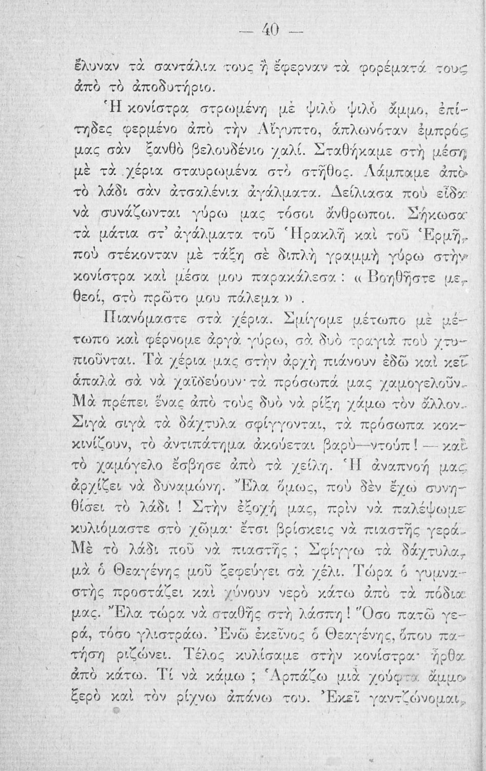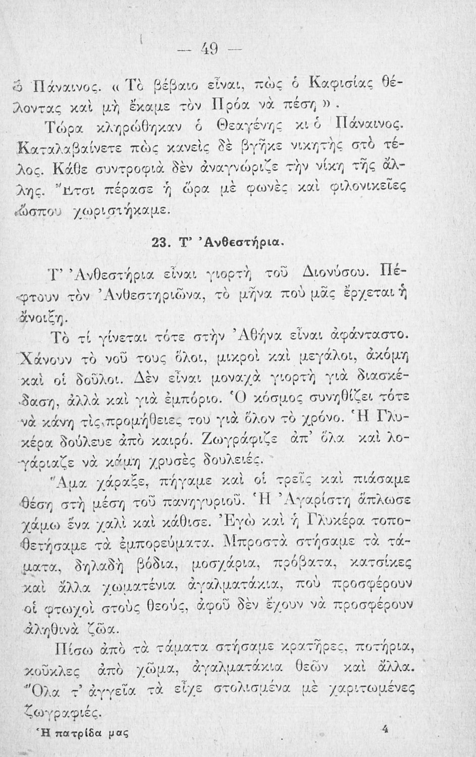Αναγνωστικό Δ΄ Δημοτικού που περιέχει πεζά και ποιήματα με περιεχόμενο διδακτικό και ηθικοπλαστικό εμπνευσμένα από την ελληνική ιστορία και μυθολογία, και την αγροτική και κοινωνική ζωή.
