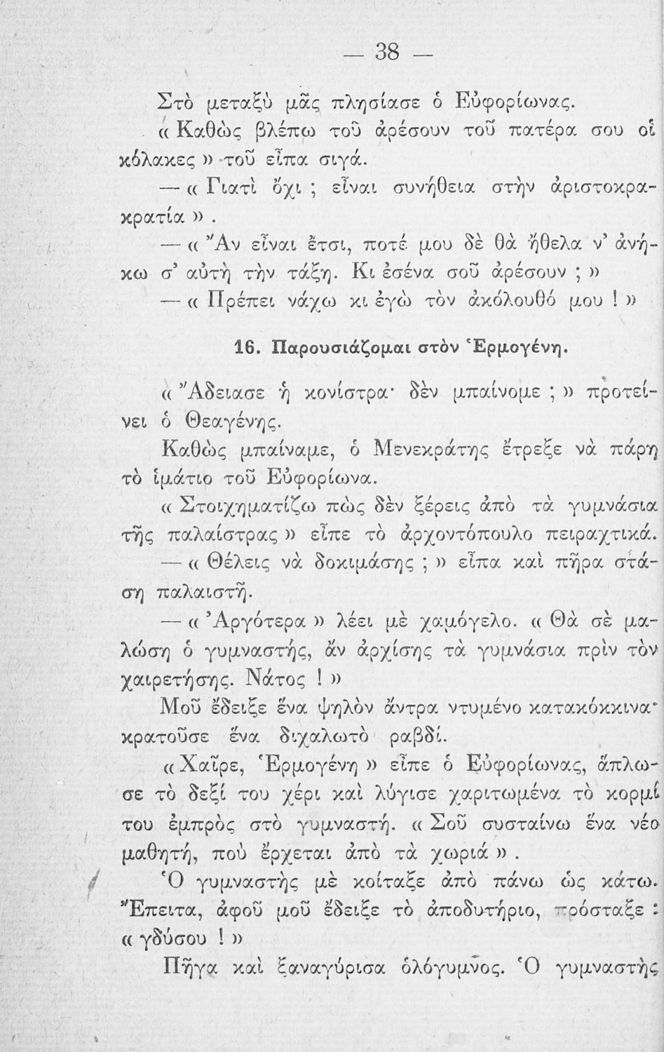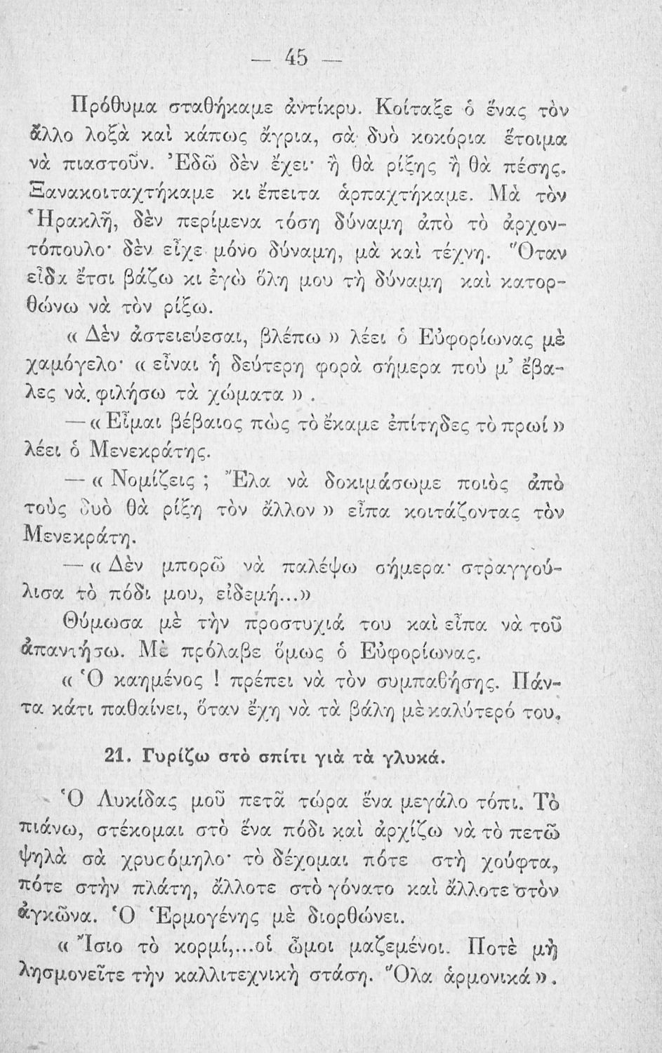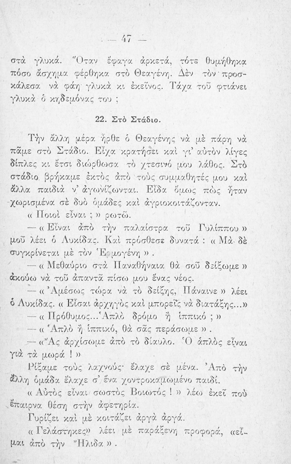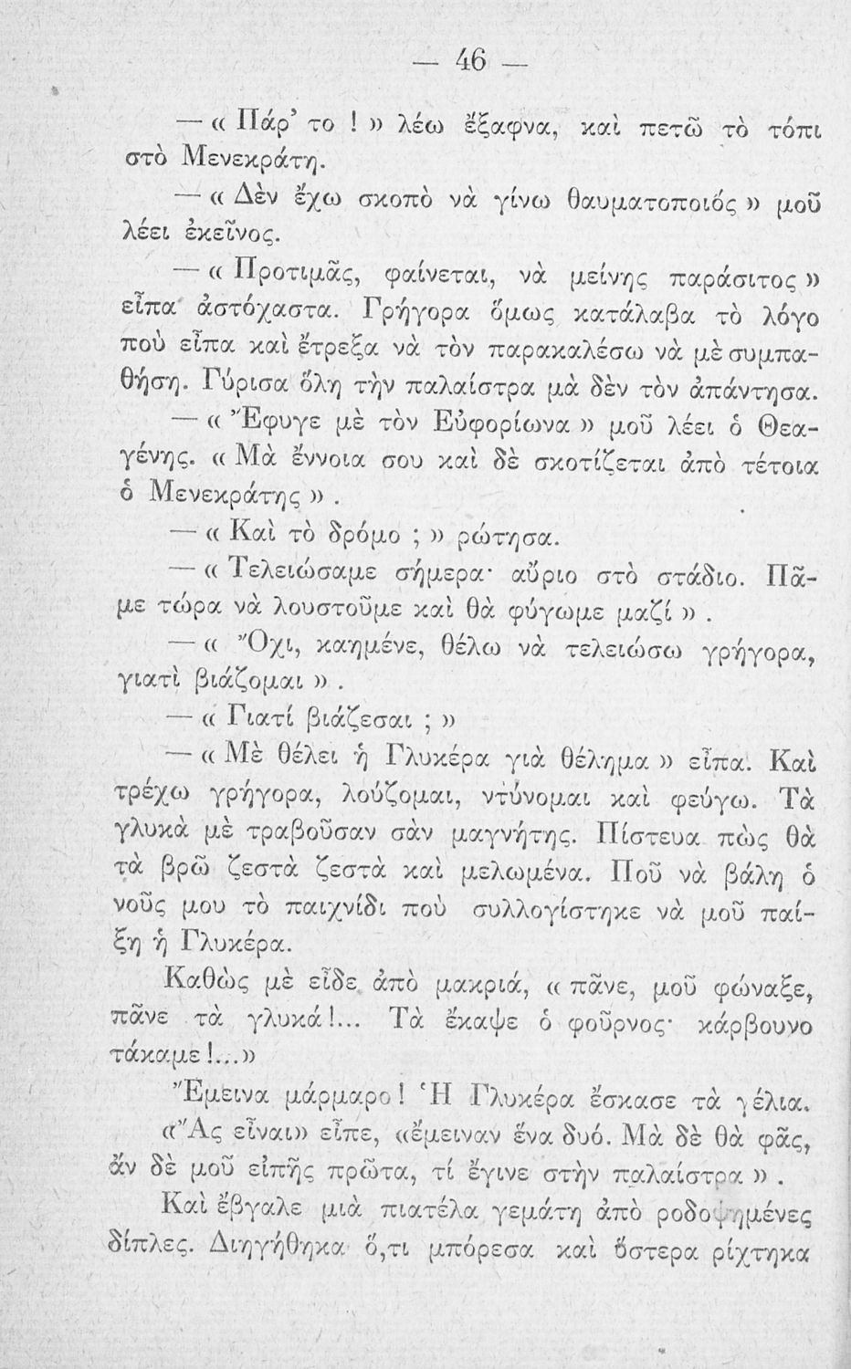 Αναγνωστικό Δ΄ Δημοτικού που περιέχει πεζά και ποιήματα με περιεχόμενο διδακτικό και ηθικοπλαστικό εμπνευσμένα από την ελληνική ιστορία και μυθολογία, και την αγροτική και κοινωνική ζωή.
