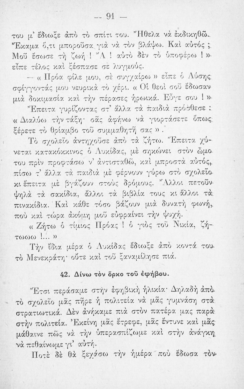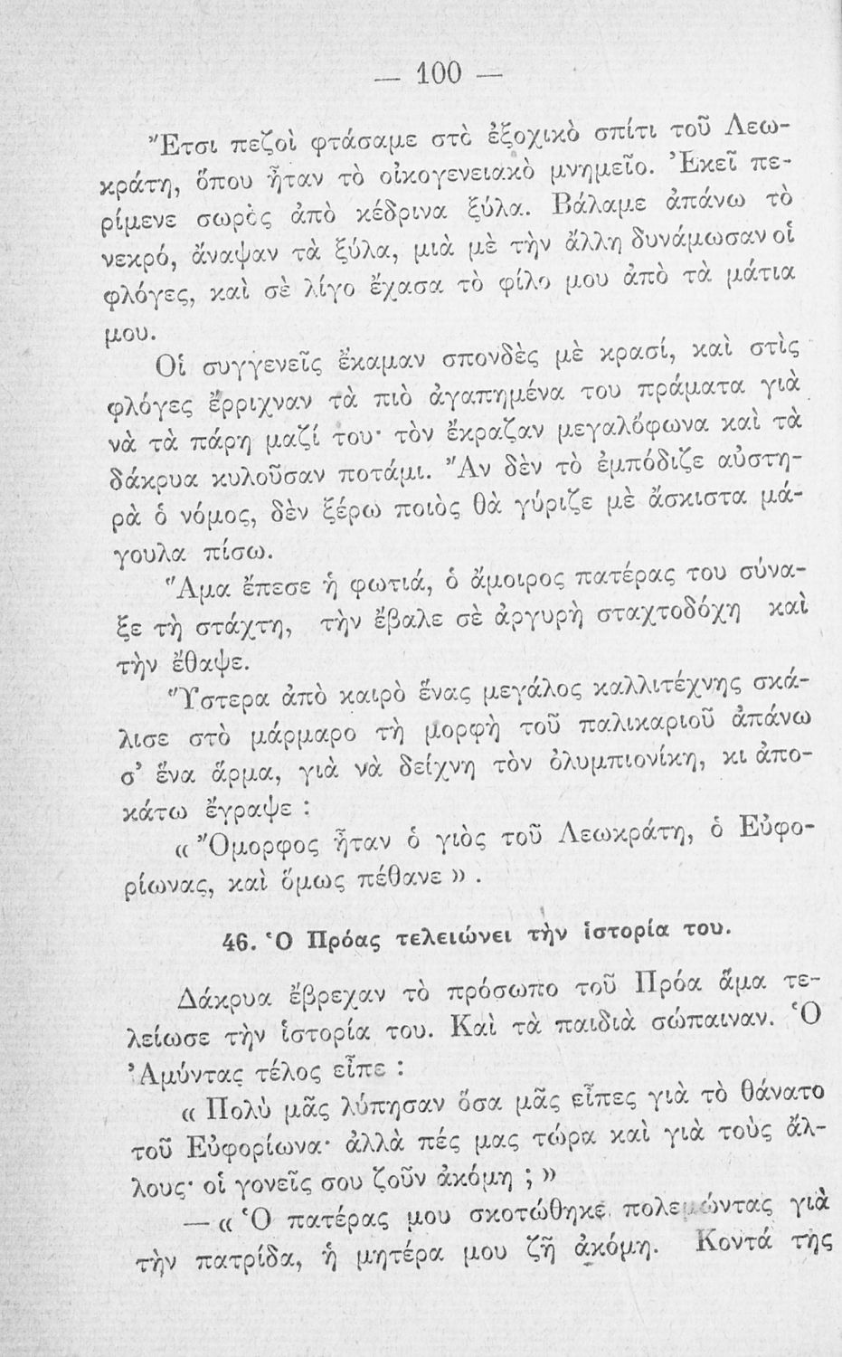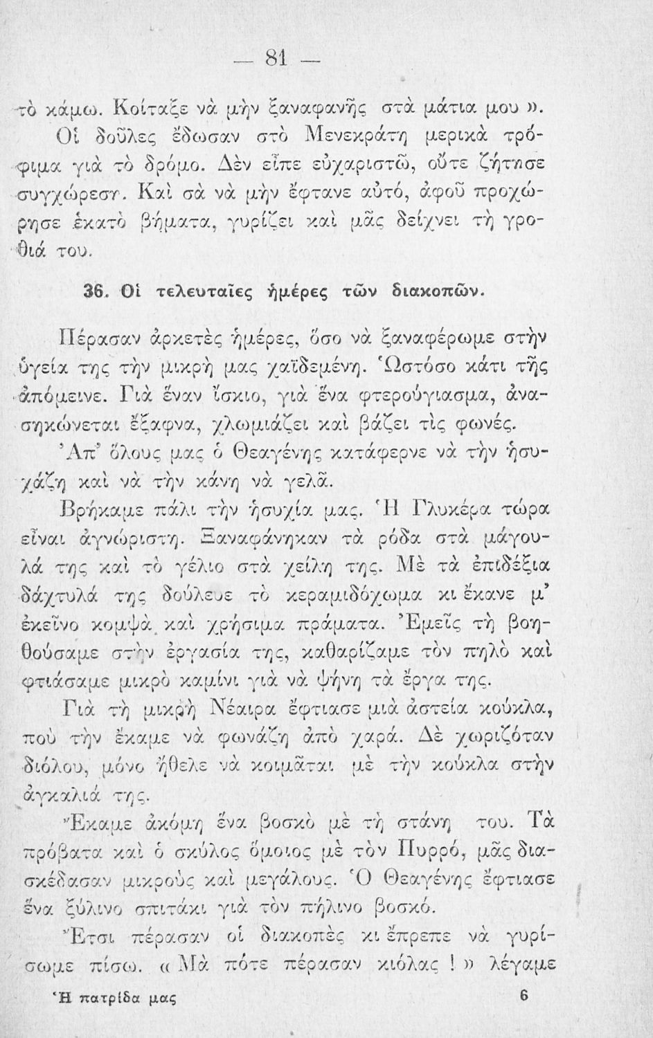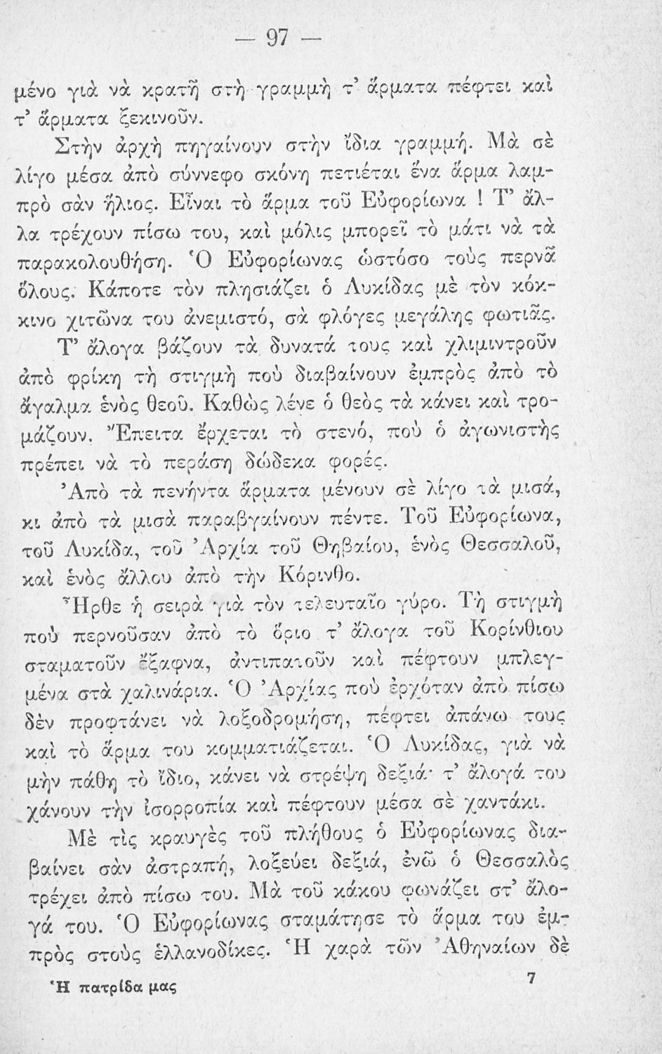 Αναγνωστικό Δ΄ Δημοτικού που περιέχει πεζά και ποιήματα με περιεχόμενο διδακτικό και ηθικοπλαστικό εμπνευσμένα από την ελληνική ιστορία και μυθολογία, και την αγροτική και κοινωνική ζωή.