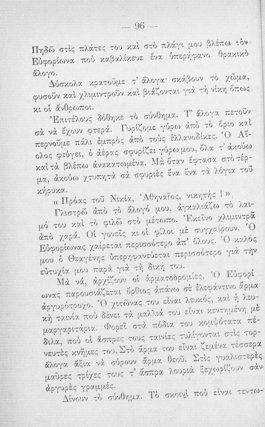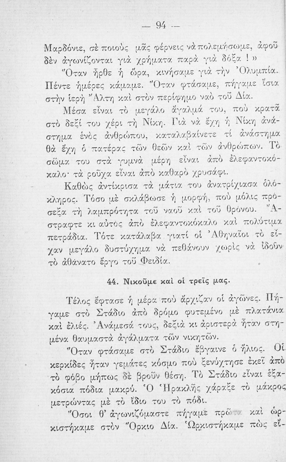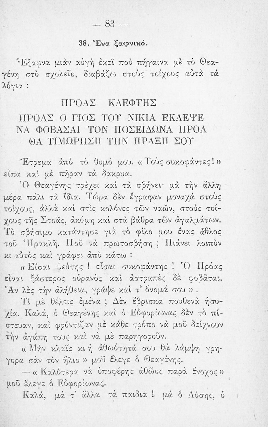 Αναγνωστικό Δ΄ Δημοτικού που περιέχει πεζά και ποιήματα με περιεχόμενο διδακτικό και ηθικοπλαστικό εμπνευσμένα από την ελληνική ιστορία και μυθολογία, και την αγροτική και κοινωνική ζωή.