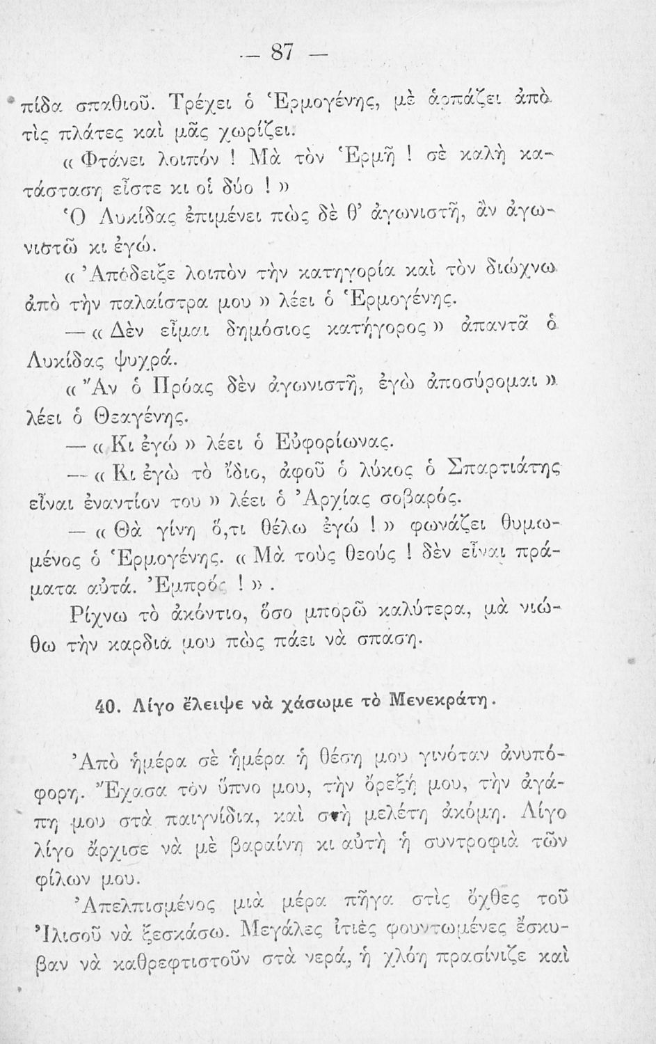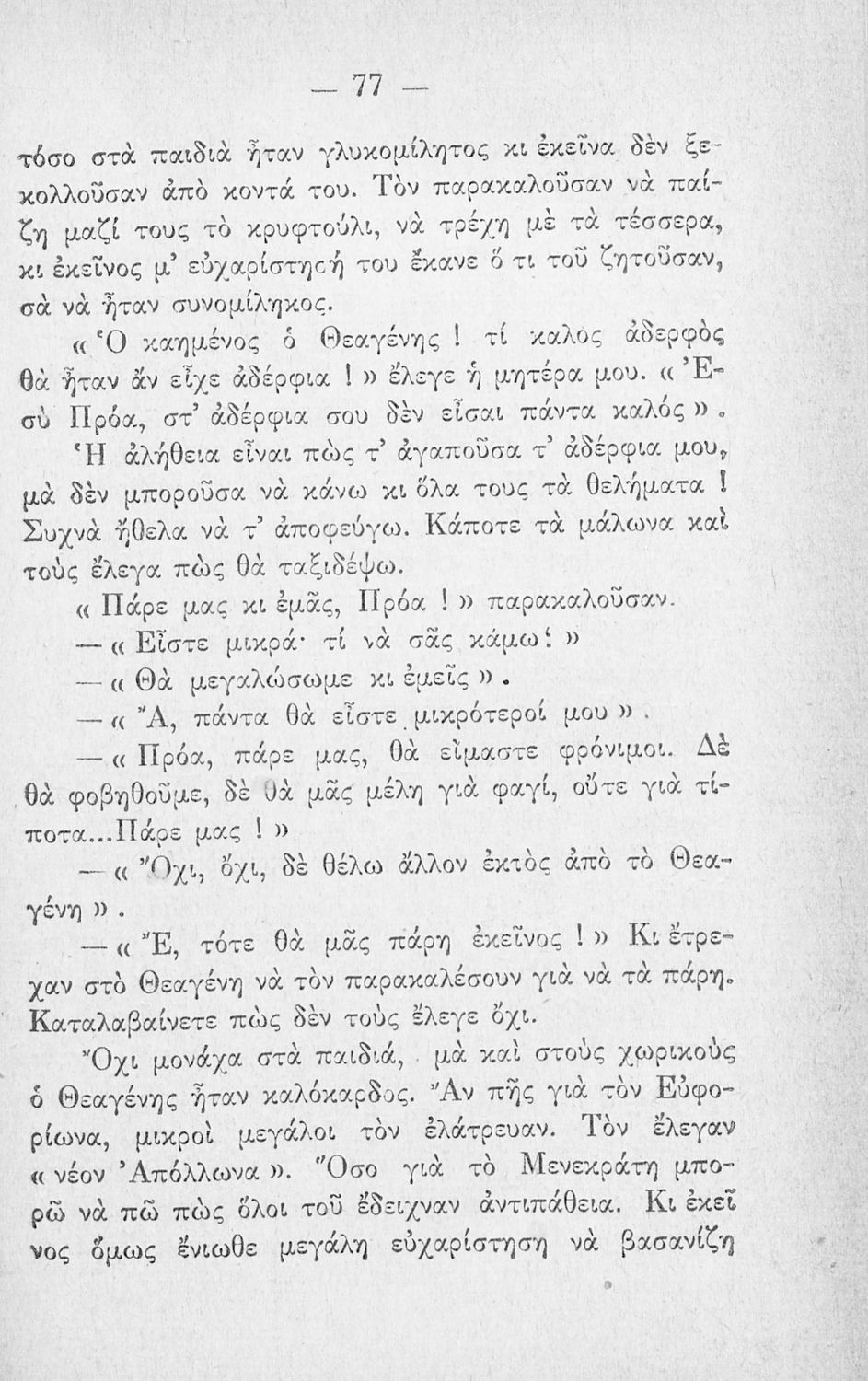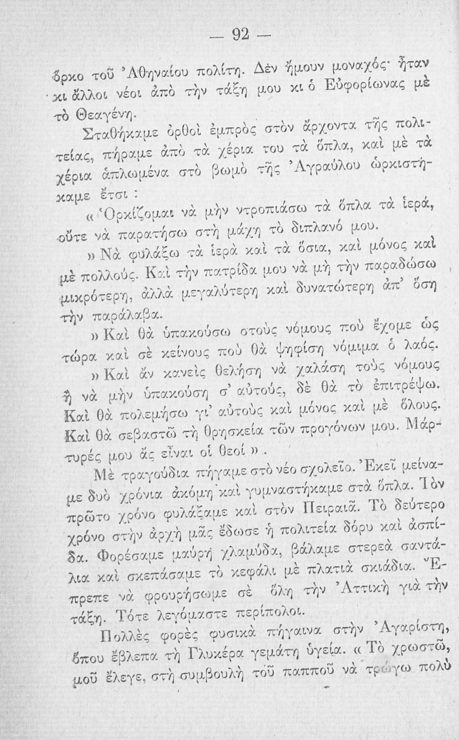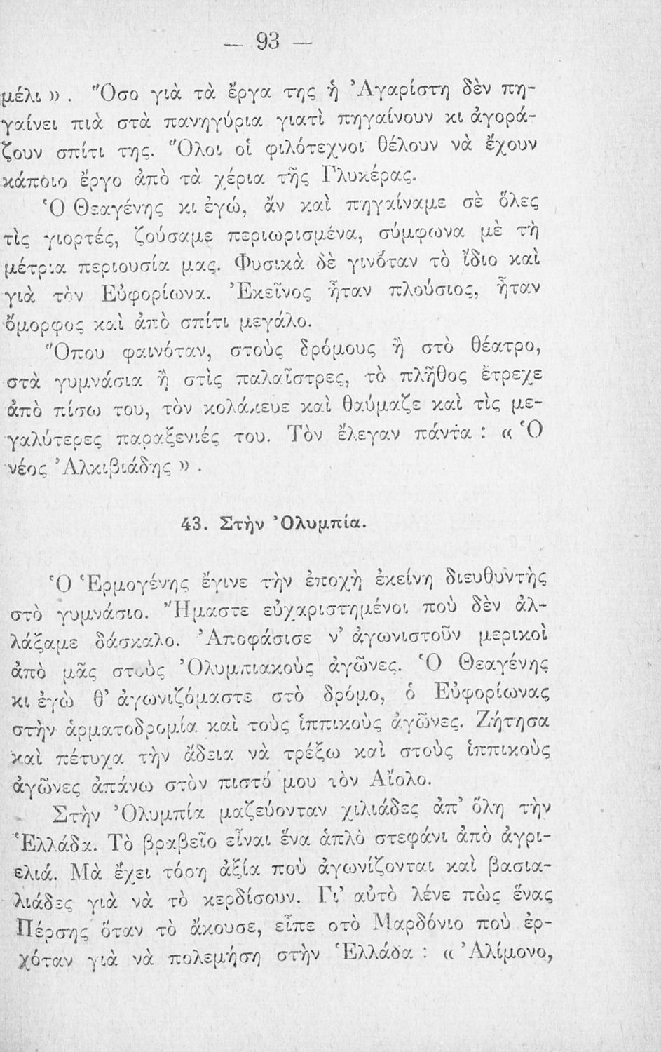 Αναγνωστικό Δ΄ Δημοτικού που περιέχει πεζά και ποιήματα με περιεχόμενο διδακτικό και ηθικοπλαστικό εμπνευσμένα από την ελληνική ιστορία και μυθολογία, και την αγροτική και κοινωνική ζωή.