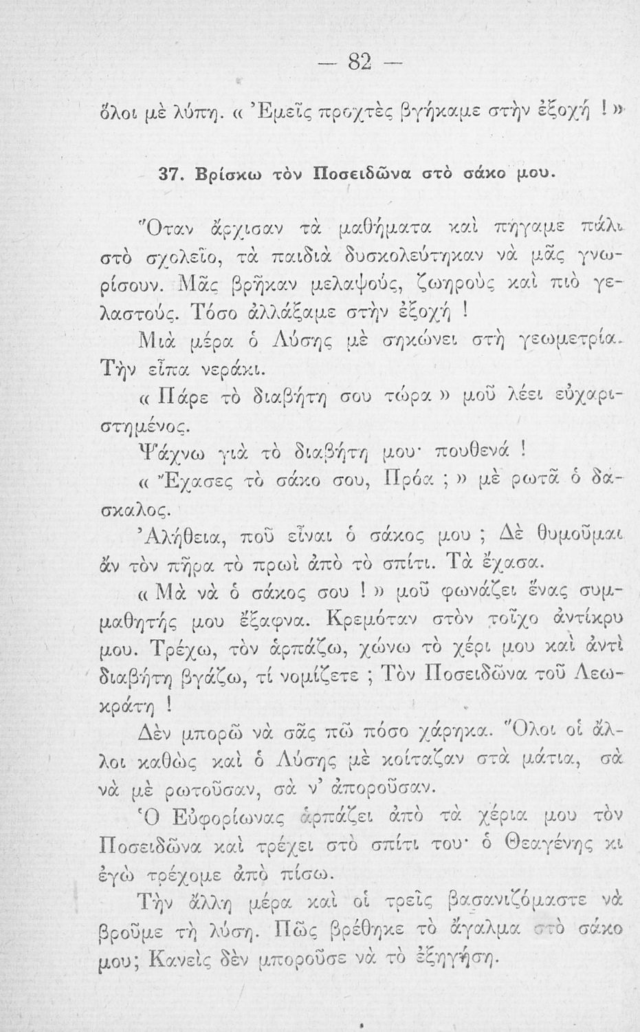 Αναγνωστικό Δ΄ Δημοτικού που περιλαμβάνει θέματα από την θρησκευτική, οικογενειακή και σχολική ζωή του παιδιού, την ελληνική μυθολογία και ιστορία και τη ζωή των ζώων.