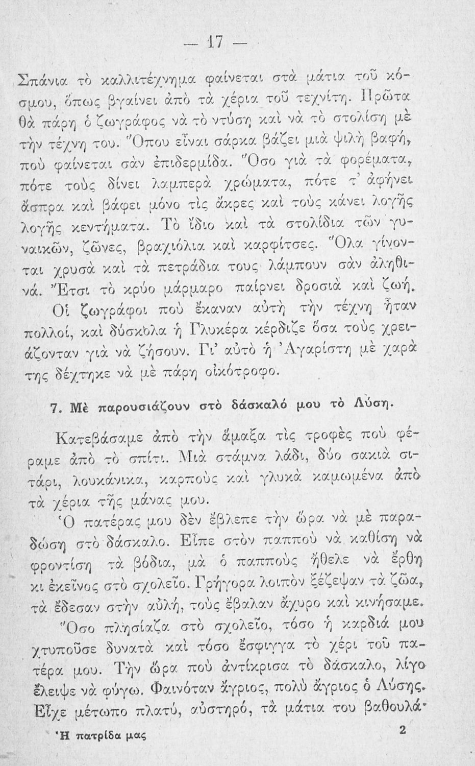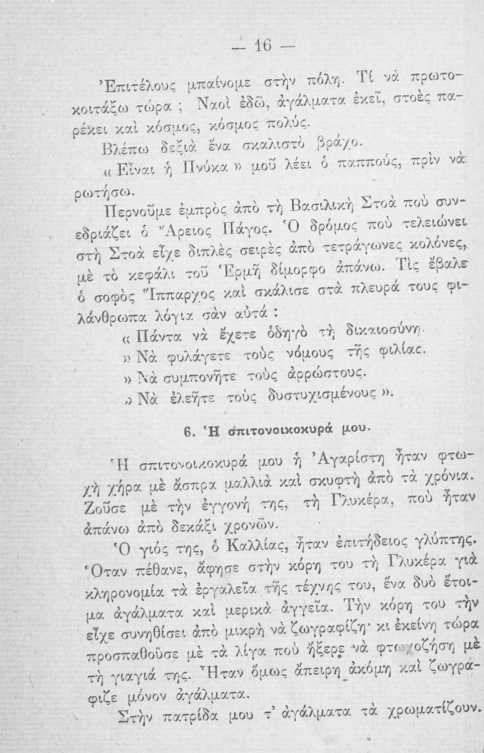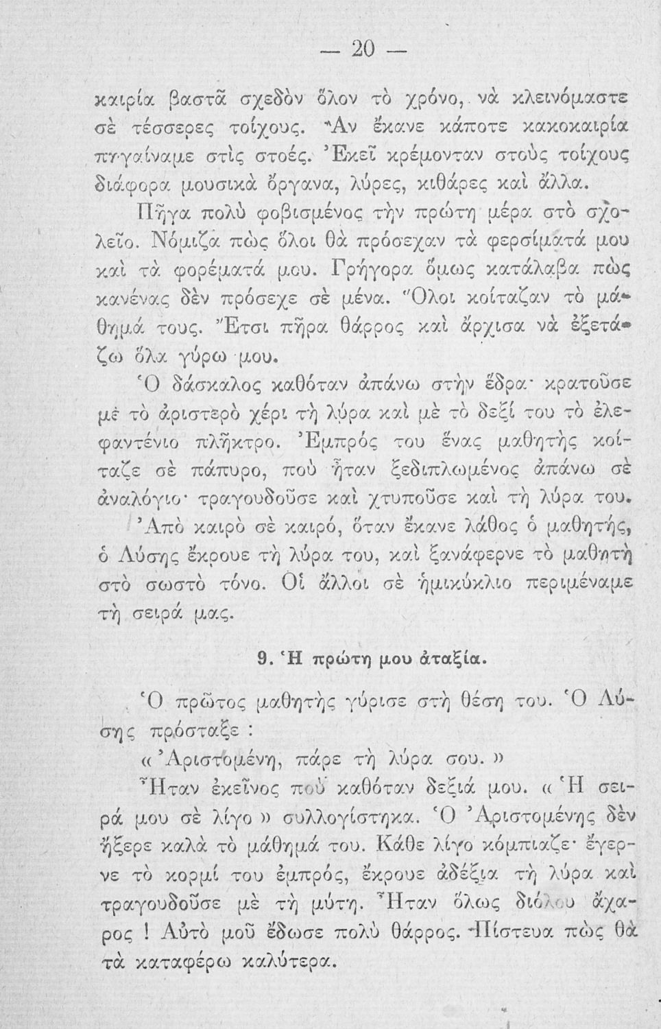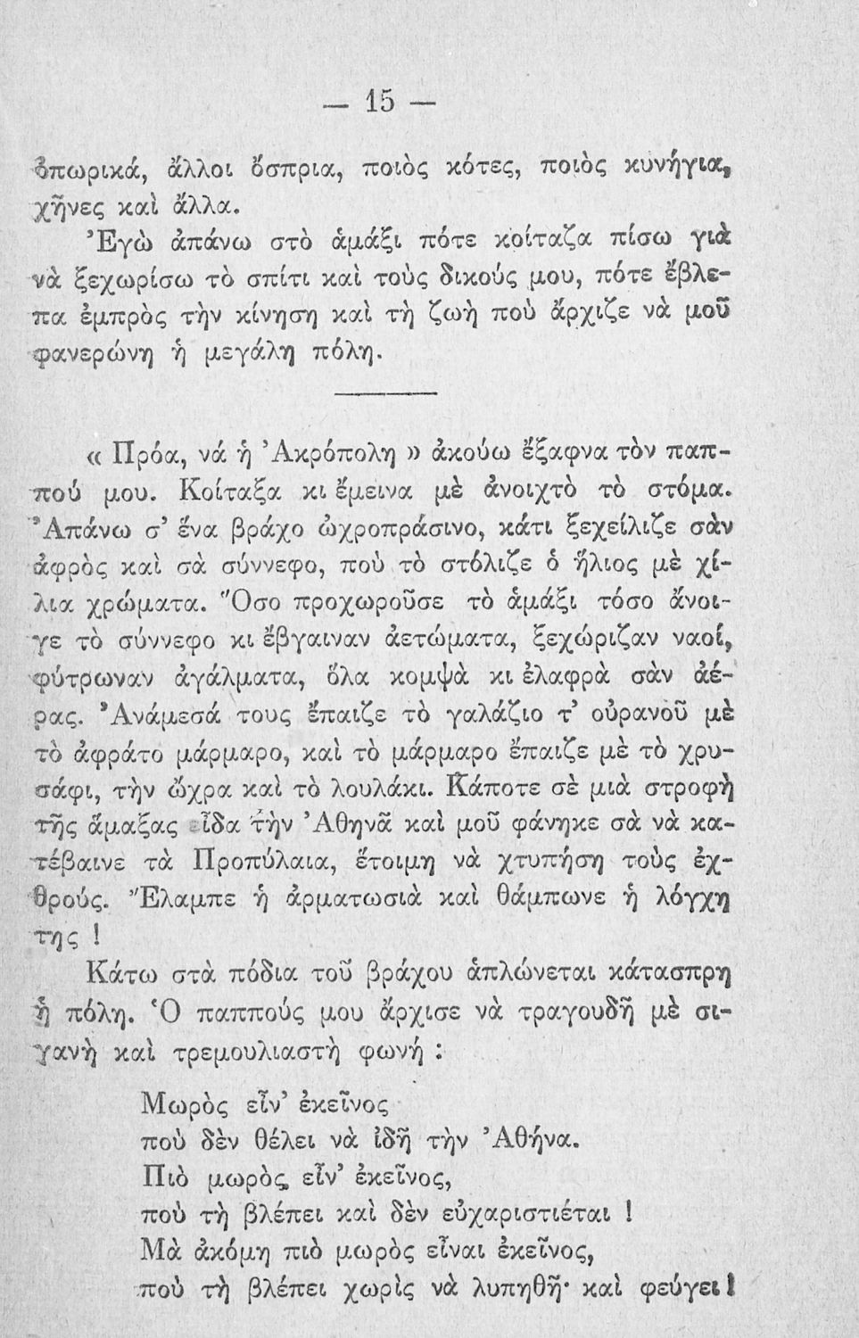 Αναγνωστικό Δ΄ Δημοτικού που περιέχει πεζά και ποιήματα με περιεχόμενο διδακτικό και ηθικοπλαστικό εμπνευσμένα από την ελληνική ιστορία και μυθολογία, και την αγροτική και κοινωνική ζωή.