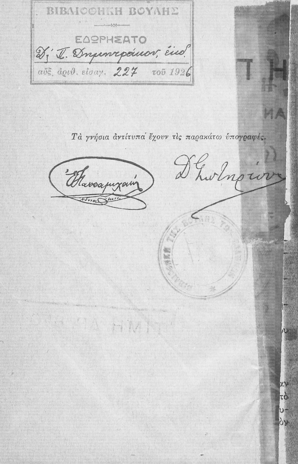 Εντοπισμός πρωτοτύπου: Βιβλιοθήκη της Βουλής των Ελλήνων