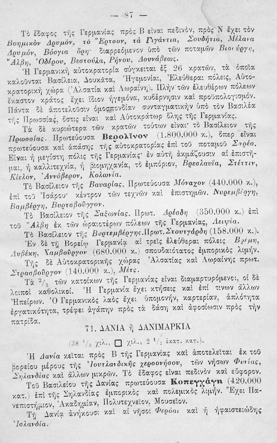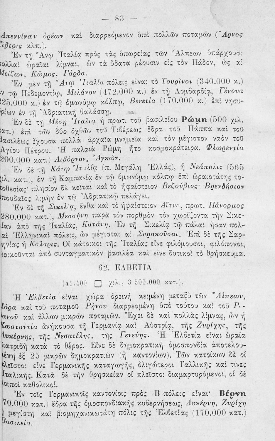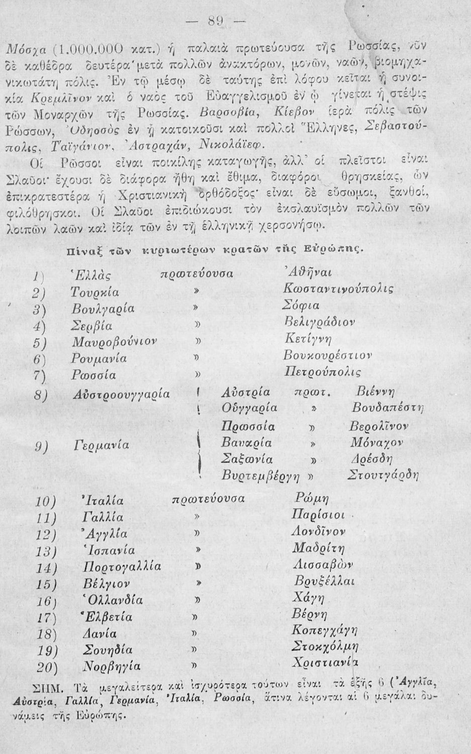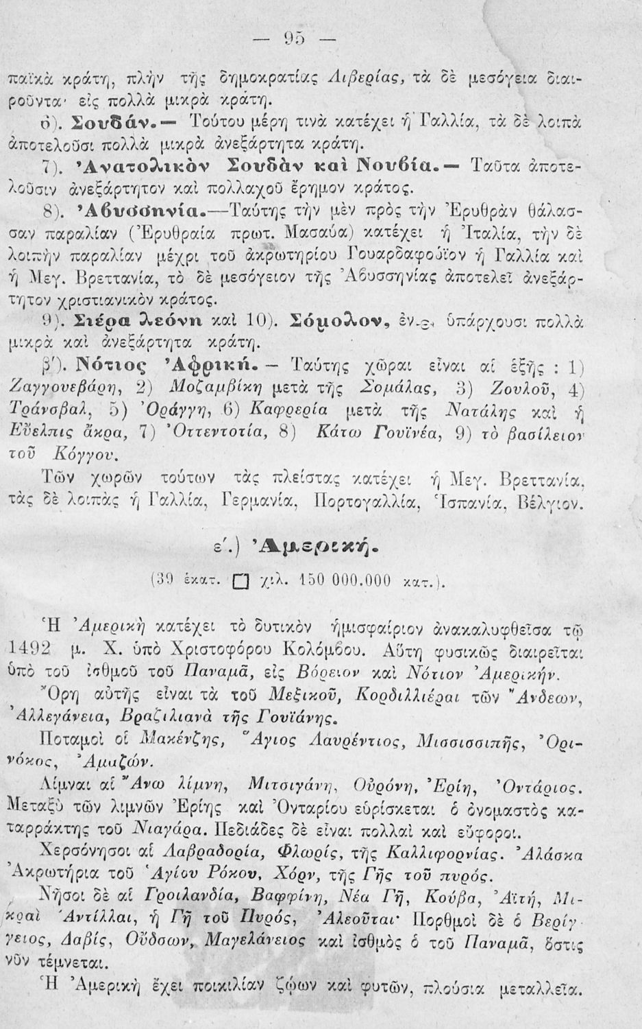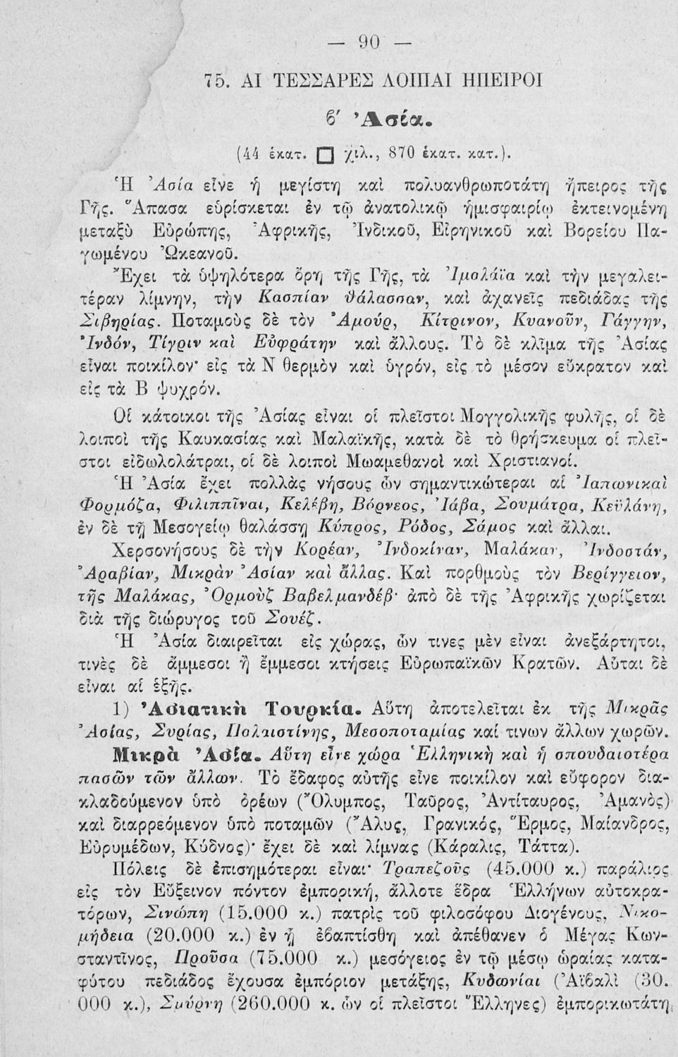 Βαθμίδα εκπαίδευσης: Πρωτοβάθμια Μάθημα: Γεωγραφία Γλώσσα: Καθαρεύουσα Παρουσίαση περιεχομένου: Σχολικό εγχειρίδιο Γεωγραφίας Δημοτικού που περιλαμβάνει εισαγωγή στη φυσική γεωγραφία της Γης, και εστιάζει στα γεωμορφολογικά, πληθυσμιακά και πολιτικά χαρακτηριστικά της Ελλάδας και χωρών της Ευρώπης. |