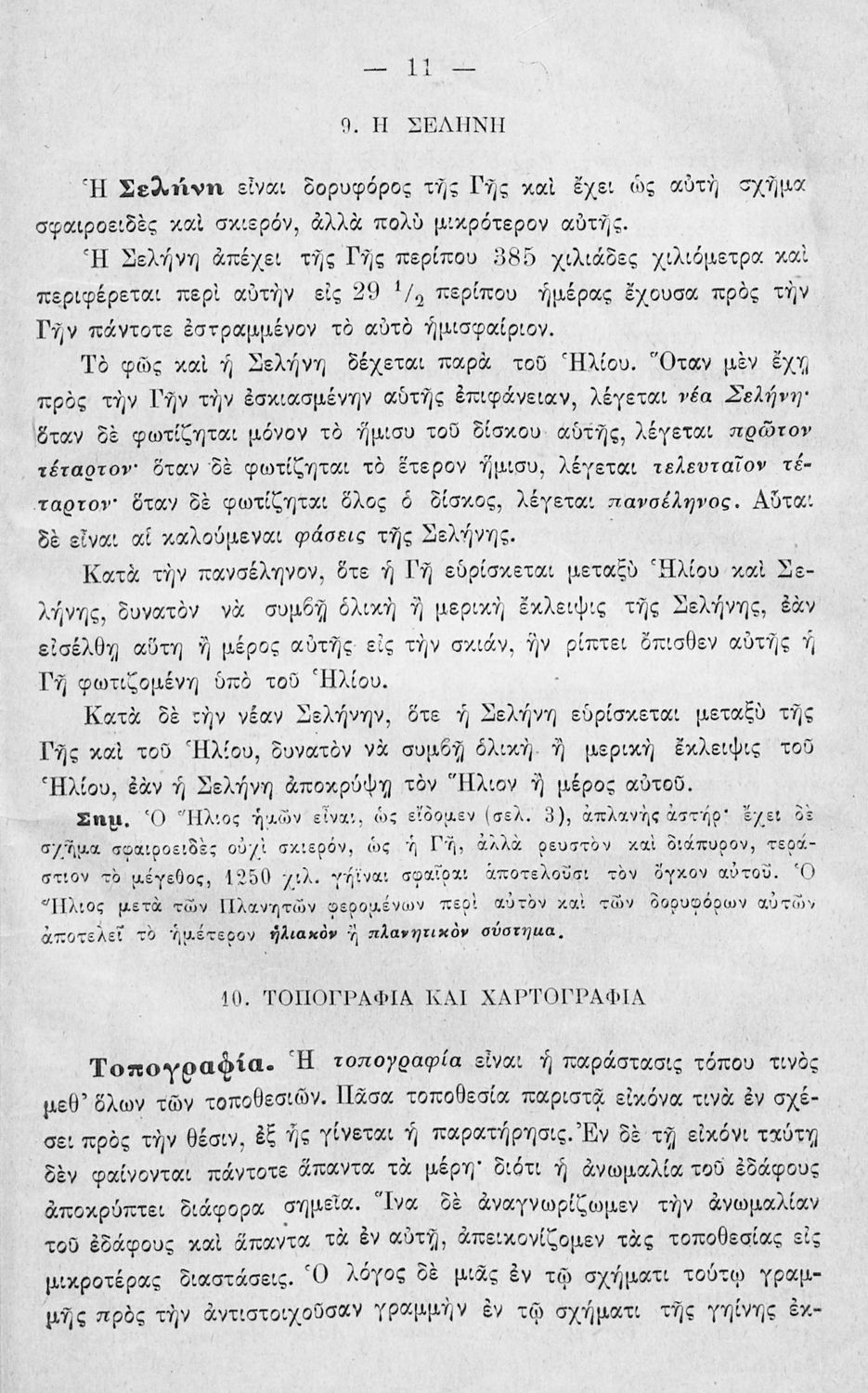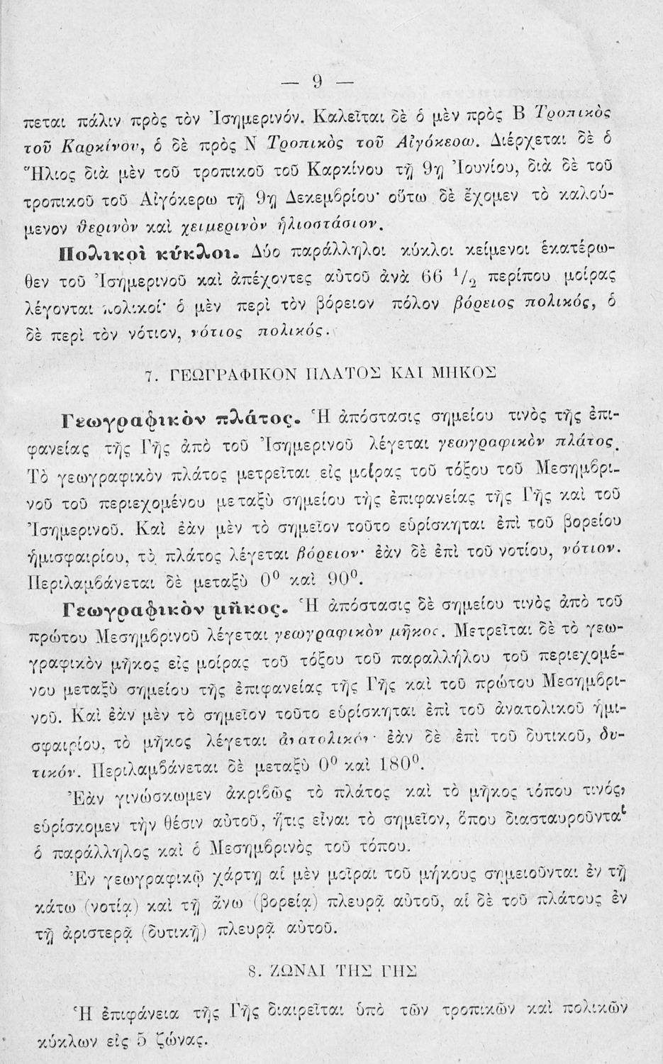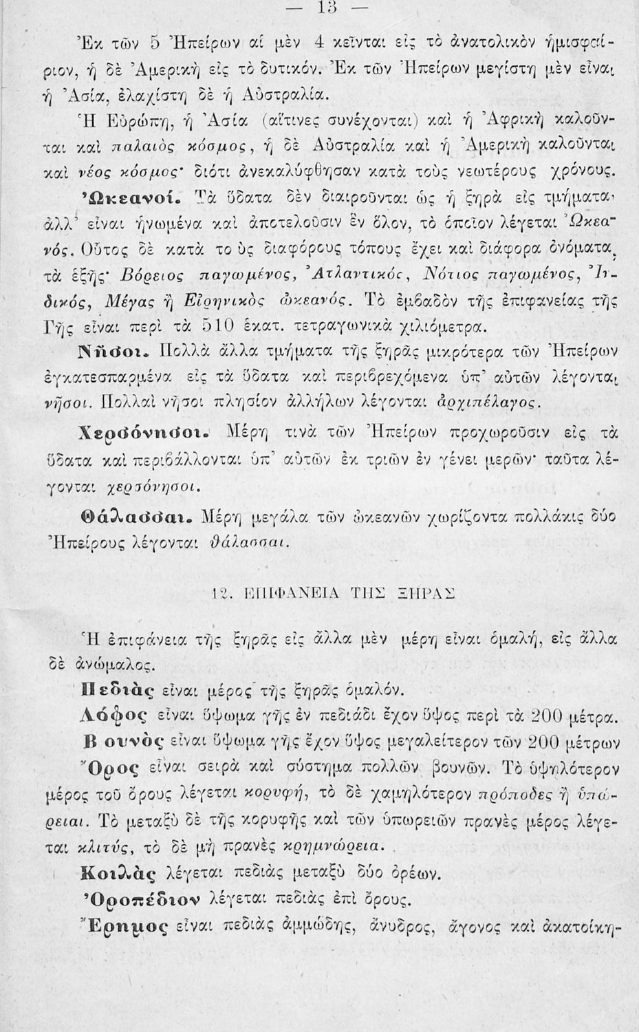Βαθμίδα εκπαίδευσης: Πρωτοβάθμια Μάθημα: Γεωγραφία Γλώσσα: Καθαρεύουσα Παρουσίαση περιεχομένου: Σχολικό εγχειρίδιο Γεωγραφίας Δημοτικού που περιλαμβάνει εισαγωγή στη φυσική γεωγραφία της Γης, και εστιάζει στα γεωμορφολογικά, πληθυσμιακά και πολιτικά χαρακτηριστικά της Ελλάδας και χωρών της Ευρώπης. |