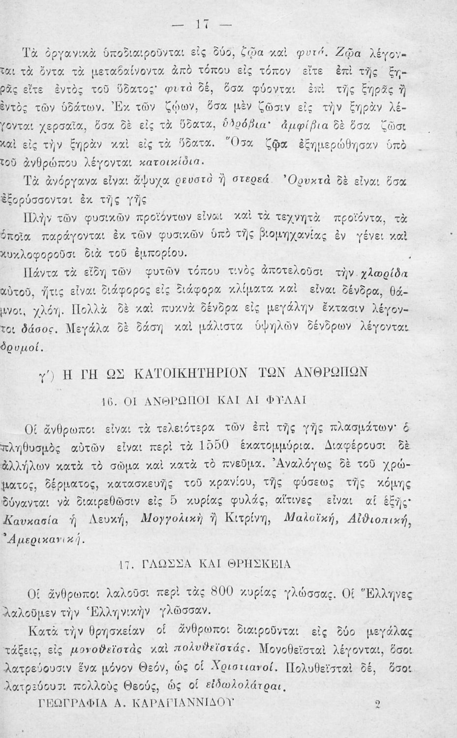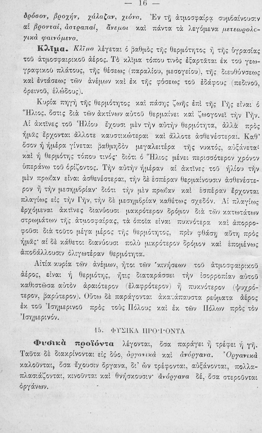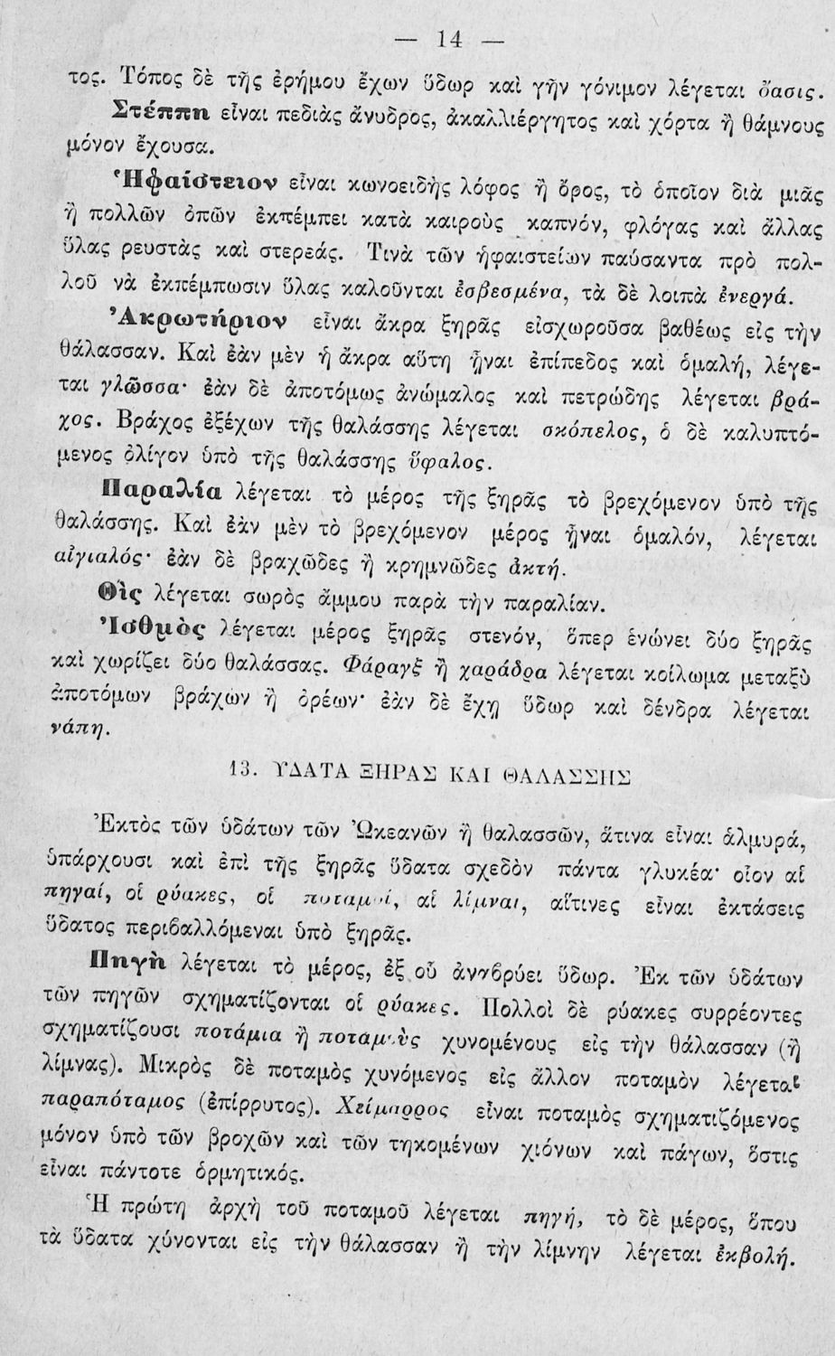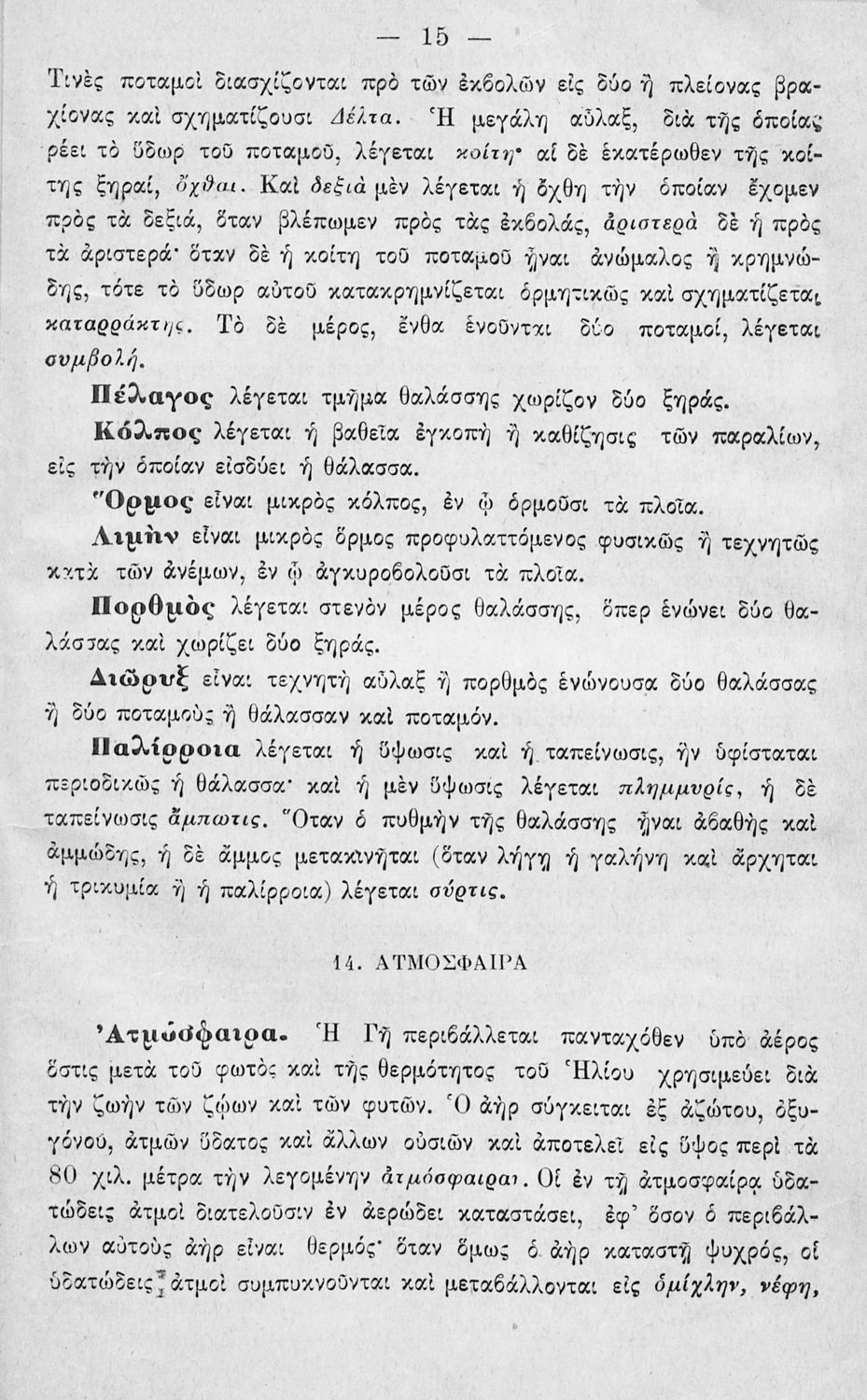 Βαθμίδα εκπαίδευσης: Πρωτοβάθμια Μάθημα: Γεωγραφία Γλώσσα: Καθαρεύουσα Παρουσίαση περιεχομένου: Σχολικό εγχειρίδιο Γεωγραφίας Δημοτικού που περιλαμβάνει εισαγωγή στη φυσική γεωγραφία της Γης, και εστιάζει στα γεωμορφολογικά, πληθυσμιακά και πολιτικά χαρακτηριστικά της Ελλάδας και χωρών της Ευρώπης. |